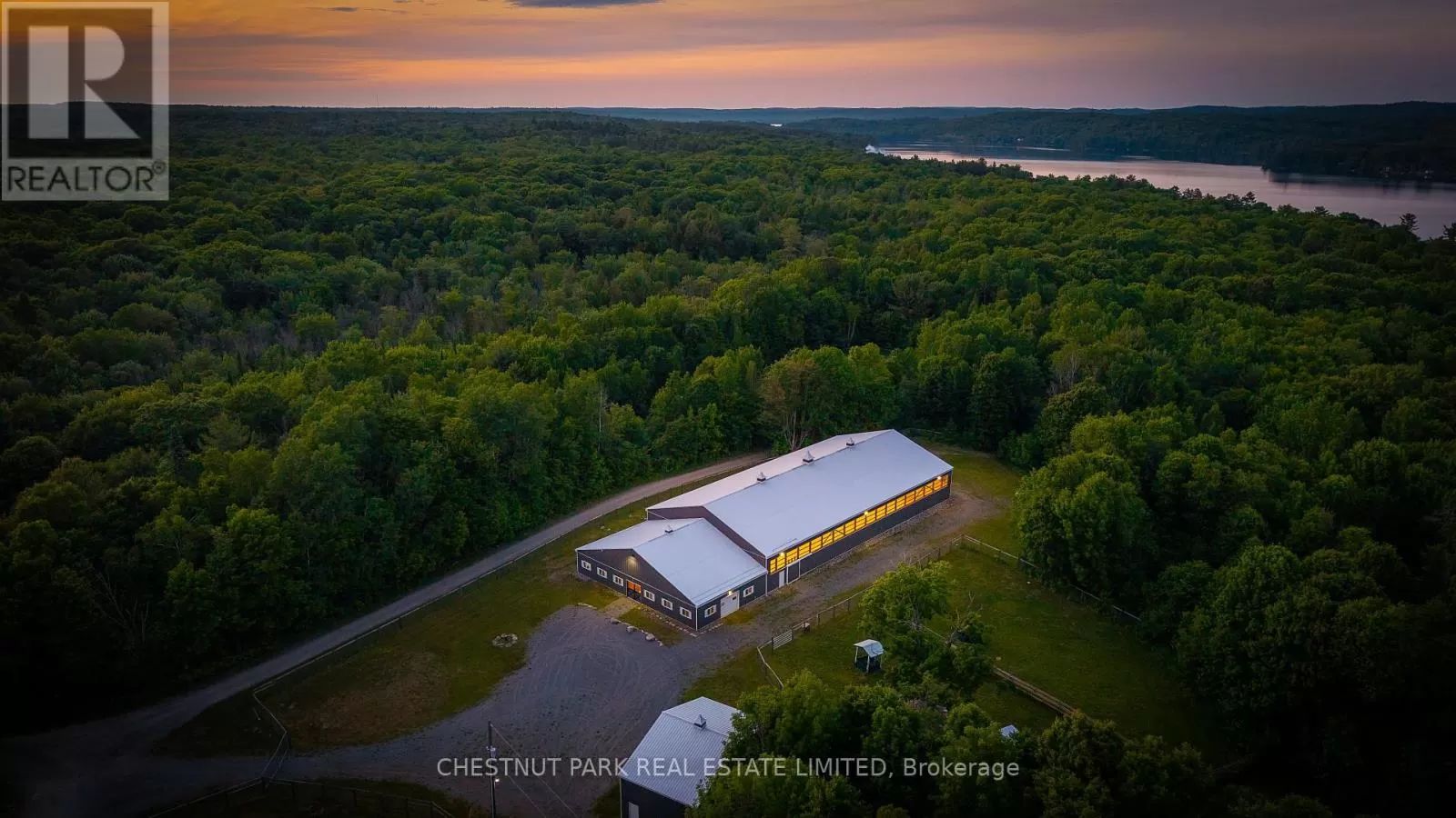 Cross Streets: Hwy 118 & Hwy 35. ** Directions: Hwy 118 - Kushog Lake Road - Buckslide - Nu Ne Lane. Outstanding opportunity to own just under 100 acres in the Haliburton Highlands, ideal for equestrian enthusiasts, nature lovers, or anyone seeking a private country estate. This versatile property features a 70 x 140 indoor riding arena, 8-stall horse barn, hay barn, and multiple gated paddocks offering excellent infrastructure for year-round riding, training, and horse care. Groomed wooded trails wind throughout the acreage, perfect for horseback riding, hiking, snowshoeing, or ATV adventures. The property combines privacy and recreation while being conveniently located near Hwy 35/118, and close to multiple lakes, golf courses, and all the amenities Haliburton has to offer. Build your dream home, hobby farm, or recreational retreat and enjoy the ultimate four-season lifestyle in one of Ontarios most desirable destinations. (id:27476)