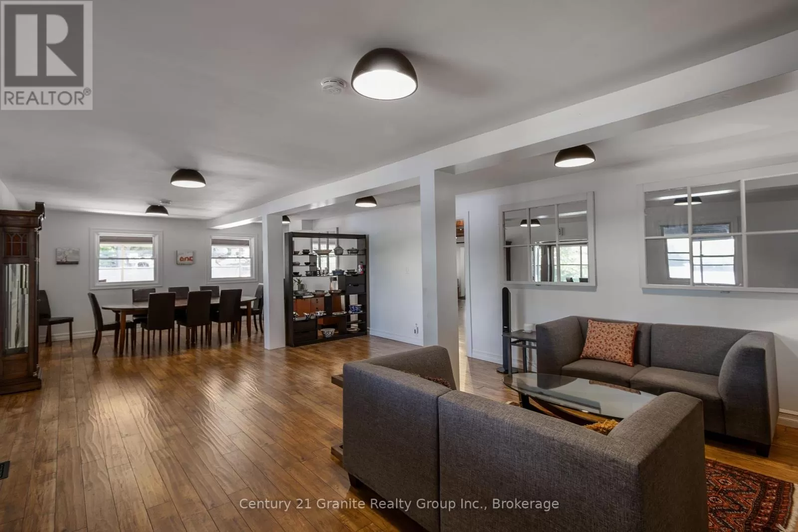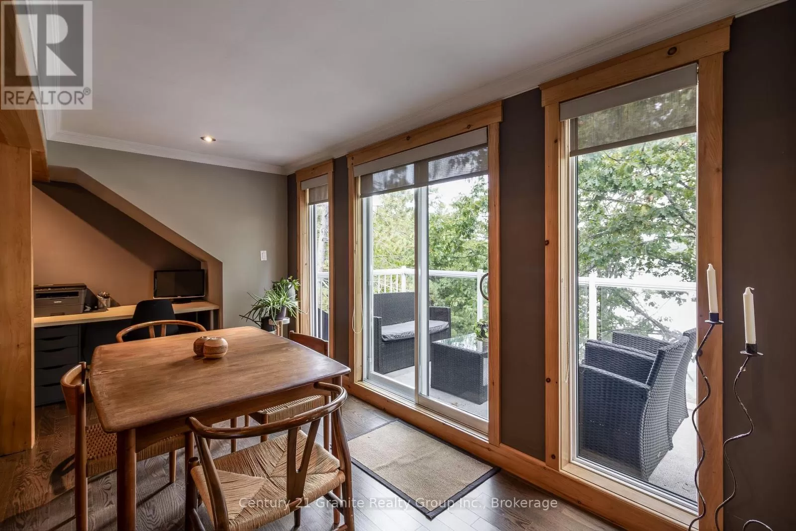 Cross Streets: Highway 35 & Little Hawk Lake Road. ** Directions: Highway 118, North of Carnarvon to Little Hawk Lake Road to #2029. Discover the incredible opportunity of Oakview Lodge & Marina, a historic inn and marina set on the shore of Little Hawk Lake, in the heart ofAlgonquin Highlands. Steeped in history and lovingly maintained with modern updates, this landmark property offers endless possibilities whether as a thriving business, a multi-generational family retreat, or a one-of-a-kind short-term rental destination. The main lodge spans over 8,500 square feet across four levels. Enter through the charming wrap-around veranda and enjoy sweeping lake views. The ground floor, once home to a licensedrestaurant, now features bright and spacious sitting, dining, and living areas, complete with a bar, a beautiful stone fireplace with an airtight wood insert. A chef's kitchen, equipped for 20, with a large pantry/laundry walks out to screened in BBQ porch and through to a beautifully landscaped, private backyard with a central fire pit area. Additional spaces include an office area, exercise area, and storage. On the second floor you'll find six updated suites all with ensuite bathrooms, providing private accommodations for family or guests, complemented by a shared deck. The third floor has been converted into a private, fully contained, 3-bedroom owner's suitewith exceptional craftsmanship, open concept kitchen, living and dining area, in suite laundry, a private balcony, and stunning lake views. The property also includes a 2-bedroom guest cottage for year-round use and an oversized 2-car garage with a loft currently used as a 3-season art studio. Oakview Marina continues to serve water access property owners with 60 boat slips, parking, and winter boat storage services, providing valuable income and potential opportunities for expansion. With its rich history, beautiful lakeside setting, extensive facilities and easy access to some of the area's best hiking trails, Oakview Lodge & Marina is truly a must-see. Book your private tour today to explore the possibilities. (id:27476)