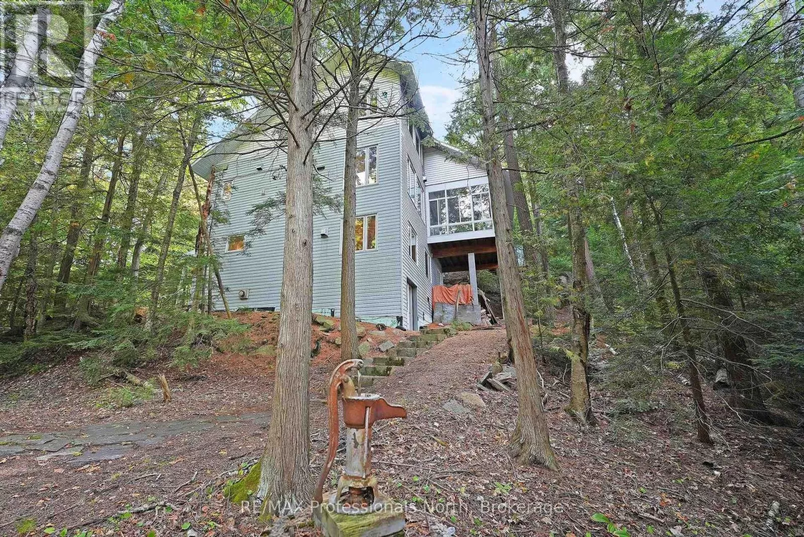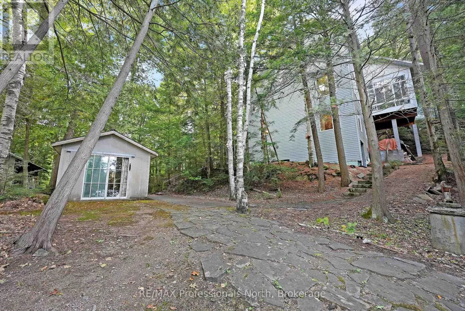 Cross Streets: Hwy 35/Hwy 117. ** Directions: Hwy 35 north of Carnarvon to #20871. A one-of-a-kind private cottage or year-round home on the shores of picturesque Wren Lake. With over 200 feet of sandy, shallow entry waterfront, you will have endless hours of lakeside enjoyment. Boat the lake, paddle into Little Wren Lake on the other side of the road, and meander through the Algonquin Water Trails, giving the avid canoe/kayak enthusiast access to multiple lakes (portaging involved) with stunning scenery. The main building is built in 3 levels - enter the lower level from the driveway and walk into a self-contained floor offering a mud room, bedroom, a living/dining area, a full kitchen, and a 4pce washroom. The main level is entered by the Garage, across a small bridge, and offers another mud room, full kitchen, living/dining area, bedroom, 4pce washroom, laundry and a lovely oversized sunroom. The top floor is waiting to be finished and is partially insulated - use your imagination! The expansive property is very private and comes with a deep and spacious garage with overhead loft for storage, a workshop/bunkie (was once used as a Bunkie while the house was being built and comes with it's own holding tank, separate from the house's septic system), a Boat house, and a great spot to launch your boat right on your own property. You are moments from the old "Frost Centre" trails and close to the community of Dorset. Head south about half an hour to Minden, or West to Huntsville or Bracebridge. (id:27476)