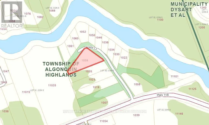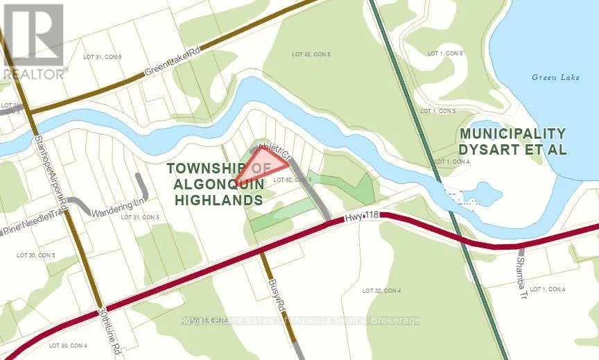 Cross Streets: Ablett Crt & HWY 118. ** Directions: Hwy 118 from Carnarvon or Haliburton to Ablett Crt. Private 1.2 acre lot in beautiful Algonquin Highlands is ready for you to start your build. Situated between Maple Lake and Green Lake on a privately maintained road and only a short distance from Hwy 118. The building area and driveway are already cleared and ready to go. Ablett Court is a dead end roadway providing additional privacy with 2 separate entrances to access the property. Mature trees dominate the perimeter. A recent survey (2024) has marked all of the property lines. Close proximity to Carnarvon to the west (~5 minutes) or Haliburton to the east (15 minutes). Lots of nearby amenities including golf, restaurants, breweries, shopping, groceries, and LCBO. Boat launch nearby on Stanhope Airport Road. Book an appointment today. (id:27476)