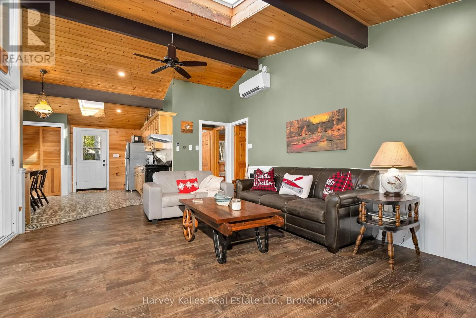 Cross Streets: HWY #35 / Kawagama Lake Rd. ** Directions: HWY #35 Kawagama Lake Rd Hollow Rd (Sign on property). Ready to begin or enhance your cottage adventures? A perfect turn-key waterfront retreat on Kawagama Lake is now available. Boasting 128' of pristine frontage, the sandy, family-friendly entry makes swimming and water fun effortless, while the dock and waterfront storage shed add convenience and charm to lakeside living. Step inside to discover more than 1000sqft on the main floor with three inviting bedrooms and a full bathroom complemented by a sun-drenched Muskoka room that perfectly captures lake views and natural light. Cozy up by the propane fireplace in the living room or host unforgettable gatherings on the lakeside deck overlooking the sparkling waters. The 725sqft walkout basement, features a separate entrance and a newly completed 3-piece bathroom, offering a versatile space for guests, hobbyists, or potential for additional living areas. Car enthusiasts and boat lovers will appreciate the 3-bay garage and ample parking, while a garden and multiple fire pit areas add an extra special touch to this lakeside haven. With a drilled well, year-round accessibility, and every detail to create the quintessential Muskoka experience, this property is more than a cottage. Lakeside memories await! (id:27476)