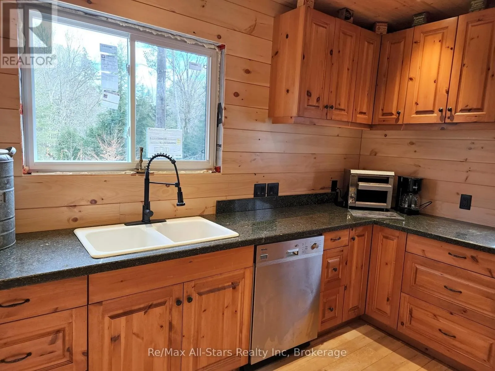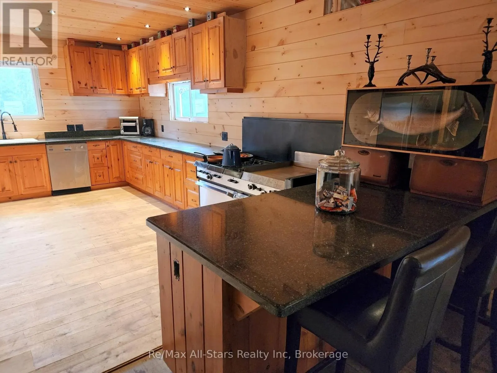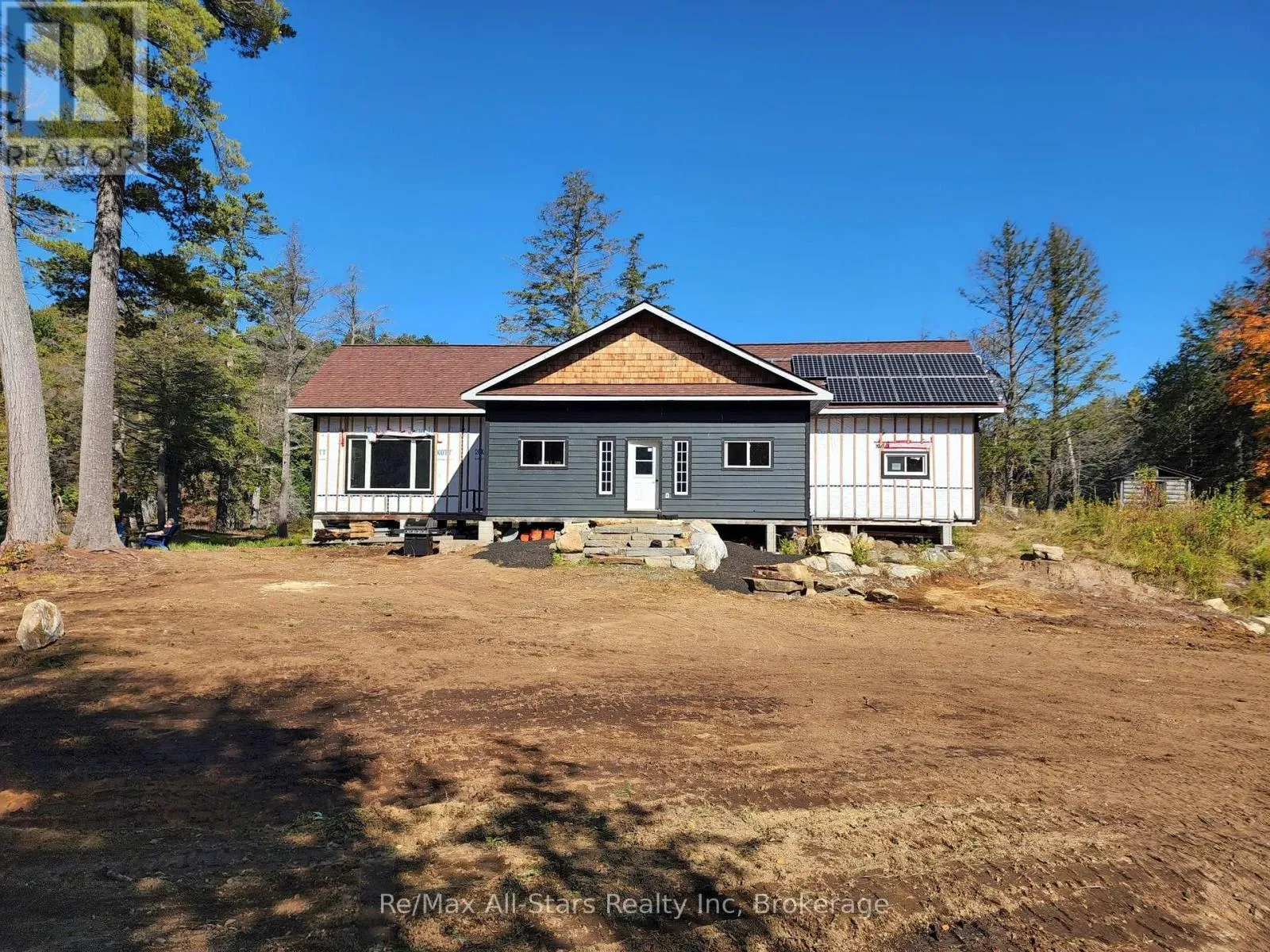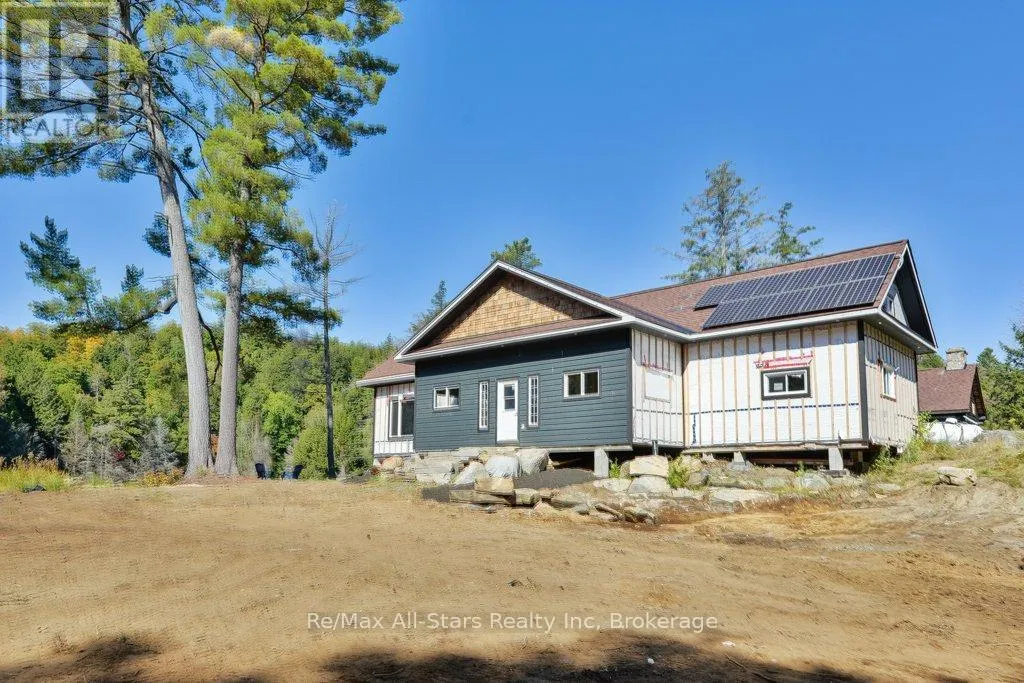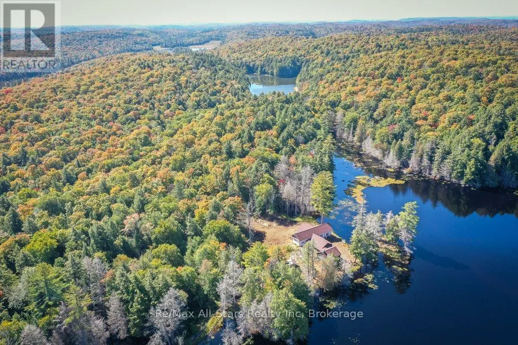 Cross Streets: Hwy 60 / Harris Road. ** Directions: Hwy 60 to Harris Rd to unmarked road. Contact LA for full details. OFF GRID Retreat with all the conveniences! 24+ Acre Gated Retreat with unmatched Privacy & Serenity! Situated within thousands of acres of pristine crown lands forest, this one-of-a-kind property features stunning waterfront on both Corbett and Button Lakes, each approximately a quarter-mile long, making it an ideal waterfront sanctuary or hunting lodge or camp. Corbett Lake is 45 ft + deep and has trout! Located in Moose hunting Area 54, its a nature lovers dream, surrounded by abundant wildlife including moose, deer, and loons. The historic log cabin, originally built in the late 1800's as Corbett Lake Lodge and then a hunt camp, has been thoughtfully expanded to over 3,200 sq ft, seamlessly blending rustic charm with modern upgrades. Enjoy a state-of-the-art fully automatic solar system with bulk battery and Wacker diesel generator backup, powering the entire building. Other features include a new septic system and drilled well. The original cabin showcases a striking floor-to-ceiling stone fireplace, with pine-lined bedroom walls and ceilings, while the partially finished addition offers vaulted ceilings, lofts for extra sleeping, and a spacious open-concept kitchen, dining, and living area perfect for entertaining. Accessible via an old colonization road from Harris Rd, just 20 km from Dwight, Muskoka, the property is reachable by pickup truck and connects to extensive crown land trails for hiking, mountain biking, hunting, ATV, or snowmobiling. There are many crown land lakes to explore nearby and drop your fishing line in. A rare, unparalleled retreat with acreage to explore nature! Close to Algonquin Park and Oxtongue Lake. Note: Lake measurements are approximate; buyers should conduct their own due diligence. Viewings by appointment only. Interior is nearing completion! (id:27476)
