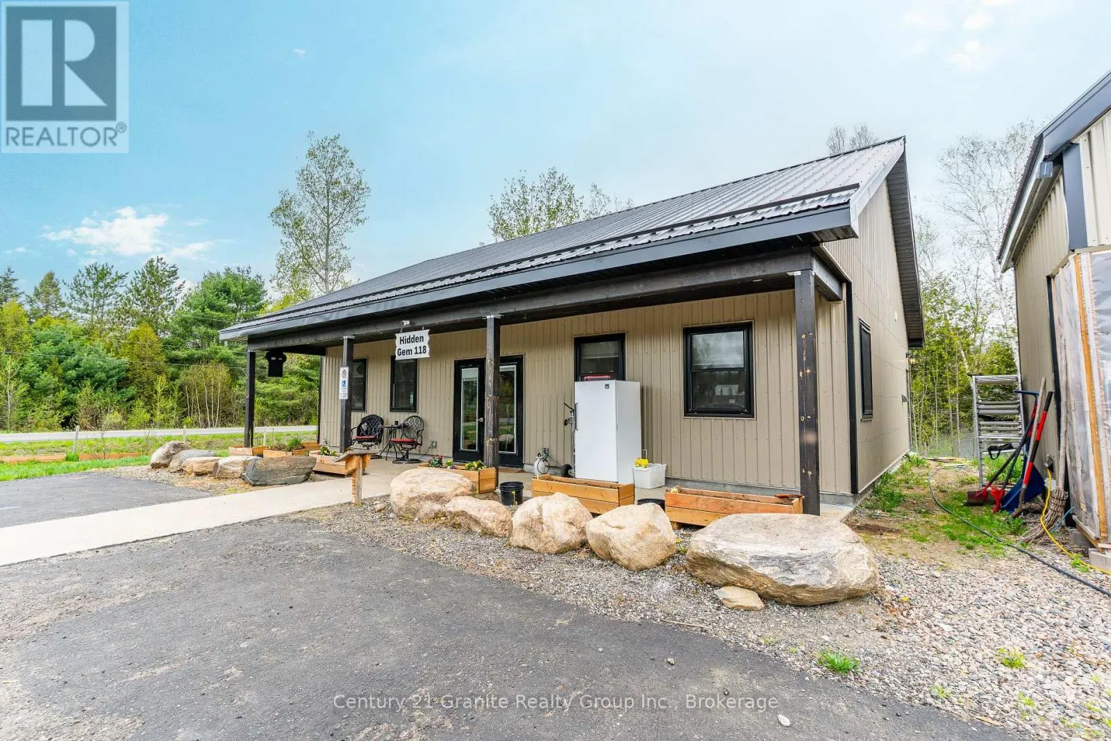 HWY 118 & Hwy 35 Have you ever dreamed of relocating to Haliburton County to start your own business or own a stunning piece of land? This 18-acre property offers a rare opportunity to turn that dream into a reality. Perfectly situated along one of the busiest highways in Haliburton County, a major route through the heart of central Ontario, this property provides exceptional visibility and access to endless possibilities. Custom-built in 2022, the 1,200-square-foot main building exudes rustic charm with its beautiful wood finishes, capturing the essence of cottage-country living. The property also features a large walk-in refrigerator (completed in 2024), a commercial kitchen, and a convenient laundry room. In addition, three cozy Bunkie's provide guest accommodation or extra storage space. For those seeking to expand or diversify, the property is approved for the development of cabins, set around a tranquil 1-acre pond, perfect for year-round recreation whether it's relaxing by the beach in summer or skating in the winter. The picturesque setting makes this property an ideal destination retreat. Beyond the buildings, the land itself offers even more value with its own array of natural resources. Enjoy the fruits of a diverse farm-to-table setup with fruit trees, berry bushes, wild leeks, honey from the on-site hives, tapped maple trees, and a fully functional chicken coop. These offerings present unique opportunities for sustainable agriculture or an added attraction for a business focused on local products. Fully customizable to meet your unique business needs, this expansive property offers ample space for growth, whether you're looking to start a retail business, a resort, or any other entrepreneurial venture. The potential is limitless! Seize this rare opportunity to create something truly special in one of Ontario's most scenic and sought-after locations. (id:27476)