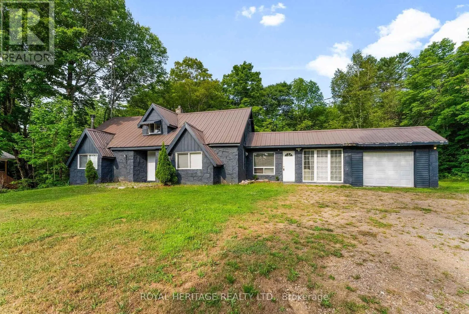 Cross Streets: Kawartha Lakes County Rd 4 to ON-35. ** Directions: HWY 35 TO PROPERTY. Welcome to 17415 Highway 35 in the beautiful Algonquin Highlands, a versatile property perfect for home or cottage living. This charming 1.5-story residence offers four spacious bedrooms and two bathrooms. Open concept living on main floor with family-oriented games room -easily used as 'Muskoka Room'. Light and airy with windows galore and views of nature from every vantage point. The property boasts stunning views of Halls Lake and provides convenient lake access a multitude of nearby lakes without paying waterfront taxes, ideal for all outdoor enthusiasts. Situated on an 181.88 ft x 310.8 ft irregular six-sided lot, this home features durable vinyl siding and a new metal roof installed in 2017. New kitchen floors/cabinets, windows and washroom/bedroom updates 2025. The electrical system was updated in 2022, ensuring modern convenience. With ample parking, a drilled well, and a wooded lot, this property offers both comfort and tranquility at an affordable offering. Enjoy cozy evenings by the wood fireplaces or utilize the baseboard electric heating. Proximity to Huntsville, Dorset, Haliburton, and Minden, ALGONQUIN PARK, enhances the appeal. Exceptional Value! Book your showing today, this wont last long!! (id:27476)