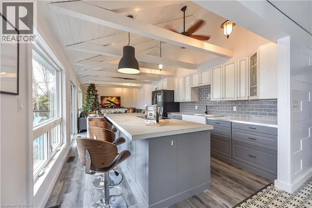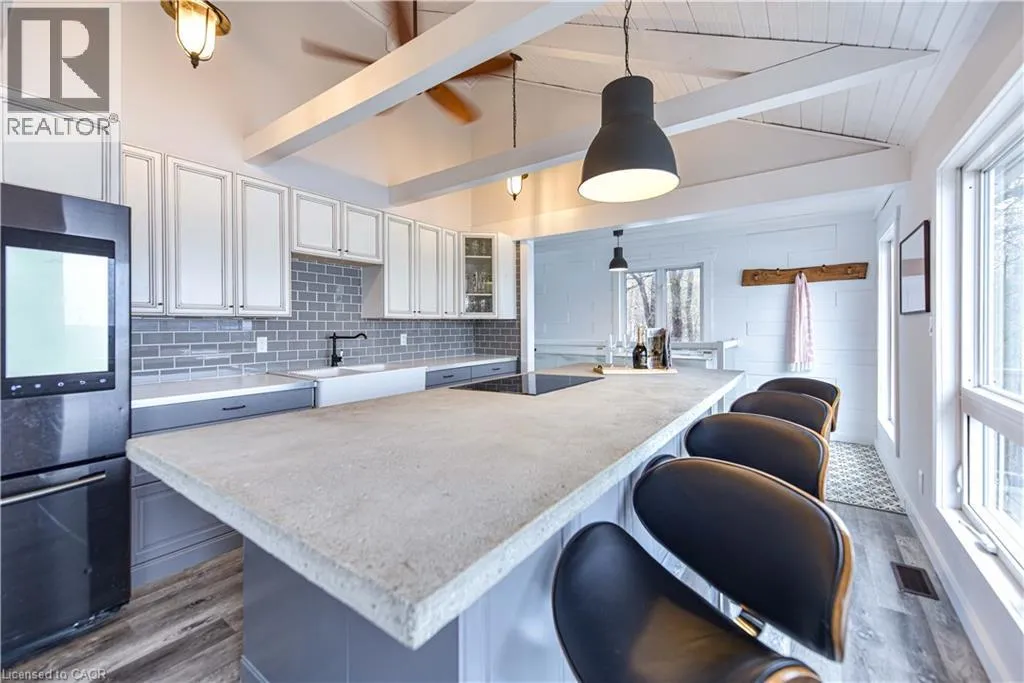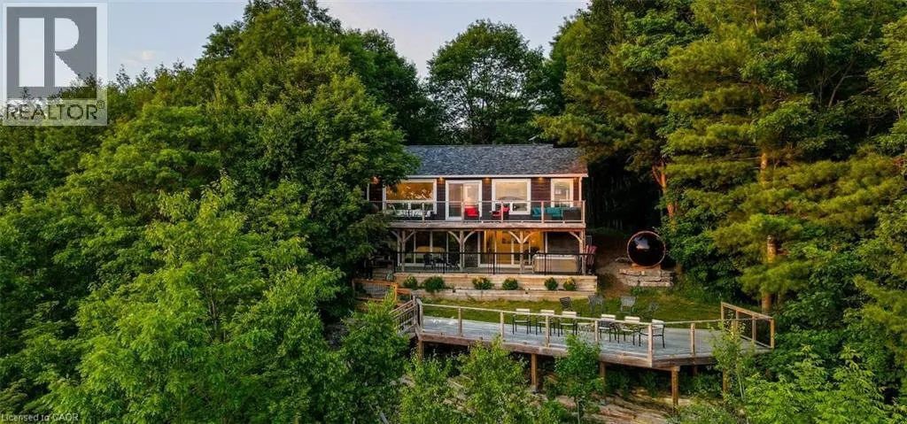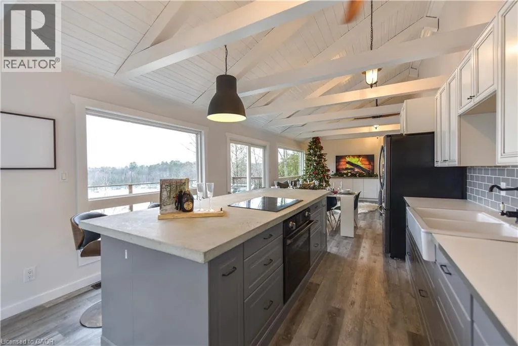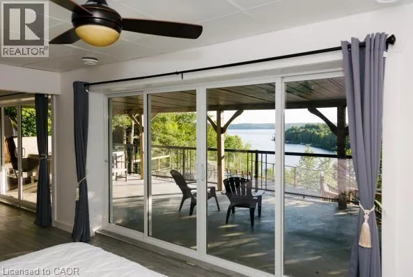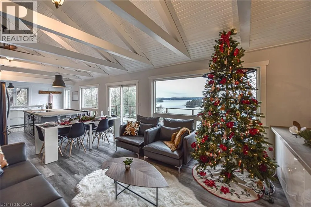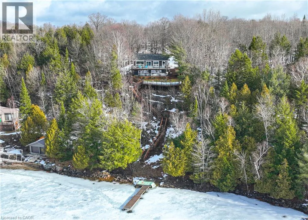 Take Highway 35 to Whyman Road. Continue along Whyman Rd and follow the signs. Perched above the pristine shores of Boshkung Lake, 1047 Whyman Road is a storybook four-season retreat where luxury and nature meet. This architecturally striking 2+2 bedroom, 2-bathroom home is set on a gently sloped lot with breathtaking panoramic views, western sunset exposure, and sandy walk-in waterfront perfect for families, investors, or those seeking refined relaxation.The elevated design blends rustic charm with modern minimalism. Wrapped in black exterior accents and tiered decking, the home invites you into open-concept interiors flooded with natural light. Wide-plank floors, vaulted ceilings, and a spa-like primary suite with soaker tub elevate every space. A panoramic barrel sauna and hot tub on the patio overlook the lake, creating a wellness sanctuary right at home.Upgrades include a new septic system, electrical panel, Starlink Wi-Fi, and year-round municipal road access. A new dock extends into deeper water, ideal for boating, swimming, and fishing across the renowned three-lake Boshkung chain. Whether hosting family at Christmas, retreating for a quiet weekend, or generating passive income from a proven rental history, this property offers both lifestyle and legacy. Just 20 minutes from Haliburton, Minden, and Sir Sams Ski Hill, this rare offering delivers on every front a luxury lakeside escape designed to impress. (id:27476)