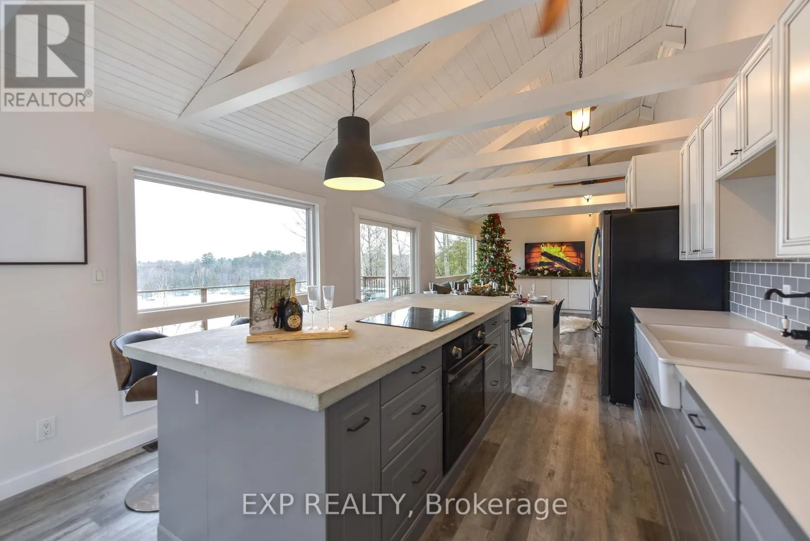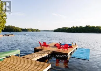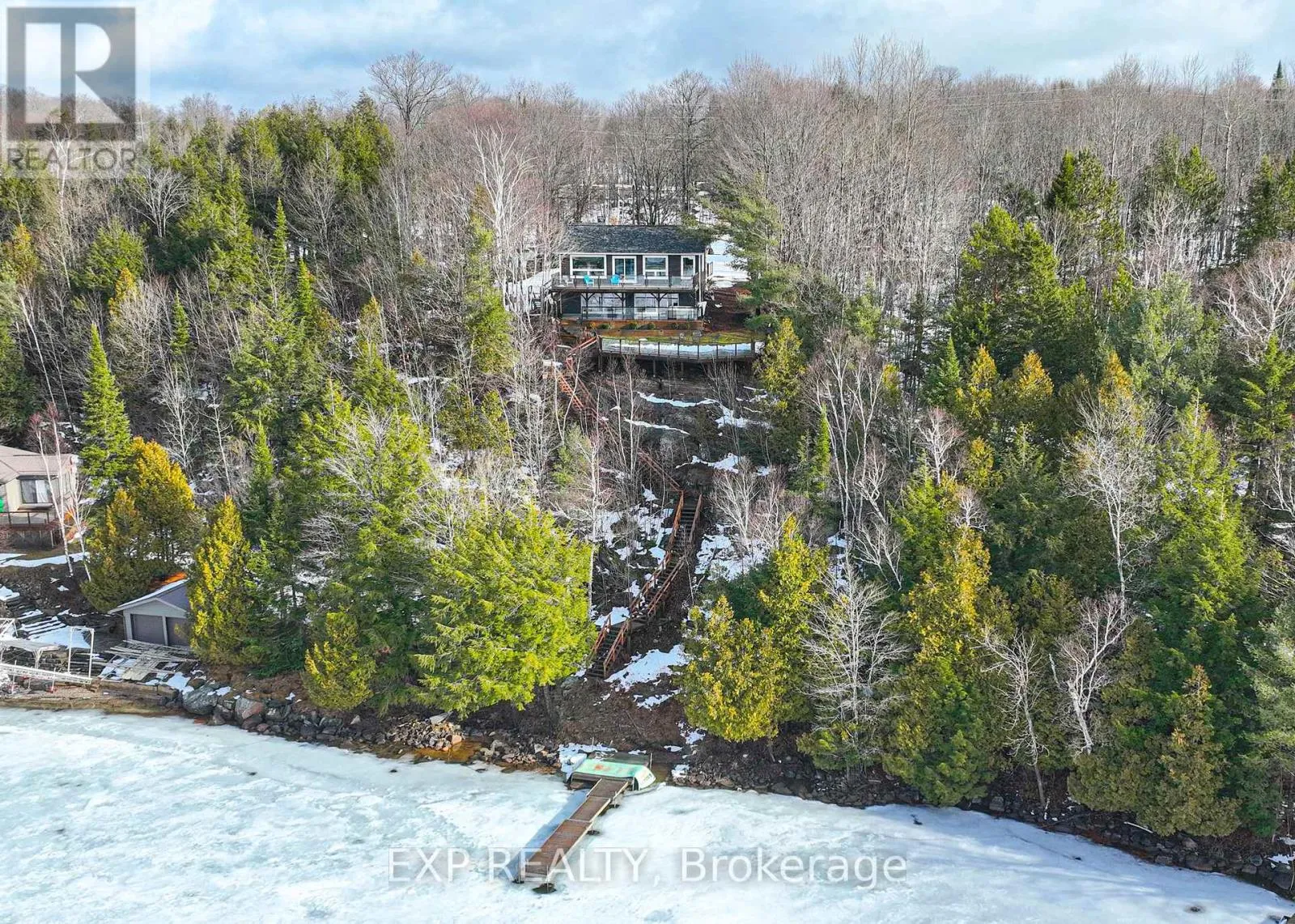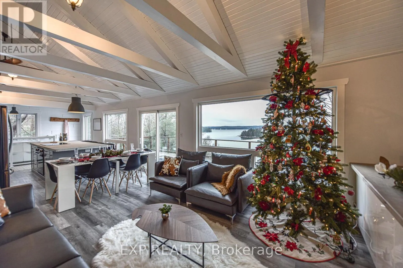 Cross Streets: Hwy 35 & Whyman Road. ** Directions: Take Highway 35 to Whyman Road. Continue along Whyman Rd and follow the signs. Perched above the pristine shores of Boshkung Lake, 1047 Whyman Road is a storybook four-season retreat where luxury and nature meet. This architecturally striking 2+2 bedroom, 2-bathroom home is set on a gently sloped lot with breathtaking panoramic views, western sunset exposure, and sandy walk-in waterfront perfect for families, investors, or those seeking refined relaxation.The elevated design blends rustic charm with modern minimalism. Wrapped in black exterior accents and tiered decking, the home invites you into open-concept interiors flooded with natural light. Wide-plank floors, vaulted ceilings, and a spa-like primary suite with soaker tub elevate every space. A panoramic barrel sauna and hot tub on the patio overlook the lake, creating a wellness sanctuary right at home.Upgrades include a new septic system, electrical panel, Starlink Wi-Fi, and year-round municipal road access. A new dock extends into deeper water, ideal for boating, swimming, and fishing across the renowned three-lake Boshkung chain.Whether hosting family at Christmas, retreating for a quiet weekend, or generating passive income from a proven rental history, this property offers both lifestyle and legacy. Just 20 minutes from Haliburton, Minden, and Sir Sams Ski Hill, this rare offering delivers on every front a luxury lakeside escape designed to impress. (id:27476)