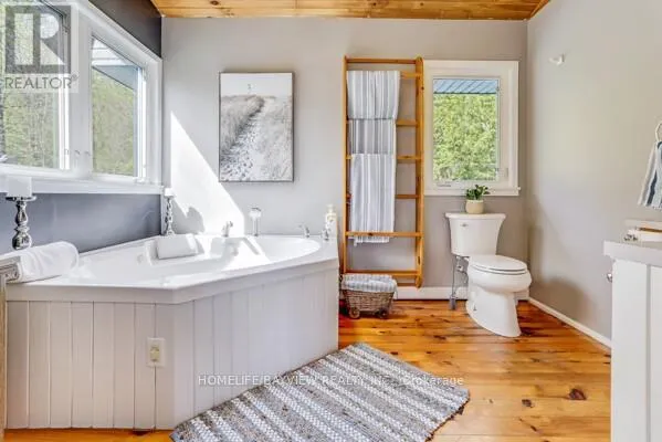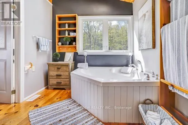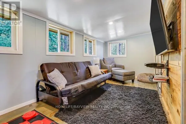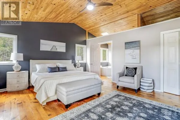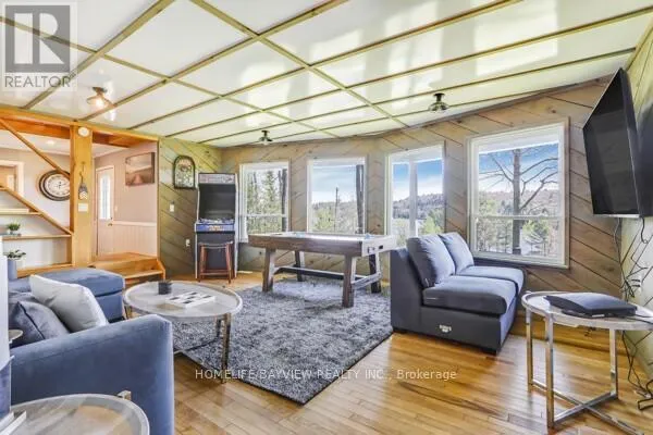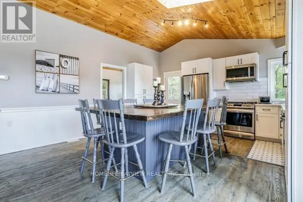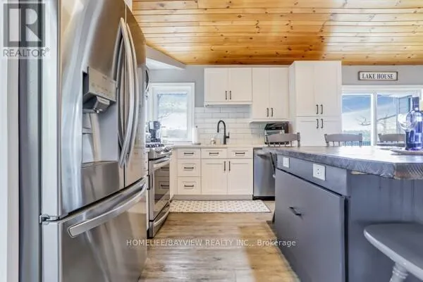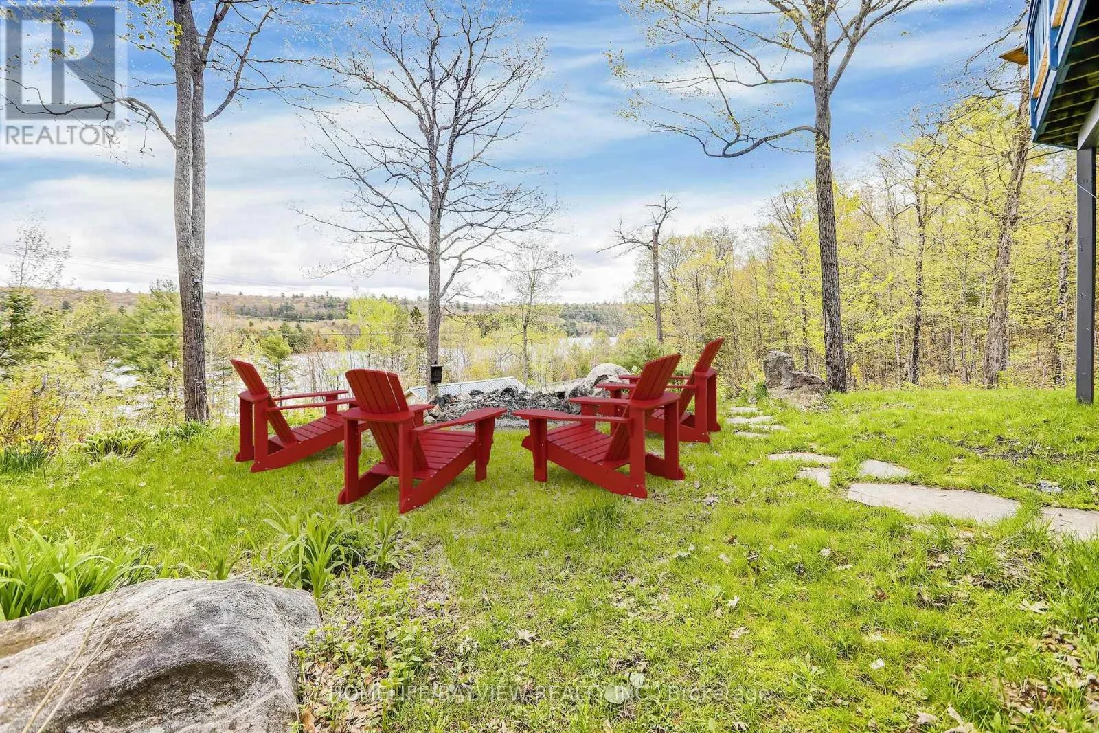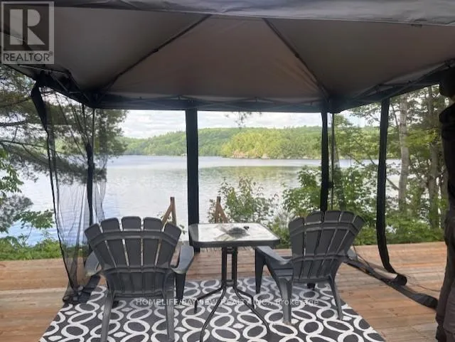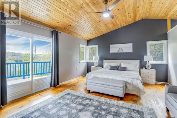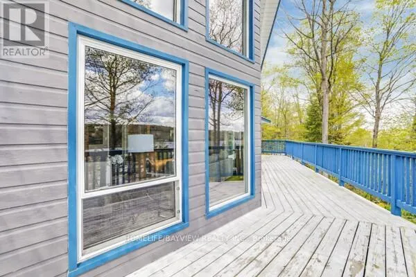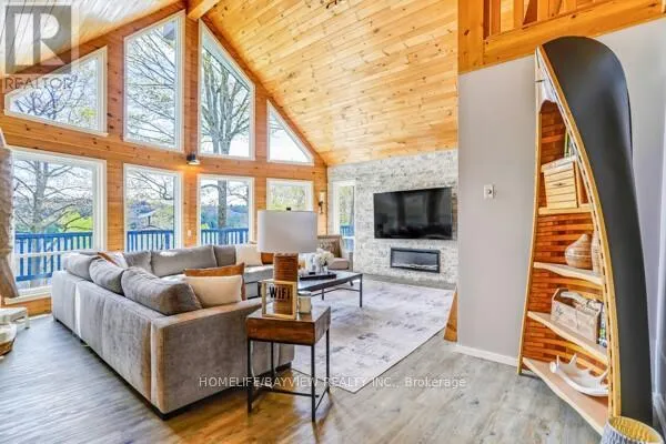 Cross Streets: Hwy 35 North Of Ox Narrows. ** Directions: google maps. Gorgeous 5 Bedroom + Loft Four Season A Frame Chalet Overlooking the Shores of Kushog Lake Nestled on 2.33 Acres in Picturesque Algonquin Highlands! Spanning approximately 3,000 sq. ft. across two levels, this inviting retreat offers private direct access to the lake, complete with a two-level deck and dock! The property showcases soaring vaulted ceilings, warm wooden accents, and rustic charm, highlighted by a new stone wall & Electric Fireplace that creates a cozy ambiance throughout. As you enter, you're welcomed by a spacious open-concept living area, boasting expansive floor-to-ceiling windows that frame magnificent views of the lake. The open-concept kitchen features a vaulted ceiling with skylights, an island perfect for gatherings, and a walkout to a wraparound deck offering stunning, unobstructed vistas of the lake and trees. This exquisite home includes five generously sized bedrooms, highlighted by a luxurious master suite with a private ensuite that features a skylight and access to a balcony to enjoy your morning coffee. Additionally, there are two more full washrooms, each beautifully appointed with modern fixtures and elegant finishes. For convenience, the property includes a spacious detached two-car garage with electricity. A separate double-car covered carport and 3rd bay provide great storage for boats/trailers. A quick stroll across the road grants you immediate access to the shores of Kushog Lake, complete with dock access. This is a fantastic opportunity for a family retreat that's both quiet and relaxing, located just minutes from Minden and Dorset, and within easy reach of ski hills, ATV, and snowmobile trails, restaurants, and shops. (id:27476)