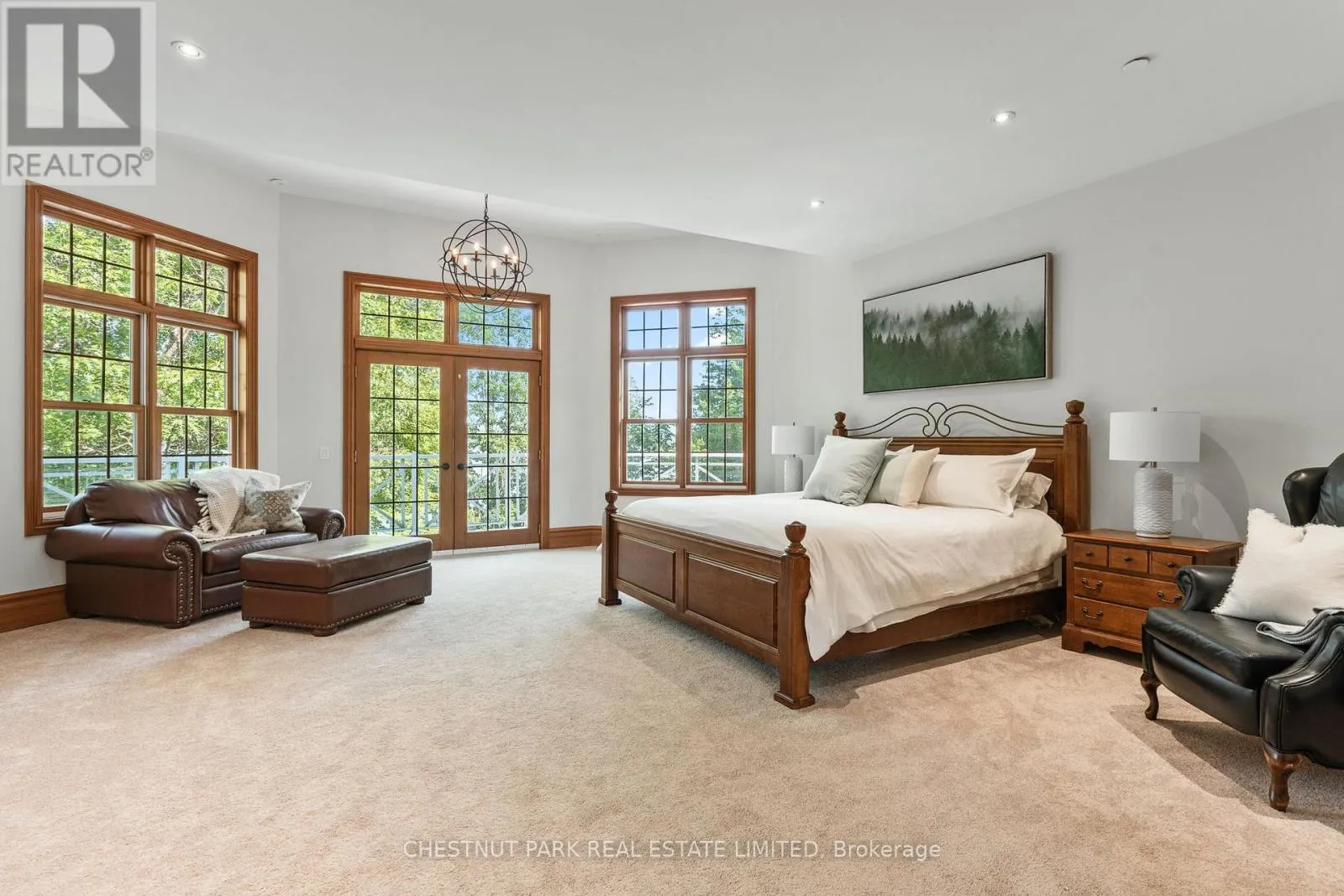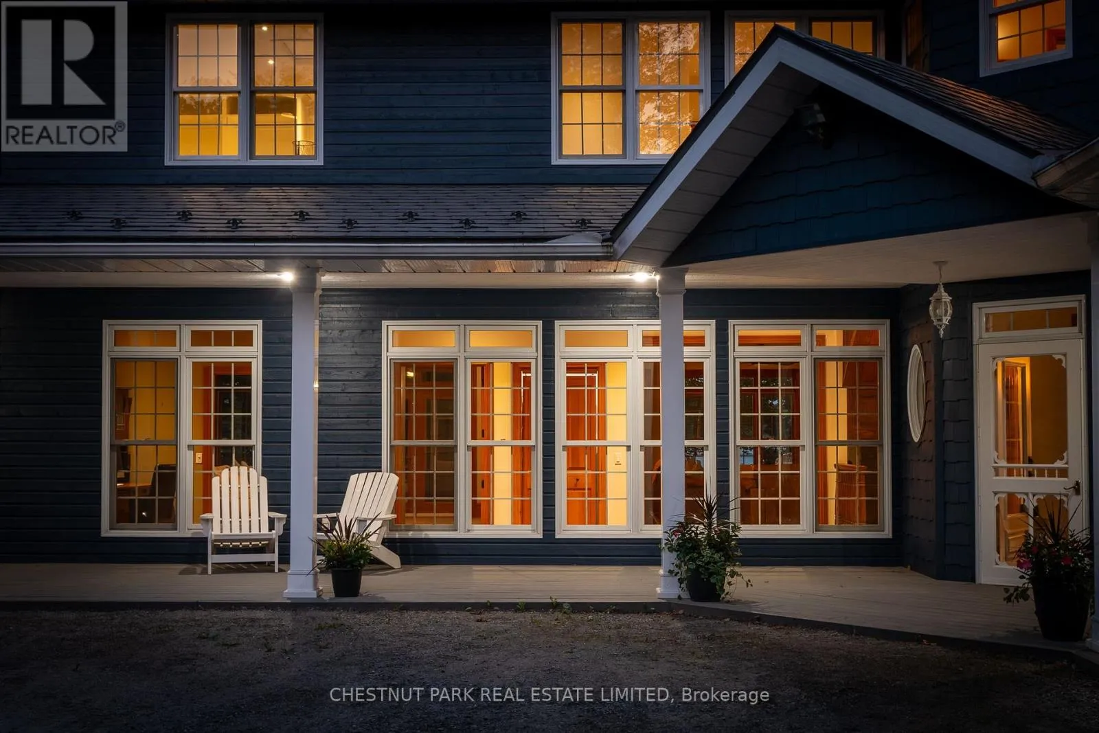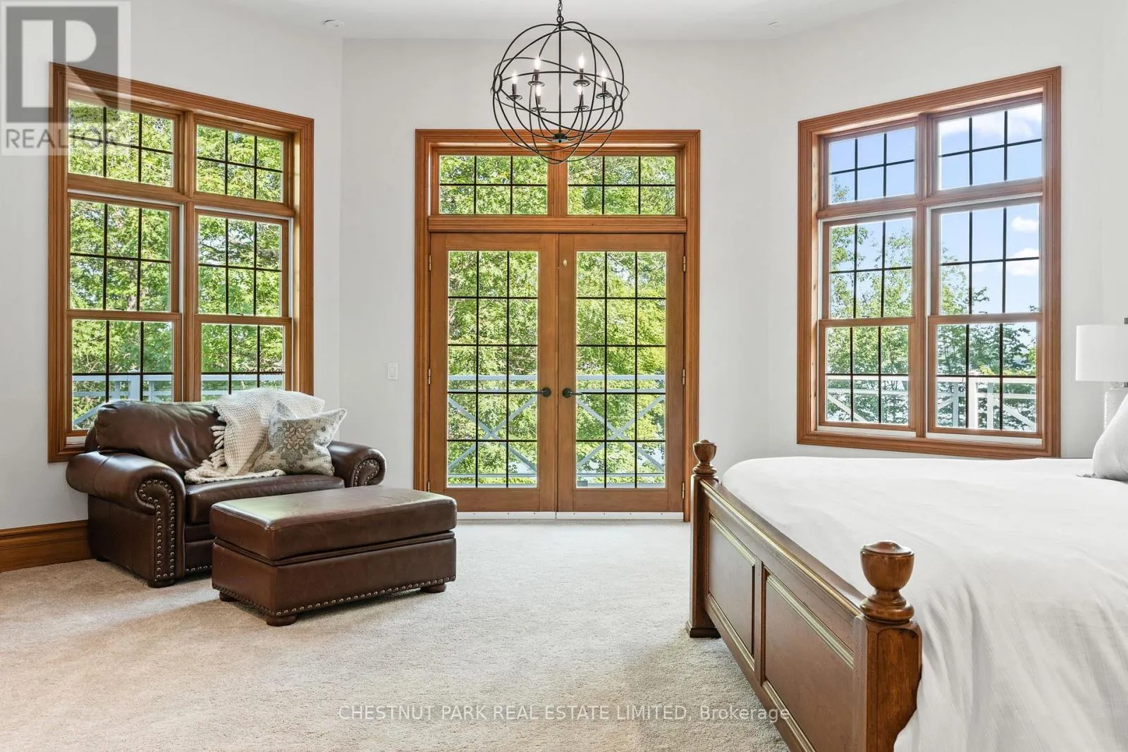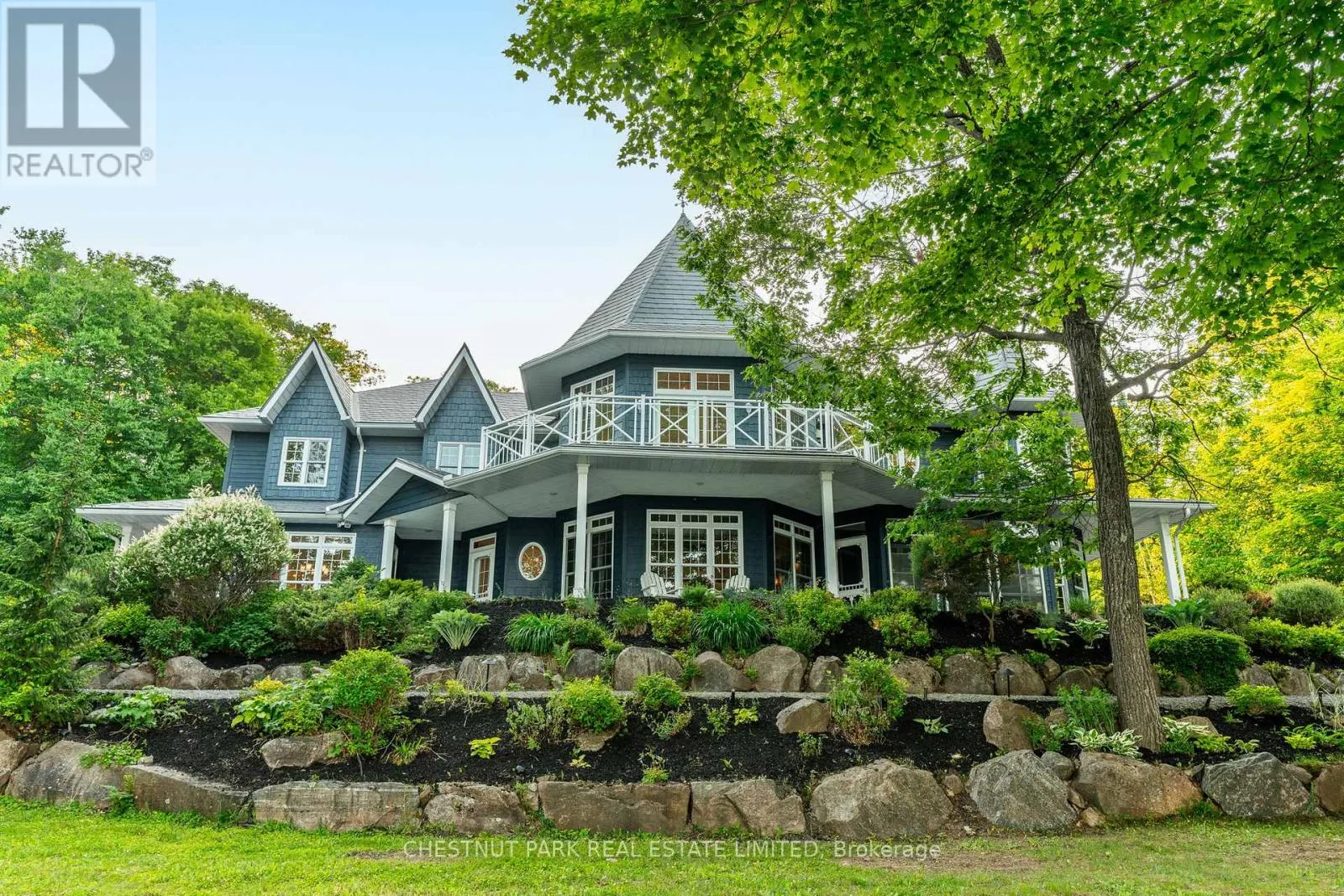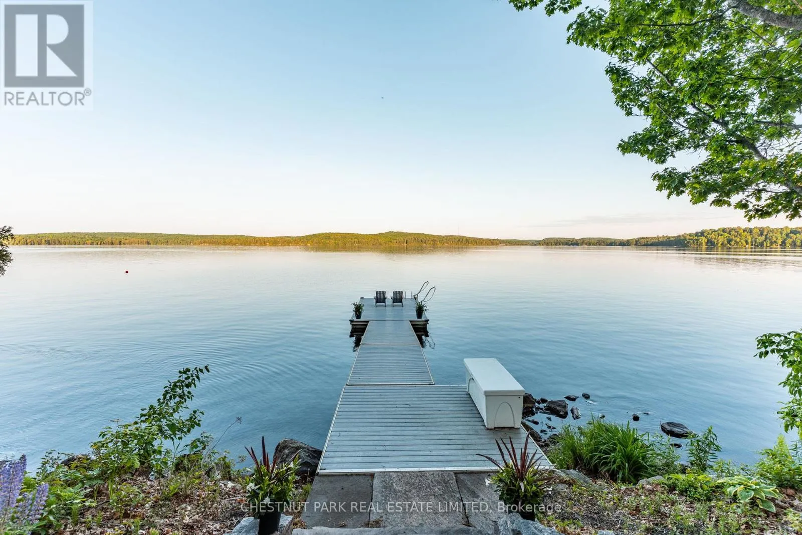 Cross Streets: Hwy 118 & Kushog Lake Road. ** Directions: Hwy 118 to Kushog Lake Rd to Buckslide to Nu Ne. Landmark estate on Boshkung Lake with 440 ft of pristine shoreline and just under five acres of unmatched privacy. Located in the heart of the Haliburton Highlands, this luxury waterfront property offers over 7,000 sq ft of finished living space and an exceptional four-season lifestyle. The custom-built home features 4 bedrooms, including a breathtaking primary suite with fireplace, spa-inspired ensuite with soaker tub overlooking the lake, walk-in closet, and private lakeside deck with panoramic views. The gourmet eat-in kitchen is designed for both everyday living and entertaining, with premium appliances, custom cabinetry, expansive prep space, and a sunlit breakfast area, complemented by a butler's pantry. A grand dining room with fireplace creates a perfect setting for hosting, while multiple living areas capture uninterrupted lake views and provide seamless indoor-outdoor flow. The fully finished walkout lower level offers a home theatre and games area, fitness room, additional flex space, and a spa-like bath for year-round enjoyment. Outdoor living is elevated with maintenance-free Trex decking, hot tub, and professionally landscaped grounds featuring tiered gardens, lakeside pathways, irrigation system, and ambient lighting, creating a private resort-style setting. A secondary driveway, carport, and 4-car insulated garage add convenience and functionality. Two composite docking systems provide excellent access for boating, swimming, and watersports on one of Haliburton's most sought-after lakes. A rare opportunity to own a generational waterfront estate in one of Ontario's premier cottage country destinations. (id:27476)
