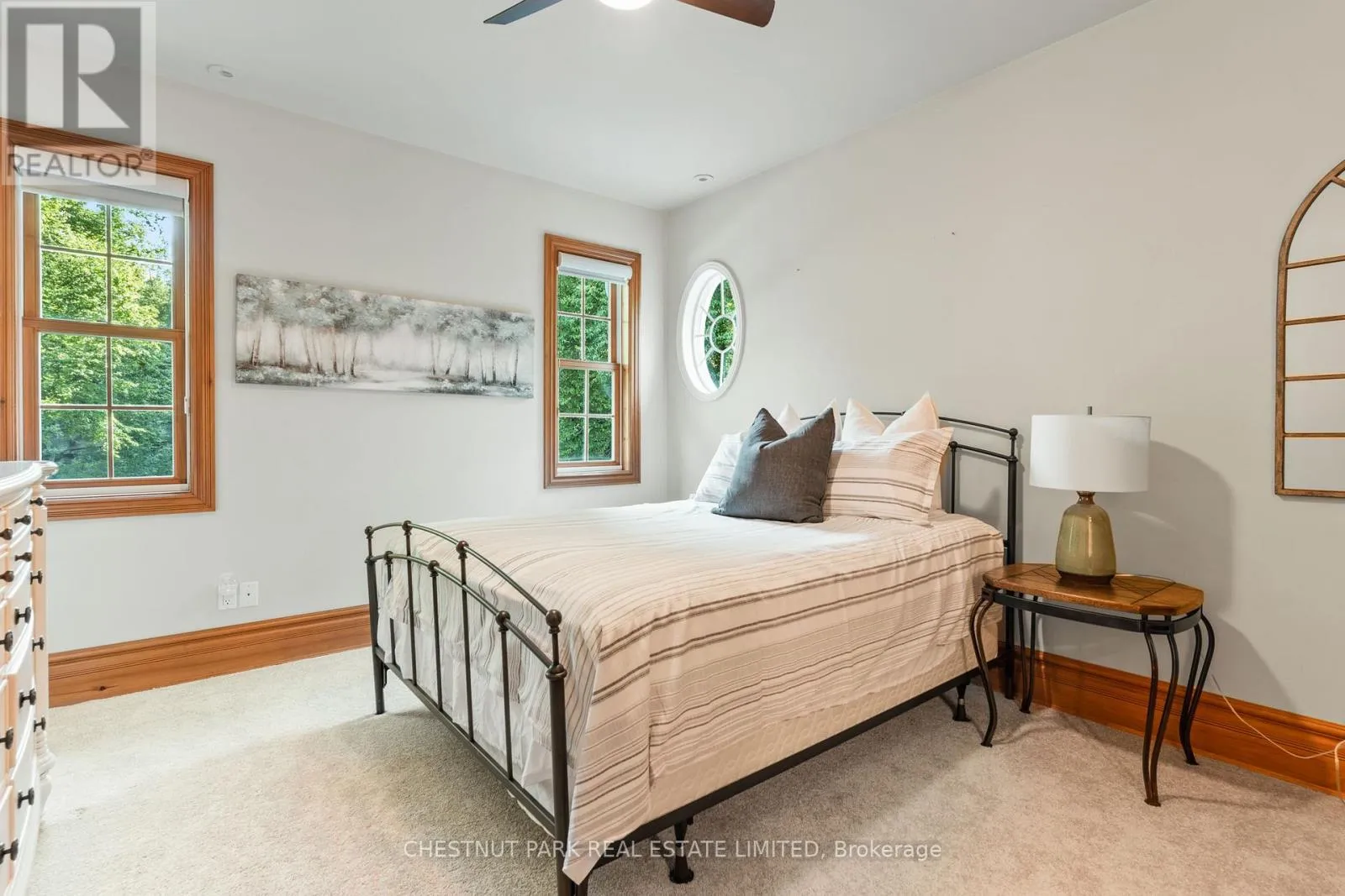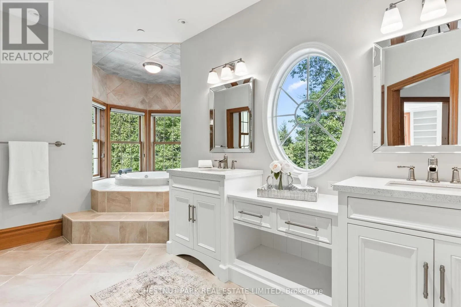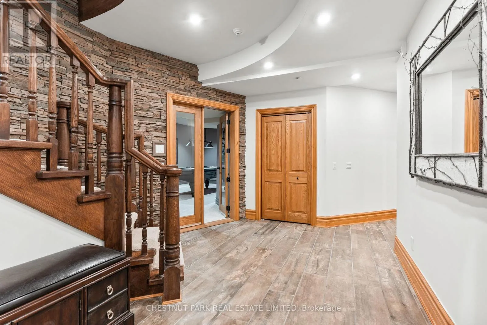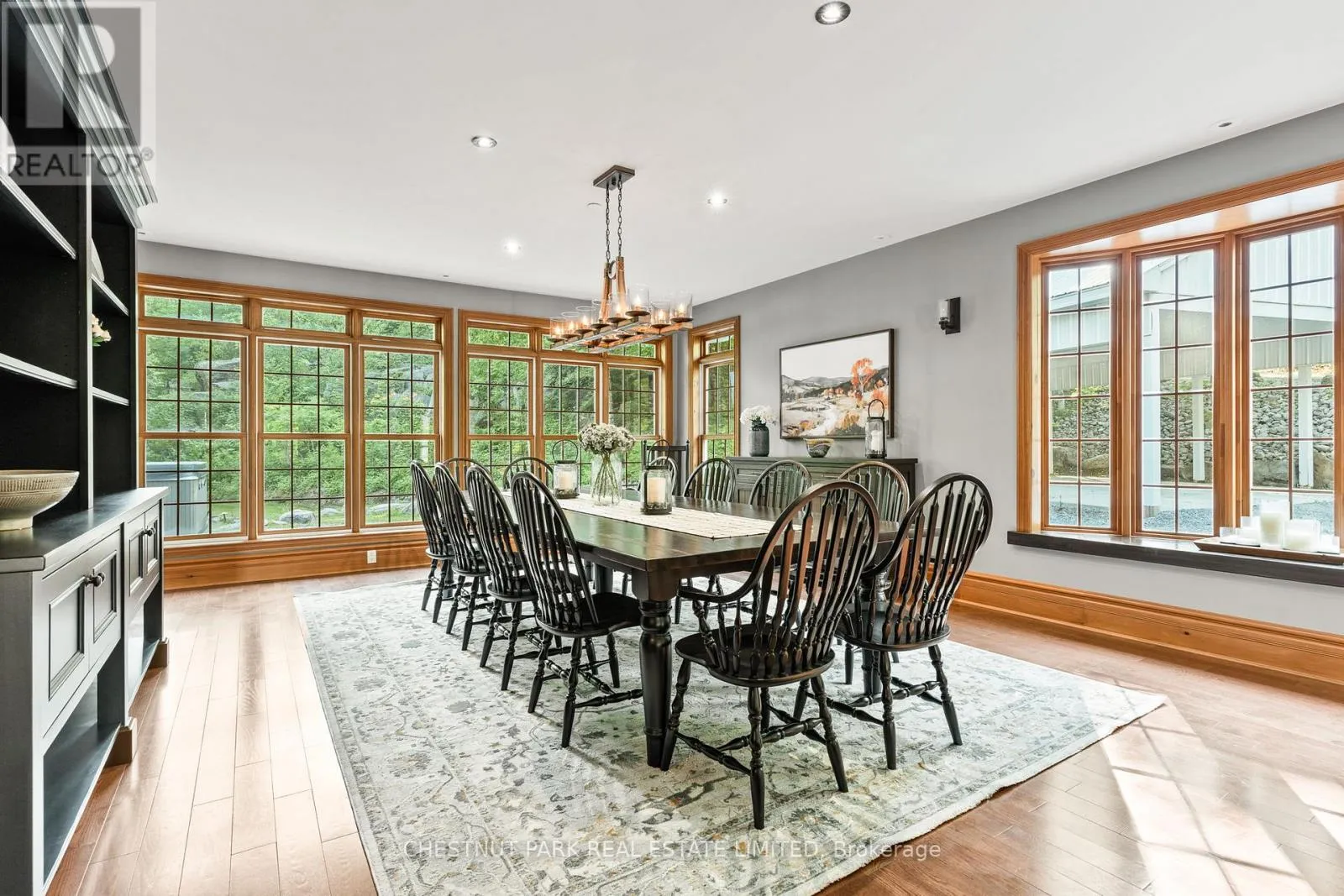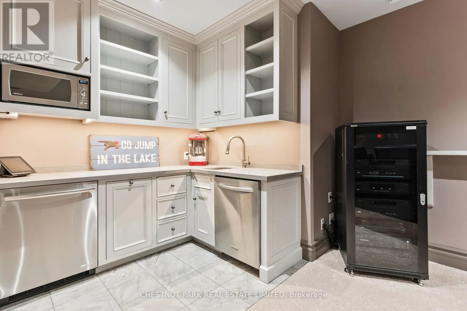 Cross Streets: Hwy 118 & Kushog Lake Road. ** Directions: Hwy 118 to Kushog Lake Rd to Buckslide to Nu Ne. Landmark estate on Boshkung Lake with 440 ft of pristine shoreline and just under five acres of unmatched privacy. Located in the heart of the Haliburton Highlands, this luxury waterfront property offers over 7,000 sq ft of finished living space and an exceptional four-season lifestyle. The custom-built home features 4 bedrooms, including a breathtaking primary suite with fireplace, spa-inspired ensuite with soaker tub overlooking the lake, walk-in closet, and private lakeside deck with panoramic views. The gourmet eat-in kitchen is designed for both everyday living and entertaining, with premium appliances, custom cabinetry, expansive prep space, and a sunlit breakfast area, complemented by a butler's pantry. A grand dining room with fireplace creates a perfect setting for hosting, while multiple living areas capture uninterrupted lake views and provide seamless indoor-outdoor flow. The fully finished walkout lower level offers a home theatre and games area, fitness room, additional flex space, and a spa-like bath for year-round enjoyment. Outdoor living is elevated with maintenance-free Trex decking, hot tub, and professionally landscaped grounds featuring tiered gardens, lakeside pathways, irrigation system, and ambient lighting, creating a private resort-style setting. A secondary driveway, carport, and 4-car insulated garage add convenience and functionality. Two composite docking systems provide excellent access for boating, swimming, and watersports on one of Haliburton's most sought-after lakes. A rare opportunity to own a generational waterfront estate in one of Ontario's premier cottage country destinations. (id:27476)