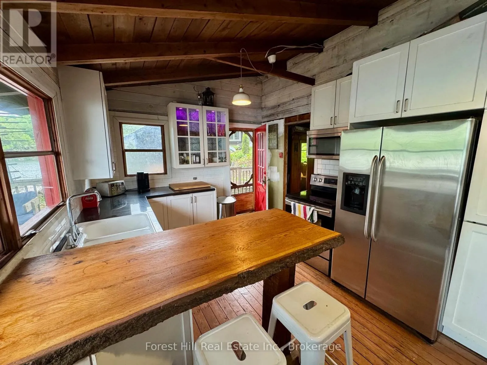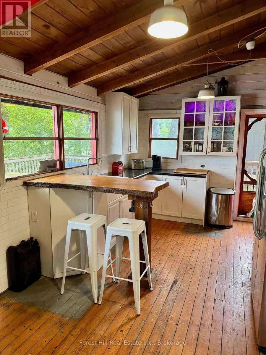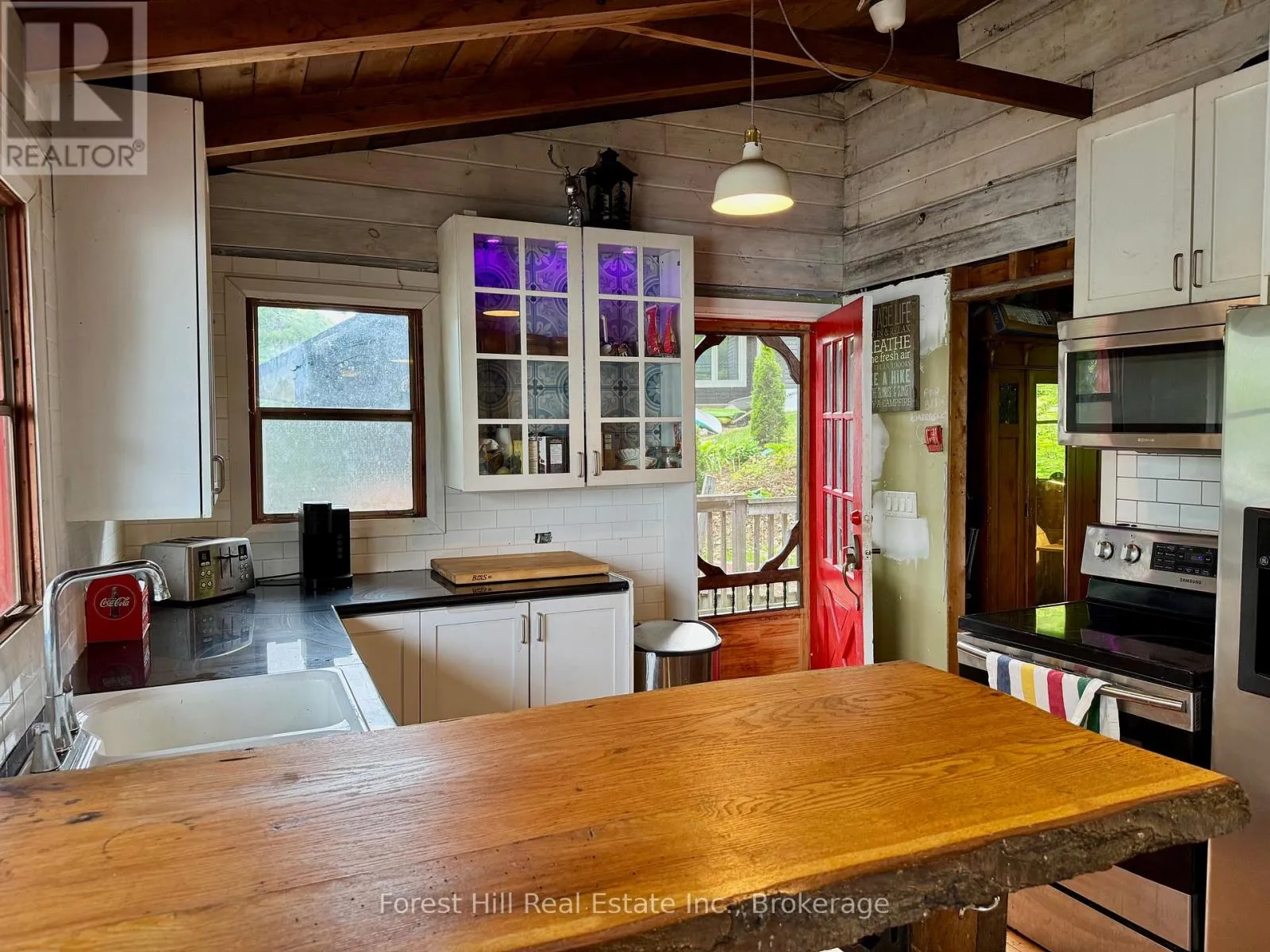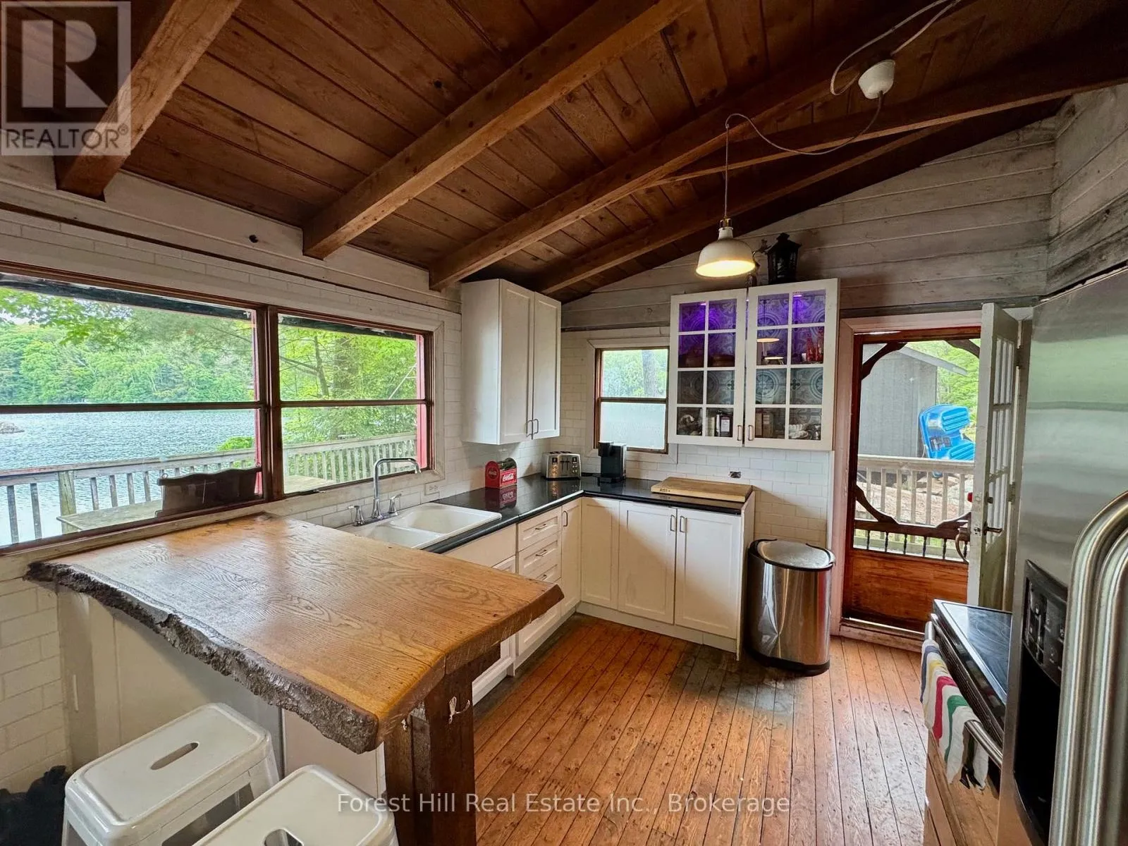 Cross Streets: Highway 35 & Tock Lane. ** Directions: Highway 35, Tock Lane, Causeway Drive. Charming, rustic cabin that dates back to the early 1960's.The best aspects of this appealing property are the close proximity to the lake, tall mature white pines, smooth granite rock shore, sunrise view down the lake and a crown-owned island just off the shore to swim to and picnic on. As soon as one walks into the cabin, the wooden ceilings and beams, old pine floors and overall cottage country vibe will embrace you and compel you to stay. The wood stove warms the interior quickly and keep everyone cozy. Astounding views of nature pour in through the windows. Open concept between the living spaces within, which keeps family and friends connected. The walkout to a sprawling sundeck is special with an unparalleled view like no other! The rocky shore allows swimmers to wade in and yet there's deep water, ideal for docking water vessels along a great floating dock. This lake has a real family vibe to it. Explore some crown land trails for snowmobiling, snowshoeing, ATVing or mountain biking and so much more! The calls of loons, owls and wolves...together with enjoying star-lit dark skies by the firepit are FREE! Fishing in Otter Lake is awesome. E.B White was known to enjoy this special lake, decades ago, at a camp located at its east end. Come by and see why this lake appeals to so many! Located conveniently close to the enchanting town of Dorset, and yet only 2 1/2 hrs from Toronto. Start your memories here at this Algonquin~esque beauty! (id:27476)