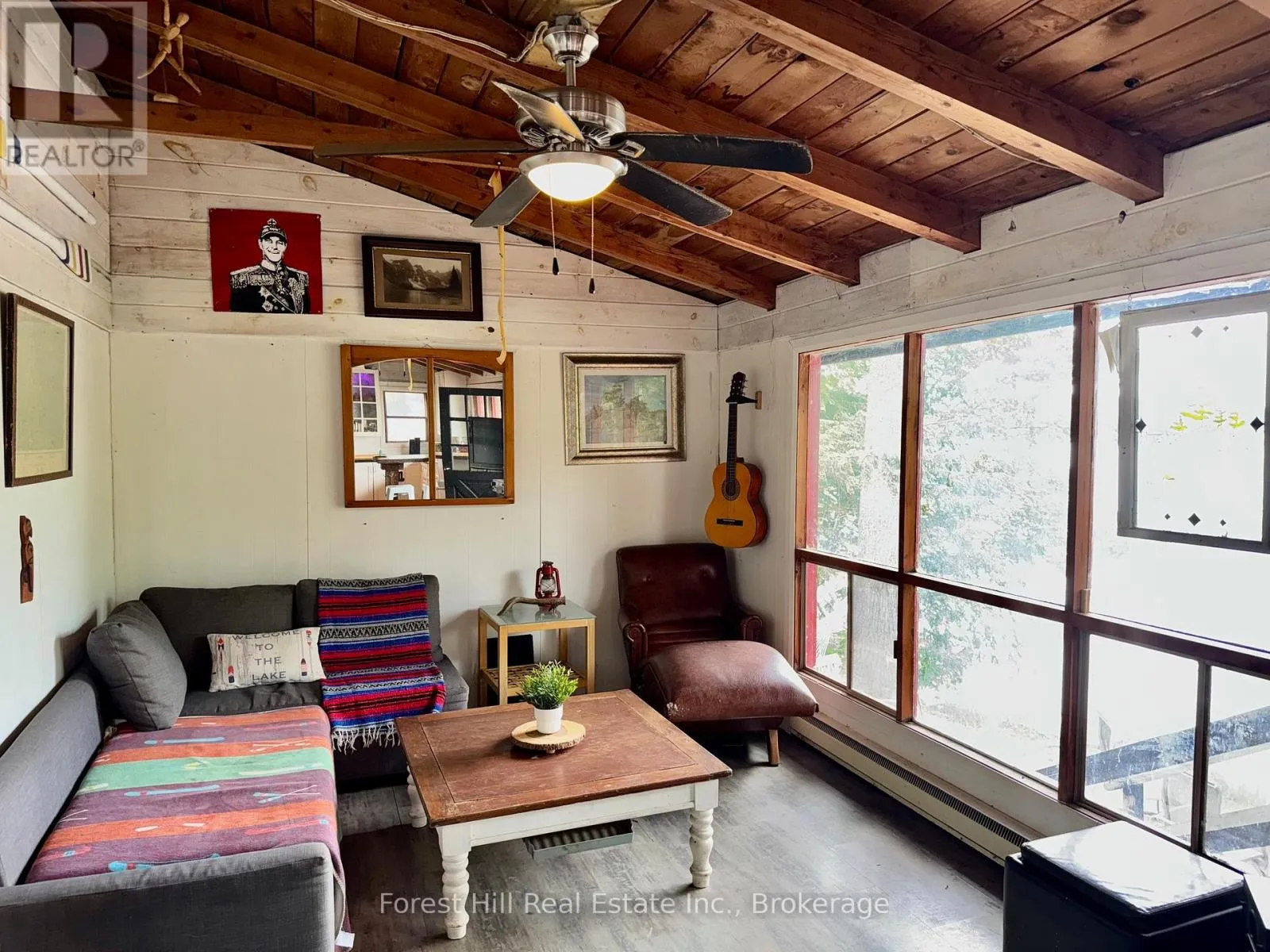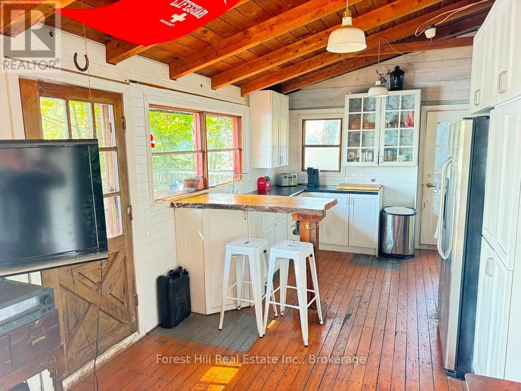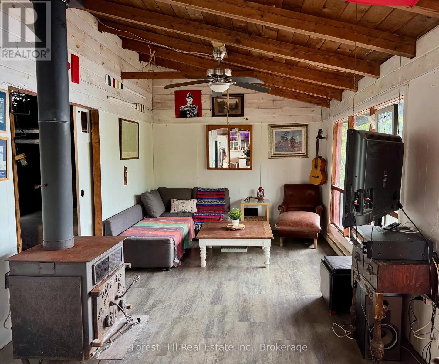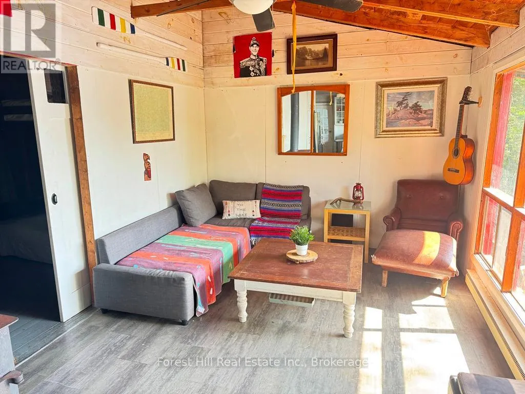 Cross Streets: Highway 35 & Tock Lane. ** Directions: Highway 35, Tock Lane, Causeway Drive. Charming, rustic cabin that dates back to the early 1960's.The best aspects of this appealing property are the close proximity to the lake, tall mature white pines, smooth granite rock shore, sunrise view down the lake and a crown-owned island just off the shore to swim to and picnic on. As soon as one walks into the cabin, the wooden ceilings and beams, old pine floors and overall cottage country vibe will embrace you and compel you to stay. The wood stove warms the interior quickly and keep everyone cozy. Astounding views of nature pour in through the windows. Open concept between the living spaces within, which keeps family and friends connected. The walkout to a sprawling sundeck is special with an unparalleled view like no other! The rocky shore allows swimmers to wade in and yet there's deep water, ideal for docking water vessels along a great floating dock. This lake has a real family vibe to it. Explore some crown land trails for snowmobiling, snowshoeing, ATVing or mountain biking and so much more! The calls of loons, owls and wolves...together with enjoying star-lit dark skies by the firepit are FREE! Fishing in Otter Lake is awesome. E.B White was known to enjoy this special lake, decades ago, at a camp located at its east end. Come by and see why this lake appeals to so many! Located conveniently close to the enchanting town of Dorset, and yet only 2 1/2 hrs from Toronto. Start your memories here at this Algonquin~esque beauty! (id:27476)