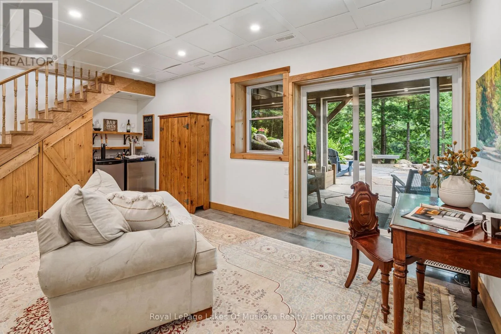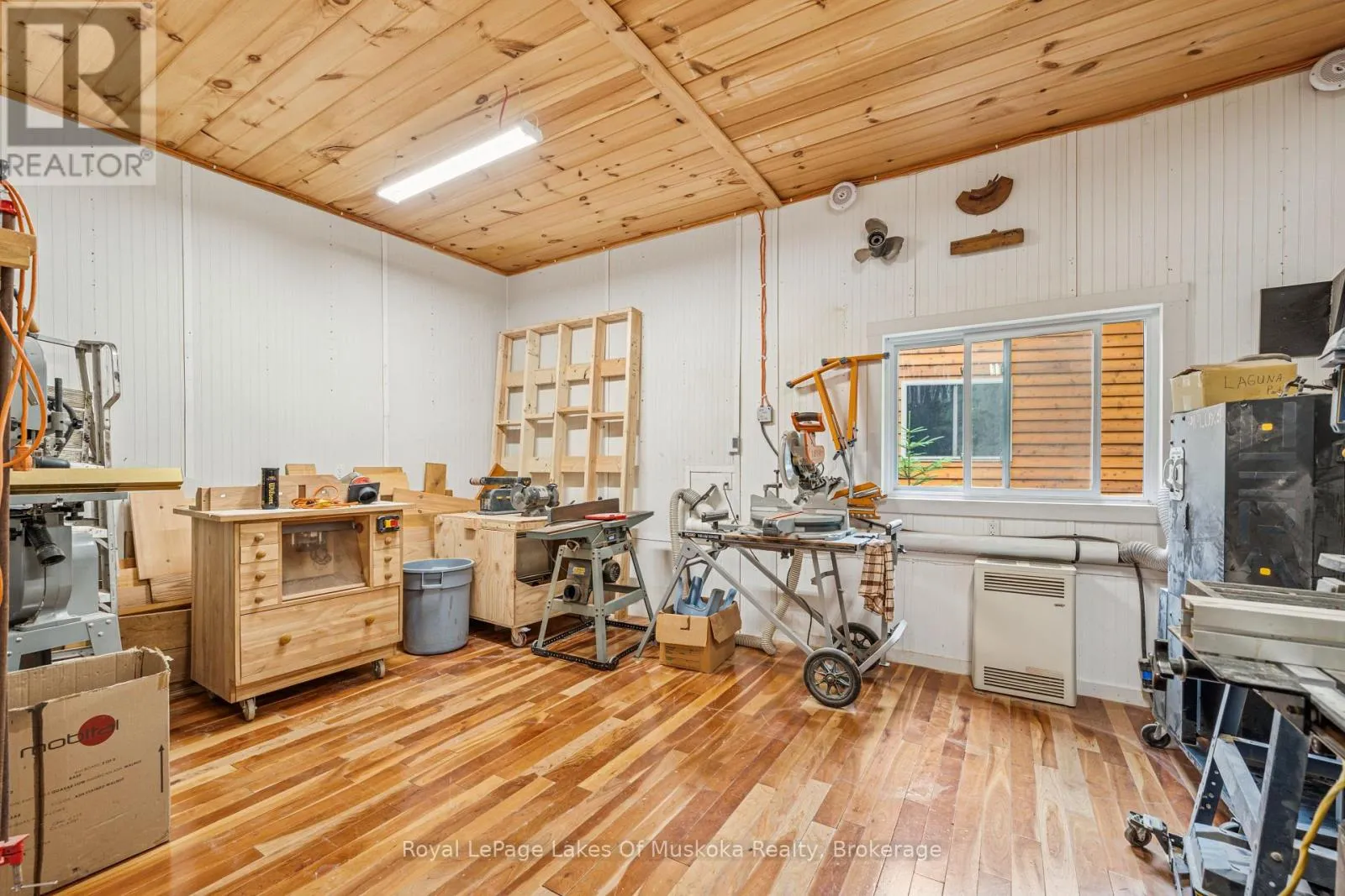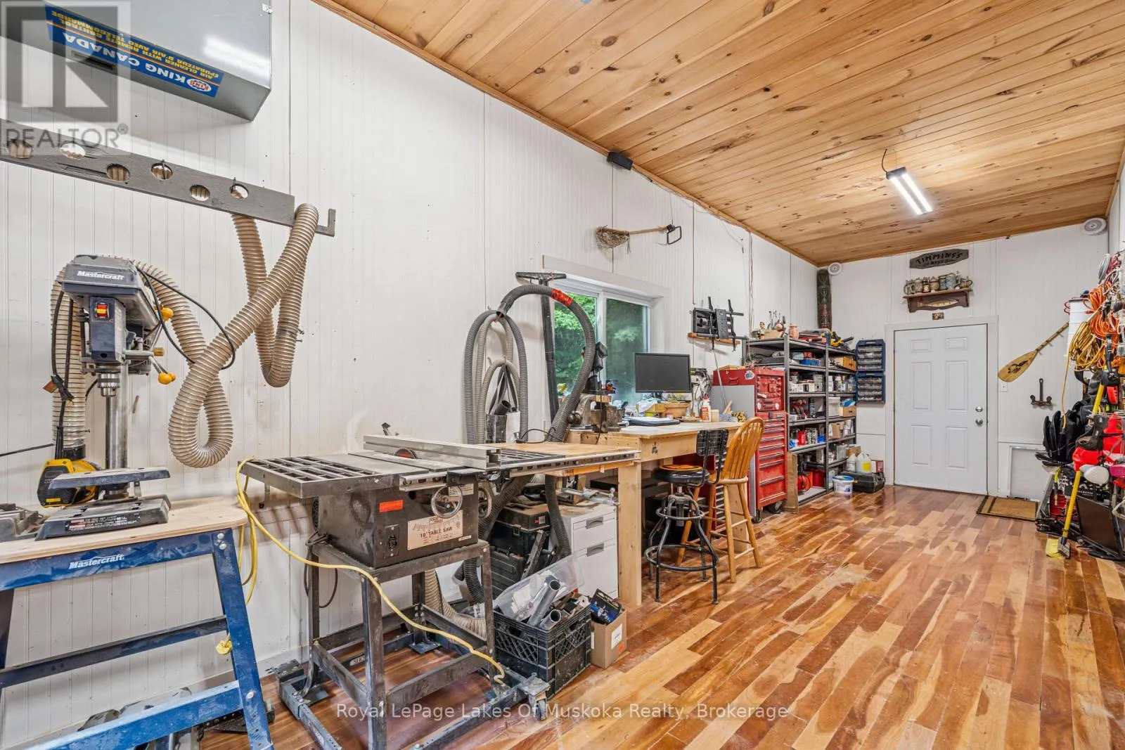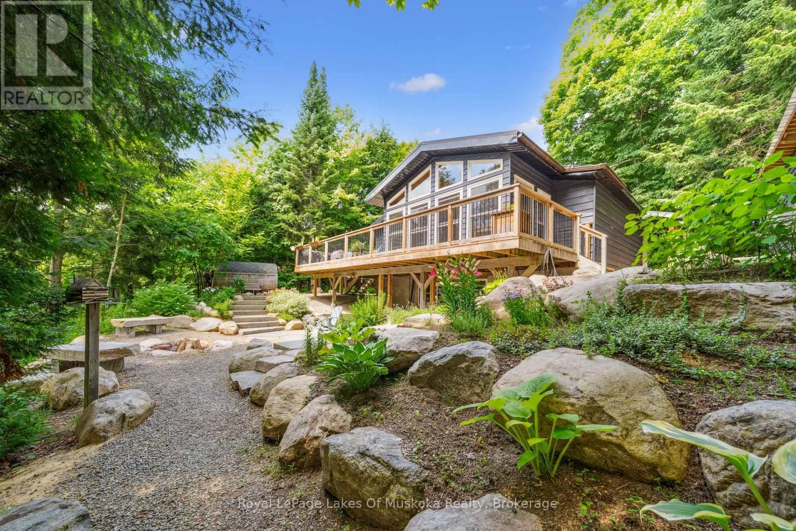 Cross Streets: Kawagama Lake Road/County Rd 8 and Wolf Circle. ** Directions: Hwy 35 to Kawagama Lake Road;Kawagama Lake Rd (AKA County Rd 8) to Wolf Circle to #1315. A peaceful year round retreat on a privately maintained road just 15 minutes from Dorset. This quiet, low traffic setting is ideal for walking, biking, and safe enjoyment by children and pets. The property offers exceptional privacy, with lake views across to Crown land and direct access to a 31+ acre private park-the Wolf Sanctuary-jointly owned by surrounding cottage owners. Ownership shares transfer with the property, providing wooded trails for walking and snowshoeing. Wolf Inlet remains calm even when the main lake is windy, making it perfect for paddling, swimming, and relaxed waterfront living. The cottage/home is bright and inviting, surrounded by mature trees that create a natural, sheltered feel. The main level features an open concept layout with two bedrooms, a full bath, and a spacious sunroom that can serve as additional dining or lounging space. The lower level primary bedroom offers excellent privacy and walkout access to the gardens and lake. The landscaped areas blend seamlessly with the natural tree cover, maintaining strong privacy throughout the property. A large double garage includes a workshop, fitness area, and a loft currently used as a private office-ideal for remote work. Mechanical systems are solid, with a drilled well, forced air propane furnace, airtight woodstove, gas fireplace in the primary bedroom, and a fully automatic 17 kW Generac generator. At the shoreline, enjoy quality docking with both shallow entry and deeper water for secure boat mooring. A rare combination of privacy, community, and year round comfort on beautiful Kawagama Lake. (id:27476)