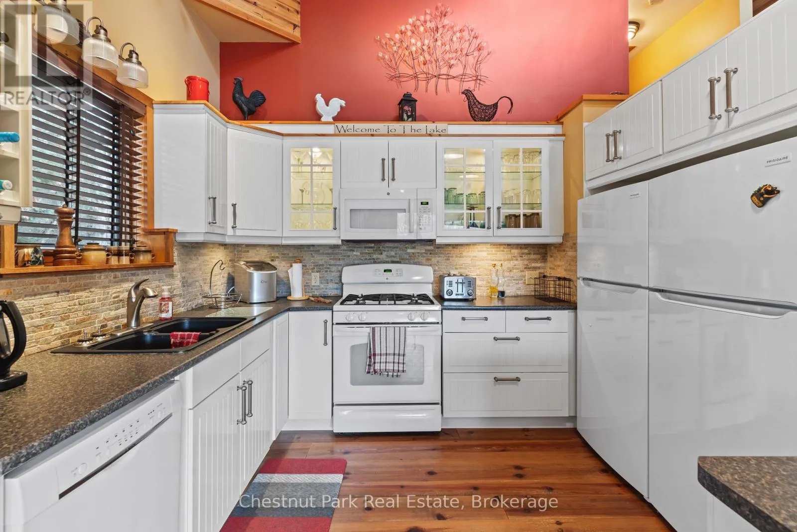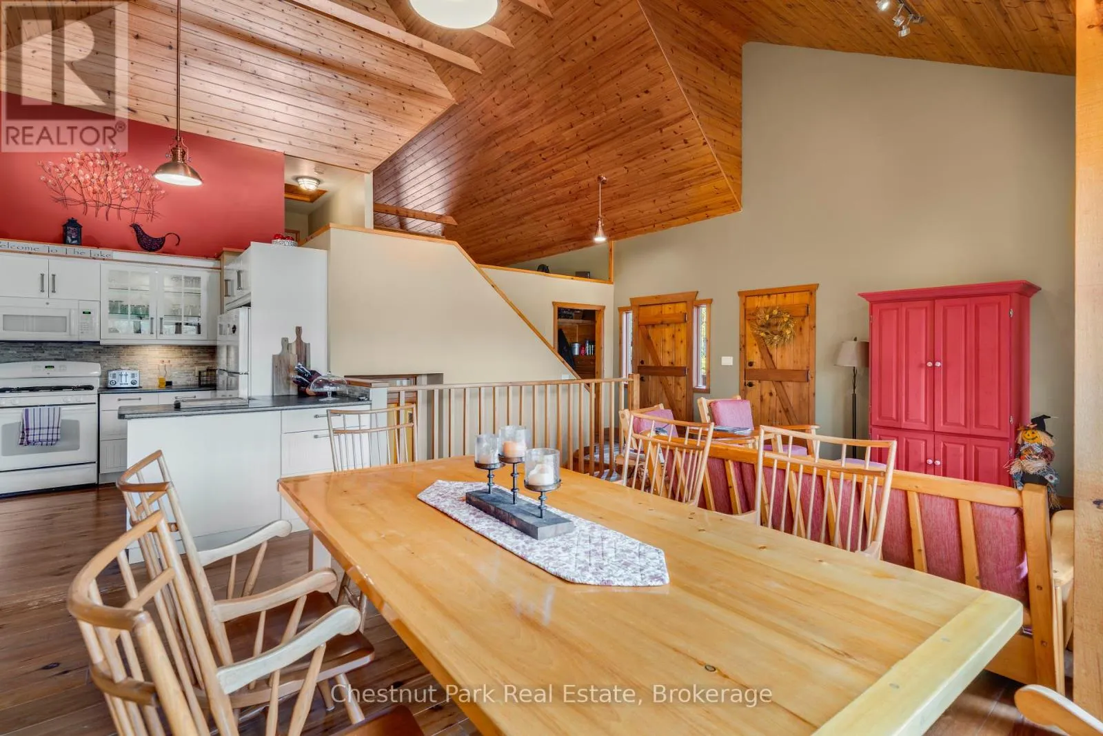Cross Streets: North Shore Road. ** Directions: Stanhope Airport Rd to North Shore Rd to Canopy Ln to 1109. Welcome to this immaculate 3-bedroom, 2-bathroom home or cottage on beautiful Maple Lake. This fully winterized, 2,100+ sq. ft. property perfectly blends modern comfort with classic cottage charm.Step inside to an open-concept main floor featuring warm wood accents throughout the living, dining, and kitchen areas, with large windows framing stunning lake views. A 3-season screened porch and wrap-around deck provide plenty of space for relaxing or entertaining by the water, while the floor-to-ceiling stone woodstove creates the perfect spot to cozy up during the winter months.Upstairs, you'll find two spacious bedrooms, a full bathroom, and a cozy TV/sitting area, an ideal retreat for family or guests. The finished lower level offers even more living space, including a comfortable family room, third bedroom, and a newly finished bathroom complete with a wet/dry sauna for ultimate relaxation.Boasting 150 feet of frontage on Maple Lake, this property is ideally positioned for endless boating, swimming, and fishing adventures across the three-lake chain. Outside, enjoy a level lot with plenty of space for yard games or family gatherings, southwest exposure, and incredible privacy. The maintenance-free docking system with 6-7 feet of water depth off the end ensures easy lake access all season long.Meticulously maintained and truly move-in ready, simply arrive and start enjoying the lakefront lifestyle you've been dreaming of. (id:27476)