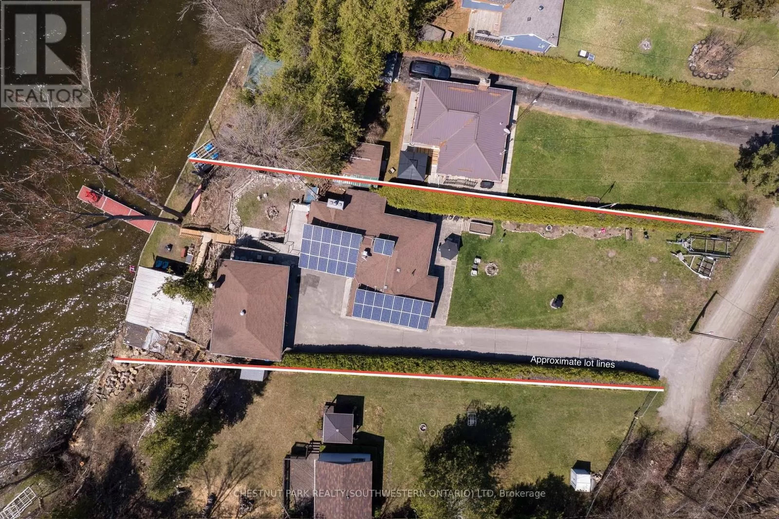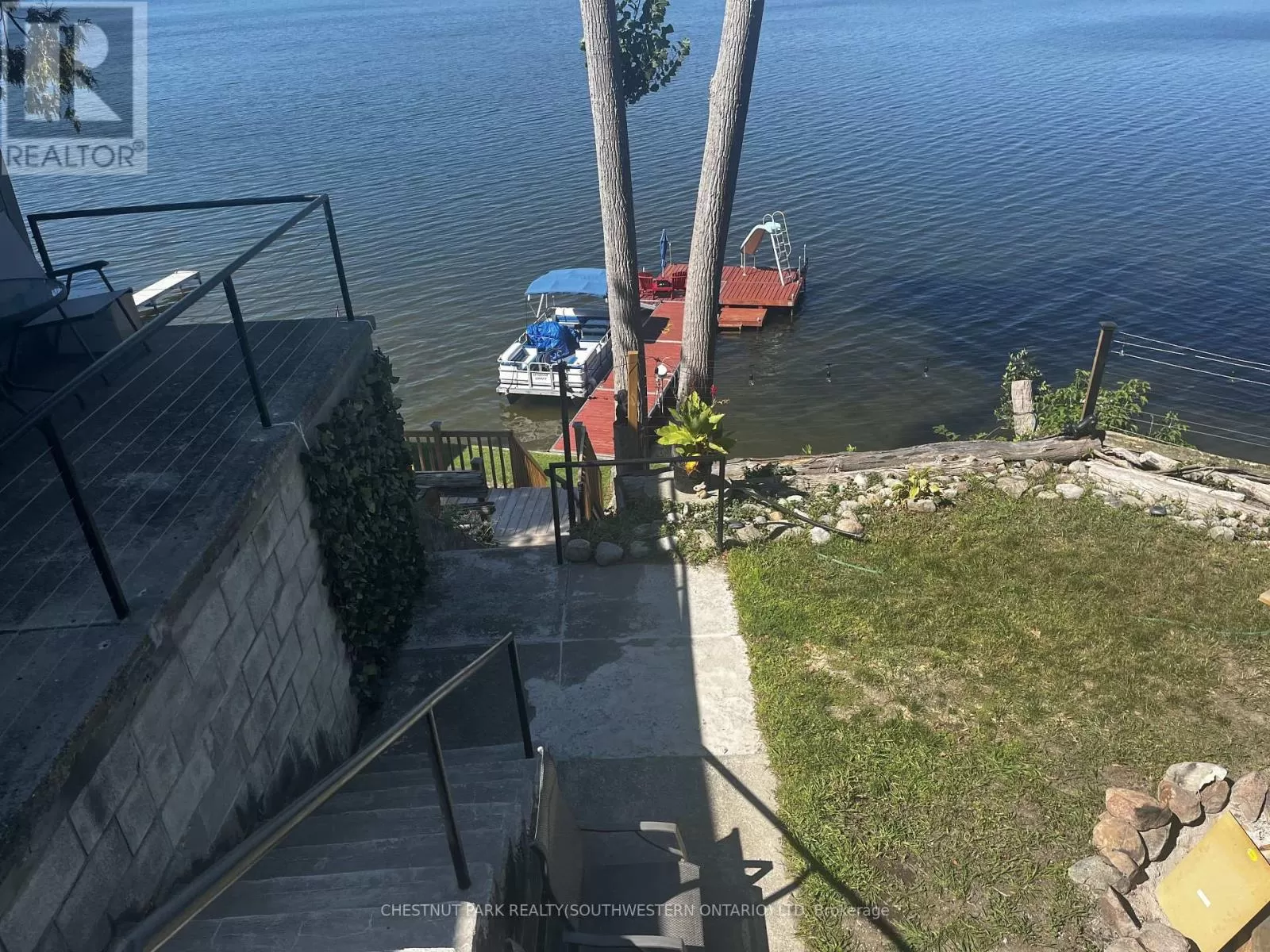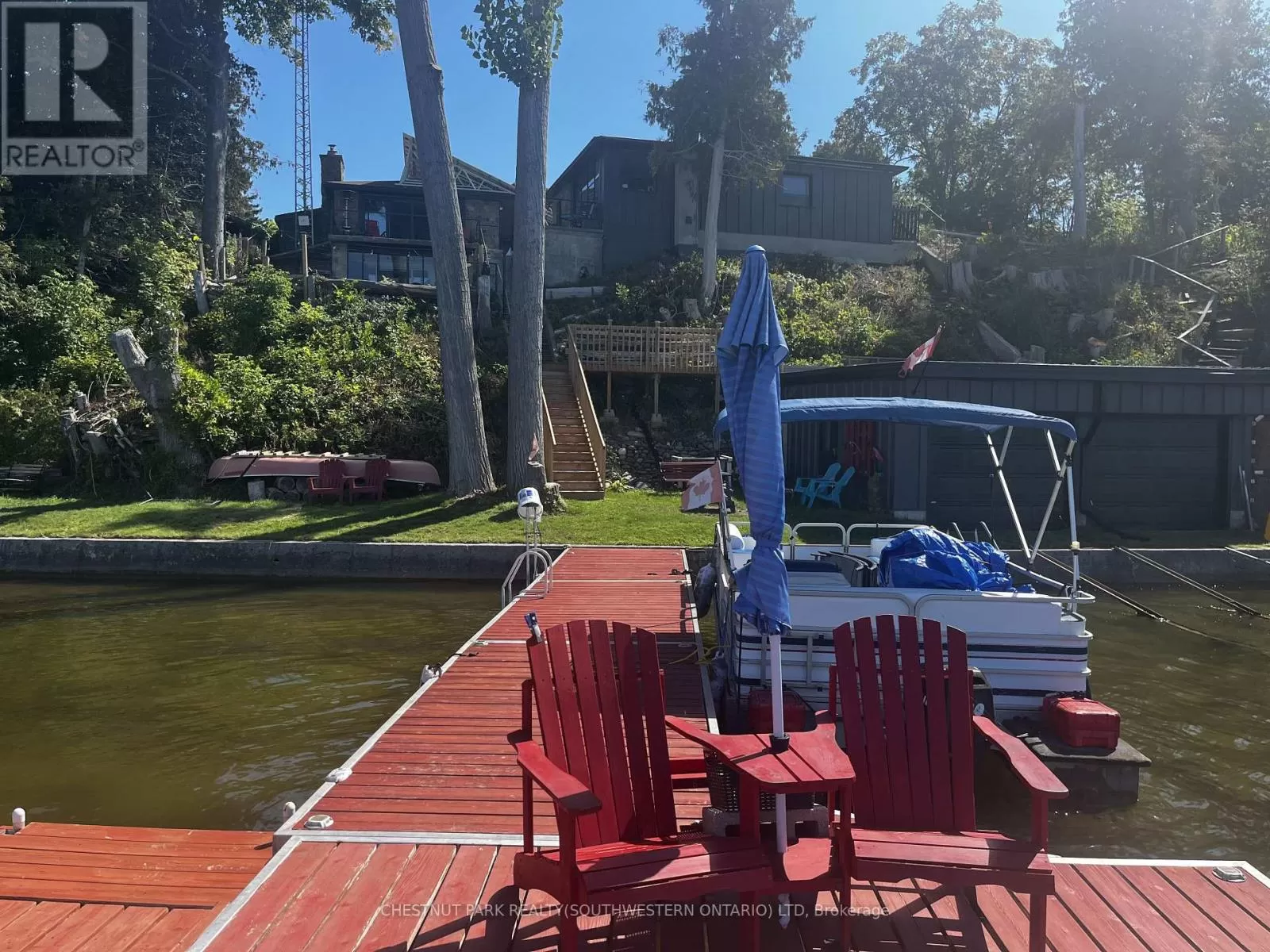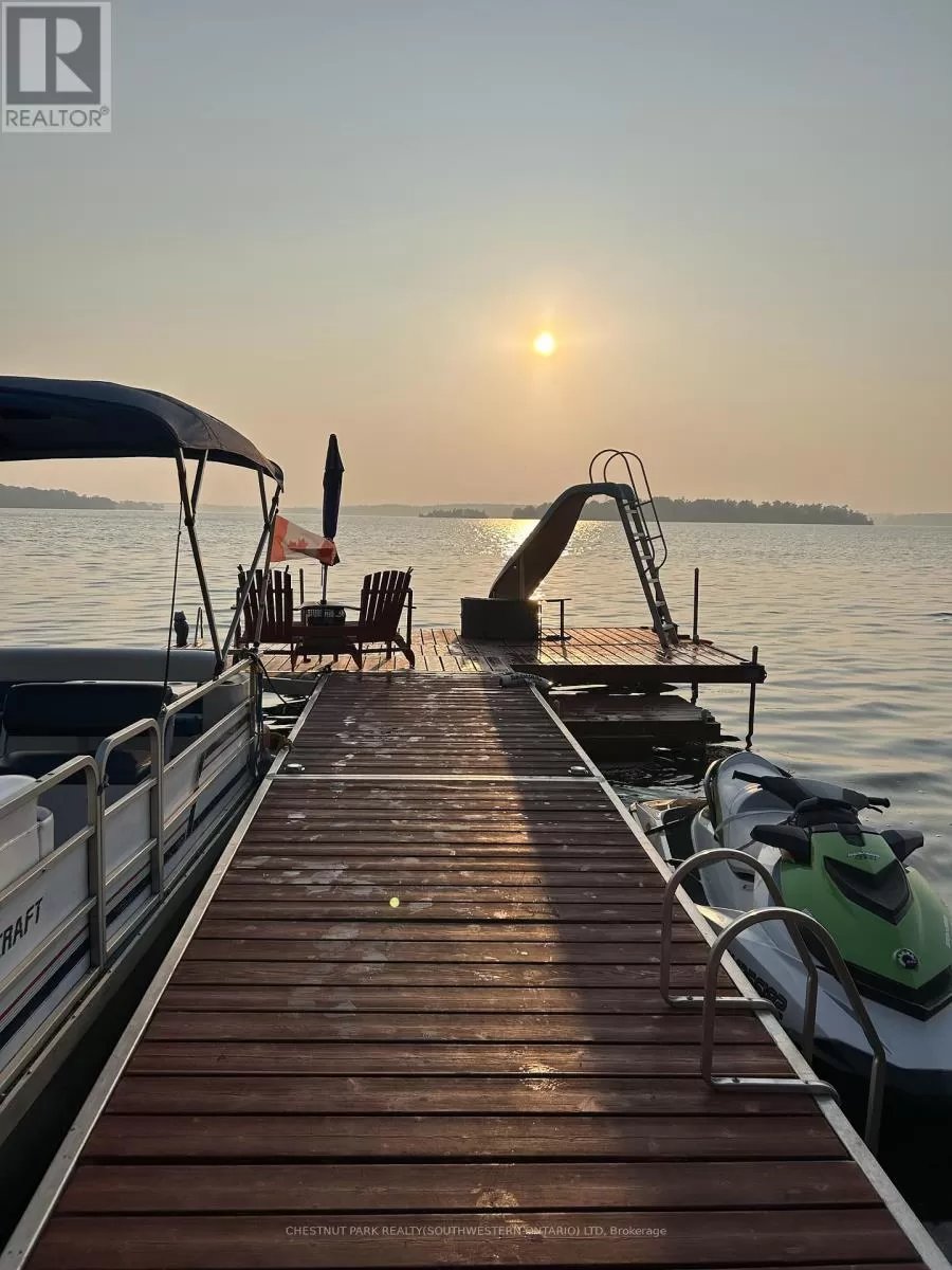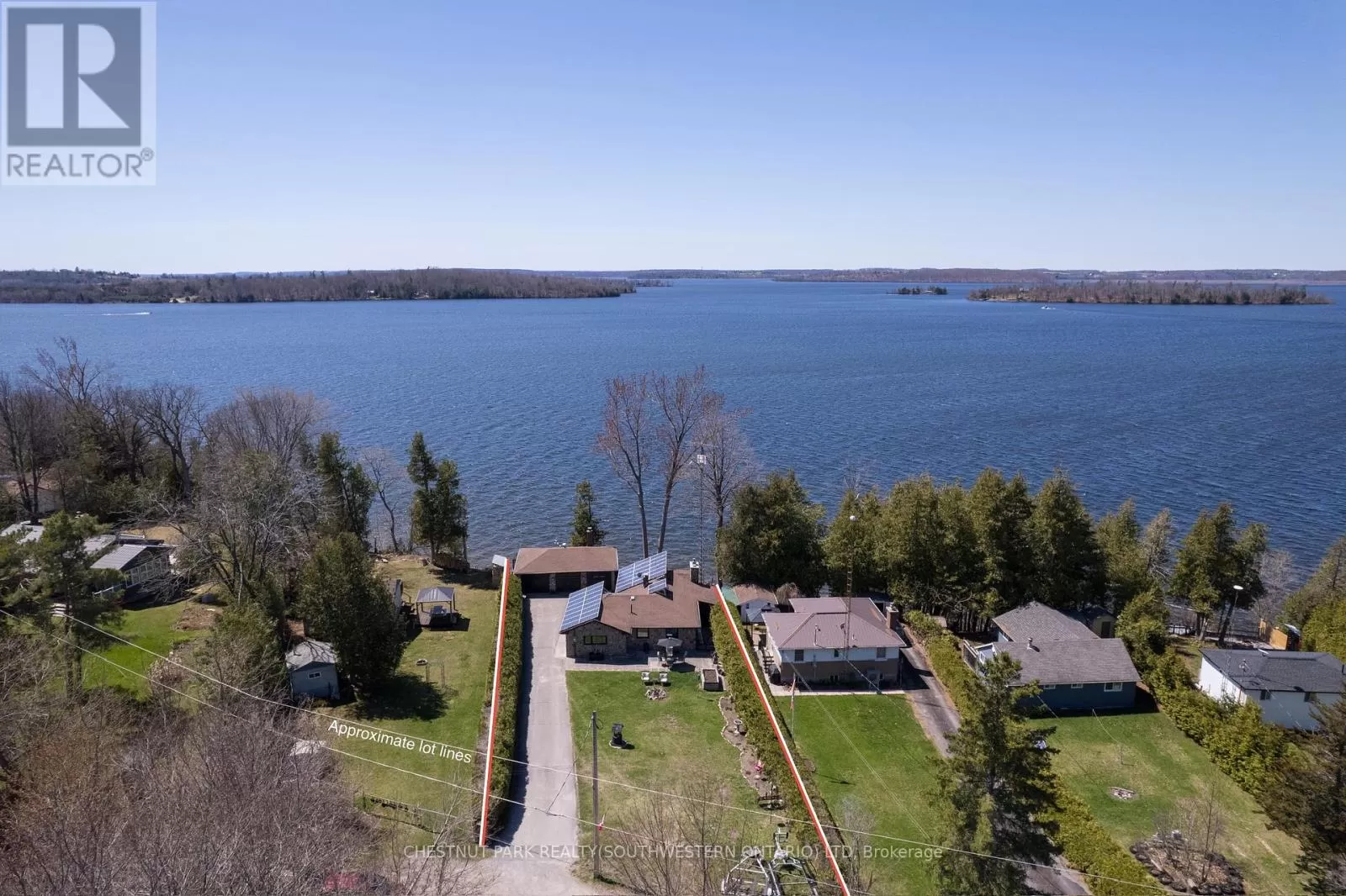 Cross Streets: Robins Road. ** Directions: Turn left on Rolling Banks Road, stay to the right and follow around going west to number 41B on the waterfront side. Your Waterfront Escape Awaits! Nestled on the serene south shores of Rice Lake, this property offers 75 feet of sparkling, west-facing waterfront - the perfect backdrop for unforgettable sunsets and year-round relaxation. Whether you're searching for a permanent residence or a four-season cottage getaway, this beautifully updated stone bungalow has it all. Inside, you'll find 3+1 bedrooms and 2 full bathrooms, including a finished walkout basement complete with a wood burning fireplace, sunroom and spacious rec room ideal for hosting family and friends. Enjoy the convenience of main-floor laundry, a brand-new kitchen with appliances (2024), and extensive updates including new windows, doors, soffit, fascia, and eavestroughs (2023). Efficient and comfortable living is ensured with three heat pumps and UV water filtration (2023). Step outside and explore the meticulously maintained grounds. A detached 3-car garage with a wood-burning fireplace offers extra storage or a great workshop space, while two fire pits set the scene for cozy summer nights under the stars. Water enthusiasts will appreciate the dry double-slip boathouse equipped with rails, electric winches, and cables, plus a 50' aluminum Ritley dock system featuring a swim ladder and sandy/rocky shallow entry into the clear waters. A concrete seawall provides long-term shoreline protection. Eco-conscious buyers will love the owned 10 KW solar panel system, supplying power directly to the home and R60 attic insulation. Located at the quiet end of a dead-end road, this once in a lifetime opportunity promises peace, privacy, and the ultimate waterfront lifestyle. (id:27476)