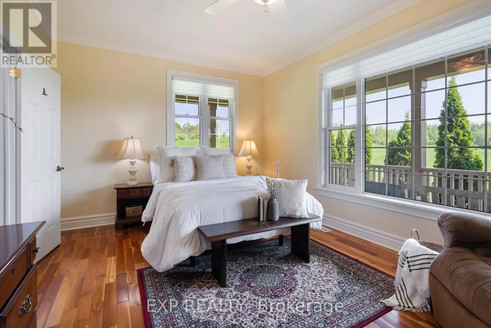 Cross Streets: Cty. Rd. 45. ** Directions: From Hwy 401, head north on Cty. Rd. 45 until you reach Community Centre Rd. Turn right and follow until you reach the property. Welcome to this beautifully maintained 3+2 bedroom, 5 bathroom bungalow nestled in the rolling hills of Baltimore. Set on a picturesque lot with breathtaking countryside views, this spacious home offers the perfect blend of comfort, functionality, and peaceful rural living. The main floor includes an inviting semi-open-concept living and dining space, a spacious kitchen with a central island, and large windows that showcase the surrounding landscape. A dedicated family room, sunroom, and multiple walkouts provide seamless indoor-outdoor flow. The primary suite features a walk-in closet and a spa-like, accessible-friendly ensuite, while two additional bedrooms with adjoining bathrooms complete the main level. A private elevator connects the main floor to the fully finished lower level, offering easy access to two more bedrooms, a large recreation room, a living room area, storage rooms, and separate entrances ideal for extended family, guests, or future in-law suite potential. Additional highlights include a massive garage/workshop, main-floor laundry, and abundant storage throughout. Located just minutes from Cobourg, Highway 401, schools, and amenities, this one-of-a-kind property is a rare opportunity to enjoy spacious country living with the convenience of town nearby. (id:27476)