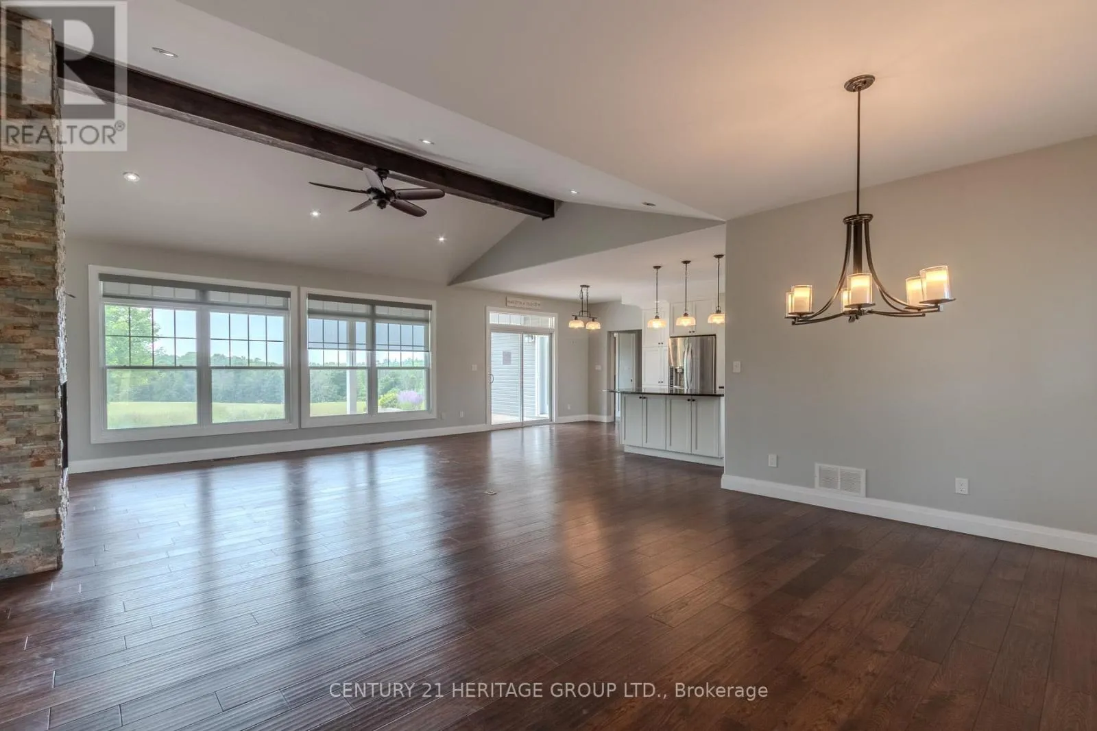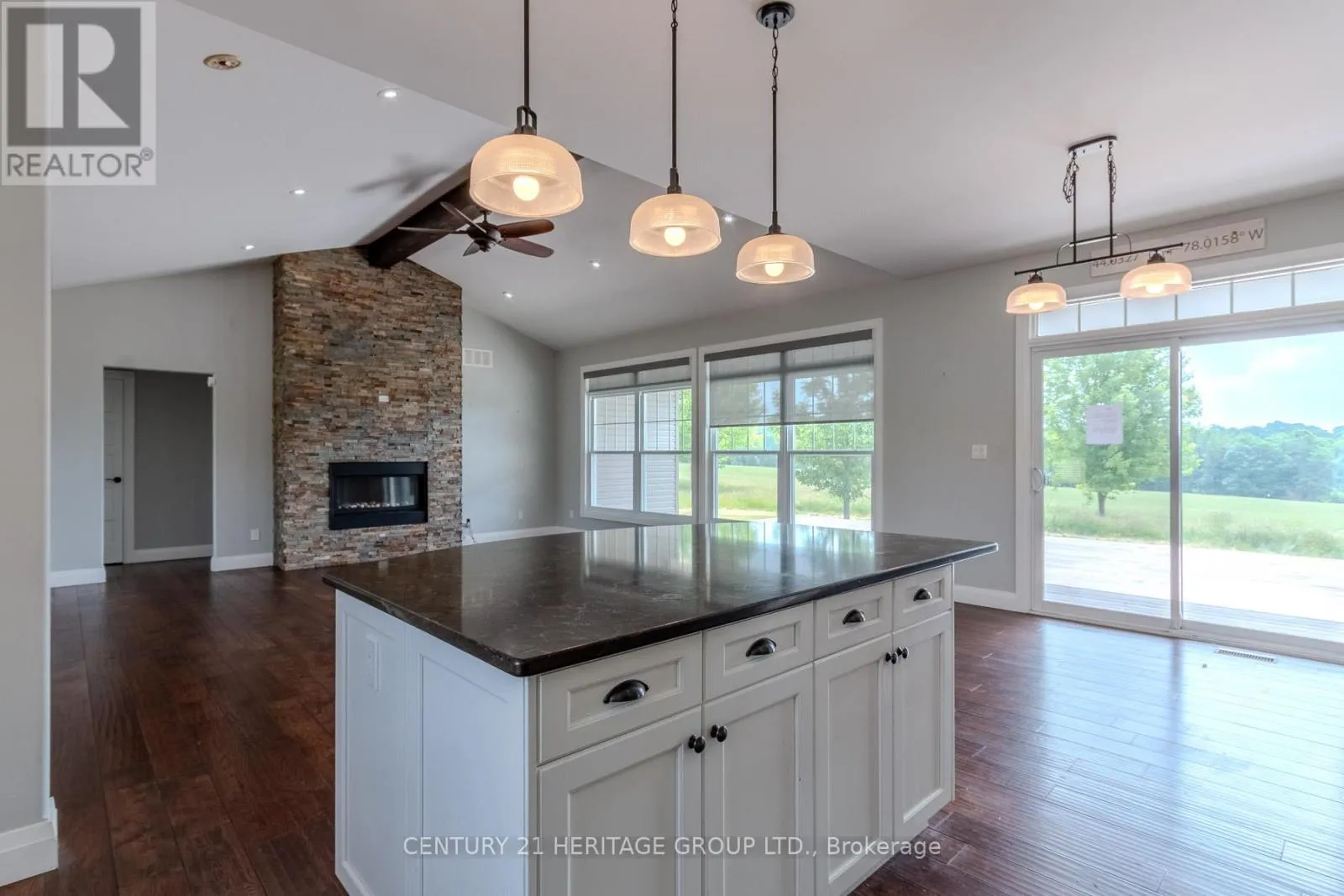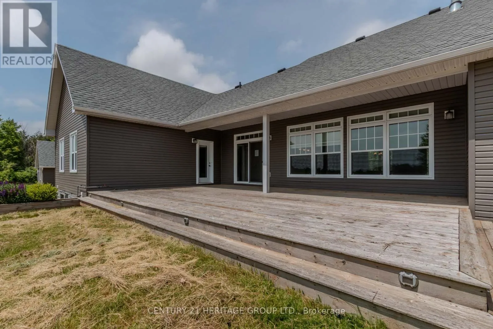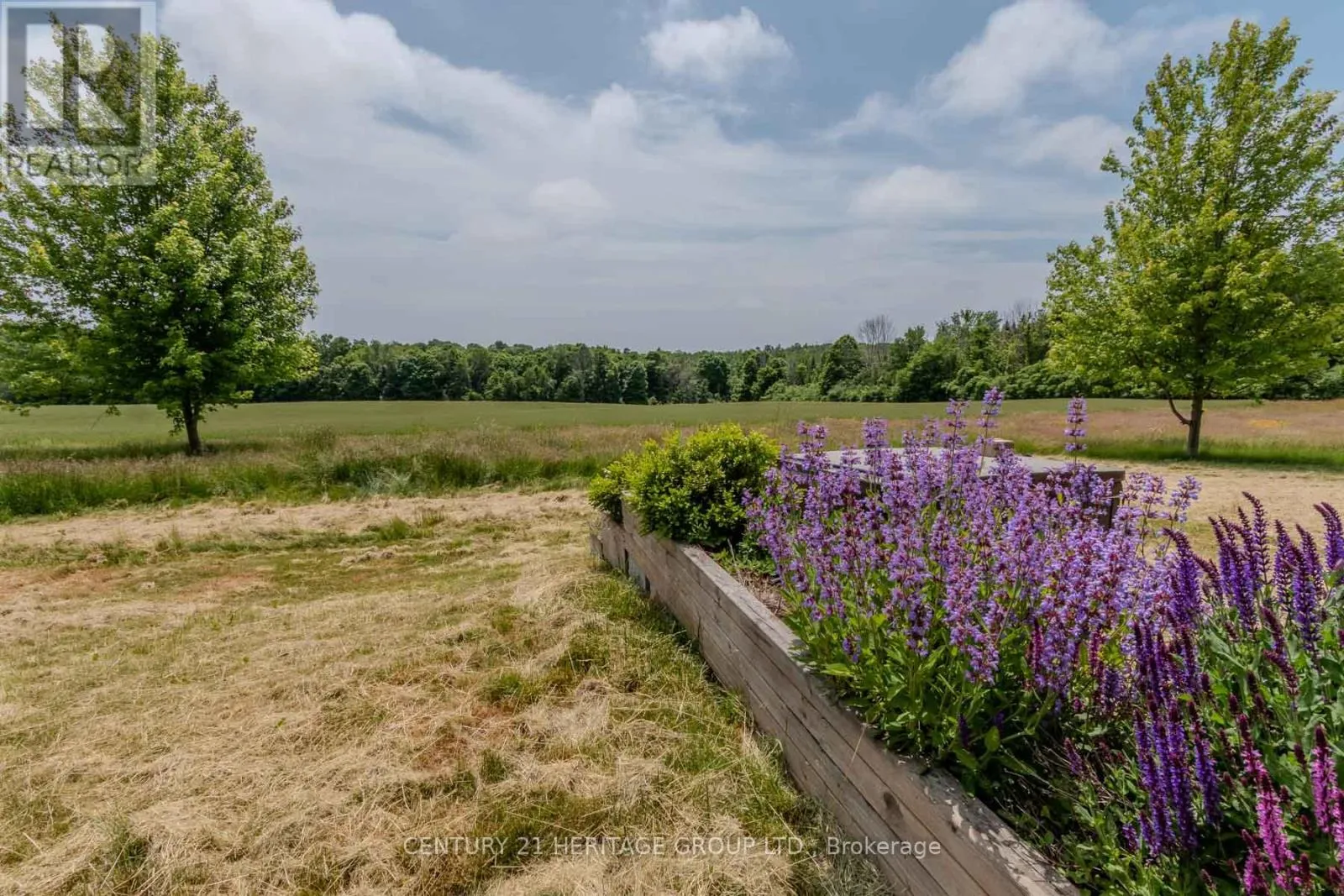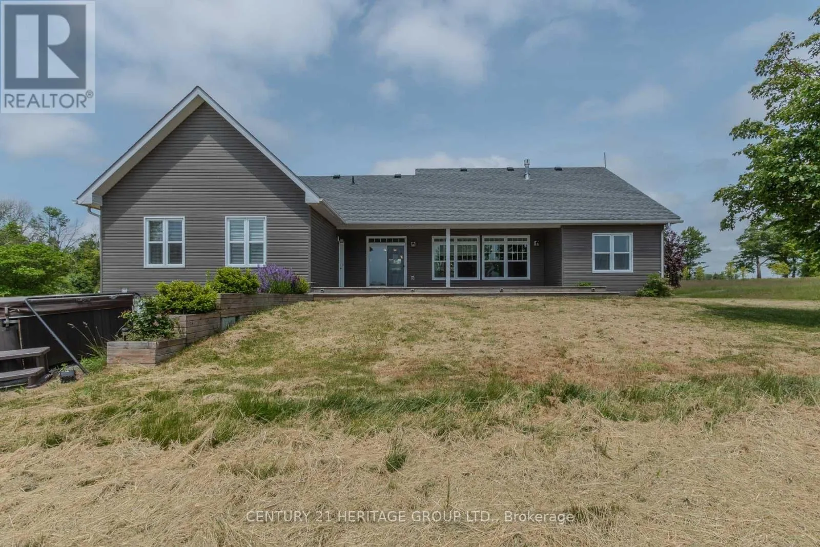 Cross Streets: 401 & 23 (north of Grafton). ** Directions: about 1km north from 401 on 23/Lyle St. East on Boyle about 500m. Property on South Side. Address marker on north side. Stunning bungalow on over 7.5 acres of peaceful, private countryside, just 5 minutes to Grafton and Hwy 401. This beautifully maintained home offers incredible views of forests and farm fields, with southern exposure filling the home with tons of natural light. The open-concept layout features a split-bedroom floor plan, hardwood and tile flooring throughout the main level, and a vaulted ceiling with wood beam accent in the living room. Enjoy the cozy ambiance of a stone surround propane fireplace and expansive windows framing the scenic landscape. The kitchen boasts a functional layout with a centre island and breakfast bar, stone countertops, crown molding, pendant lighting, and ample cabinetry and drawers for storage. The spacious primary suite includes a walk-in closet, luxurious 5pc ensuite, and a private walk-out to the deck. Main floor laundry with powder room and direct access to an attached 2-car garage adds convenience. A separate oversized 1-car garage provides extra storage or space for equipment. The bright lower level is mostly finished with large windows, an additional bedroom, 3pc bath, and flexible space for recreation, office, or hobbies. (id:27476)