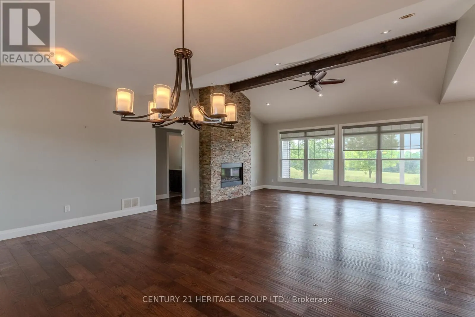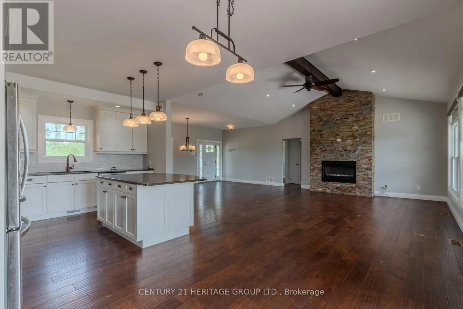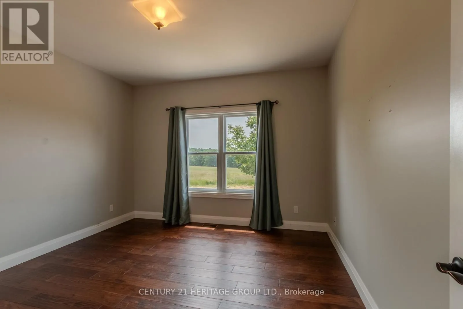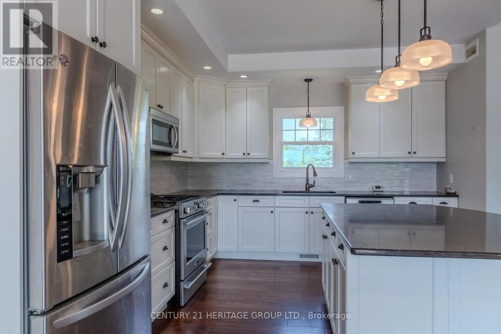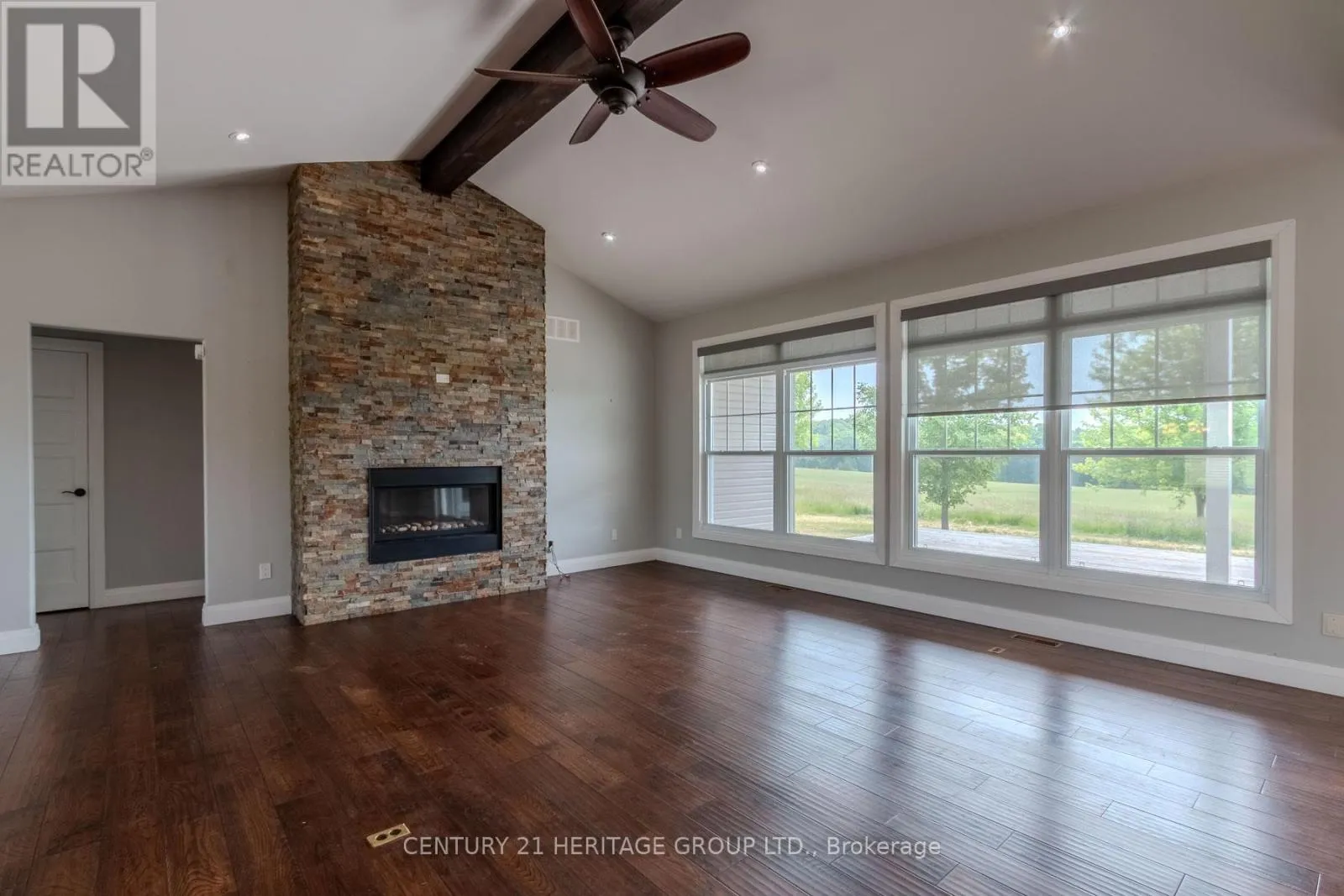 Cross Streets: 401 & 23 (north of Grafton). ** Directions: about 1km north from 401 on 23/Lyle St. East on Boyle about 500m. Property on South Side. Address marker on north side. Stunning bungalow on over 7.5 acres of peaceful, private countryside, just 5 minutes to Grafton and Hwy 401. This beautifully maintained home offers incredible views of forests and farm fields, with southern exposure filling the home with tons of natural light. The open-concept layout features a split-bedroom floor plan, hardwood and tile flooring throughout the main level, and a vaulted ceiling with wood beam accent in the living room. Enjoy the cozy ambiance of a stone surround propane fireplace and expansive windows framing the scenic landscape. The kitchen boasts a functional layout with a centre island and breakfast bar, stone countertops, crown molding, pendant lighting, and ample cabinetry and drawers for storage. The spacious primary suite includes a walk-in closet, luxurious 5pc ensuite, and a private walk-out to the deck. Main floor laundry with powder room and direct access to an attached 2-car garage adds convenience. A separate oversized 1-car garage provides extra storage or space for equipment. The bright lower level is mostly finished with large windows, an additional bedroom, 3pc bath, and flexible space for recreation, office, or hobbies. (id:27476)