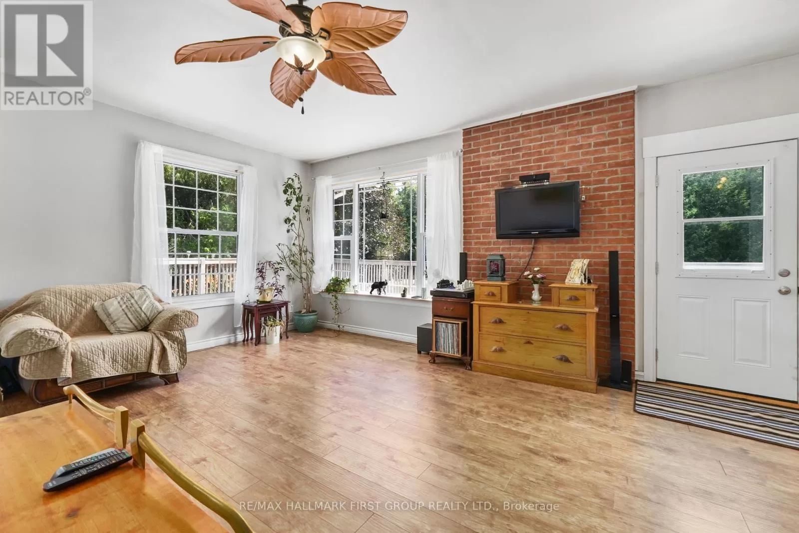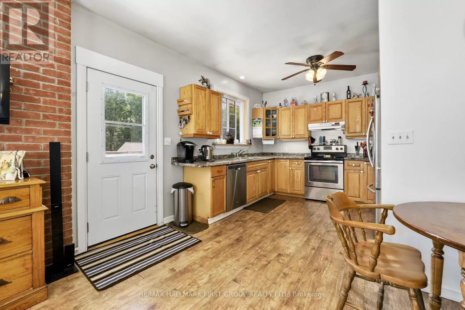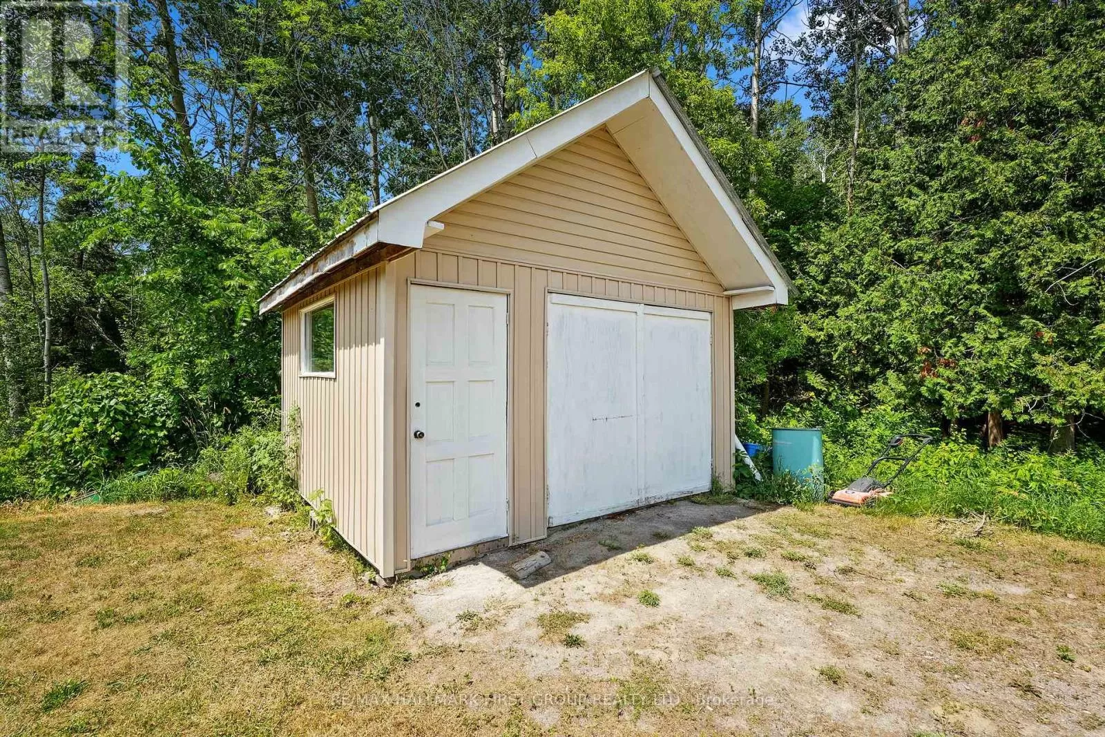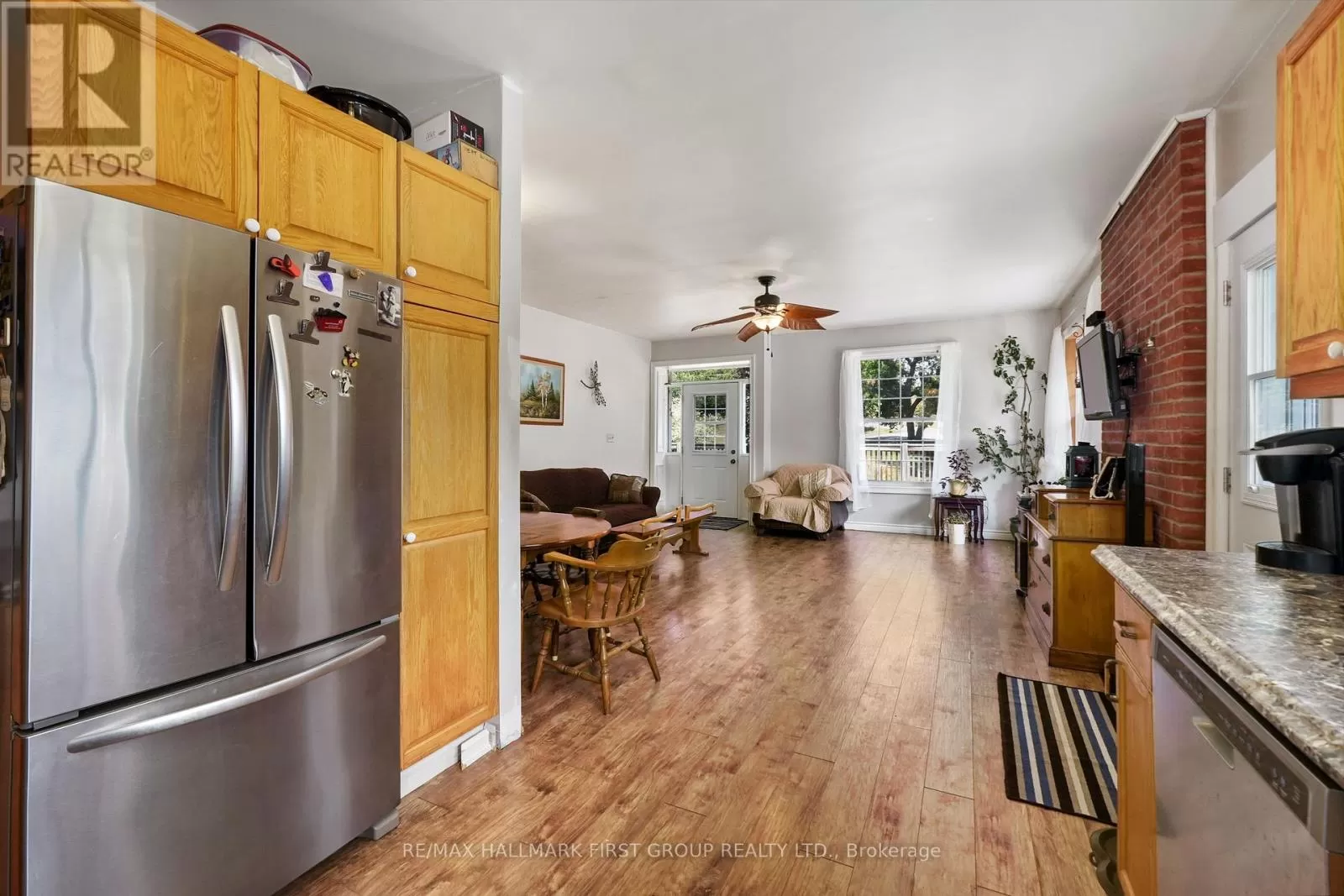 Cross Streets: 1st Line Rd & Packer Rd. ** Directions: CR45 heading North, Left onto Roseneath Landing Rd, Left onto 1st Line Rd. This charming bungalow sits on over an acre, just minutes from Rice Lake, and offers more than meets the eye. It features a large shop ideal for a home-based business, workshop, or car enthusiast, as well as a potential in-law suite with a separate entrance. Inside, the bright and airy main floor boasts a carpet-free layout, featuring large windows, an exposed brick accent wall in the living room, and an open-concept design that is ideal for everyday living and entertaining. The kitchen is equipped with stainless steel appliances, ample cabinetry, and a convenient walkout, perfect for alfresco dining on warm evenings. A generous primary bedroom, a full bath, and laundry complete the main level. The lower level expands your living space with a sprawling rec room warmed by a wood stove, featuring a walkout to a covered patio, a games area, a bedroom, an office, and a bathroom, offering comfort and flexibility for family or guests. Outside, enjoy the serenity of a wraparound deck, mature trees, a garden space, and ample room for outdoor enjoyment. A large detached shop and a separate shed to keep lawn tools organized and out of sight. Peaceful and private, yet still within reach, this is a place to spread out, settle in, and make your own. (id:27476)