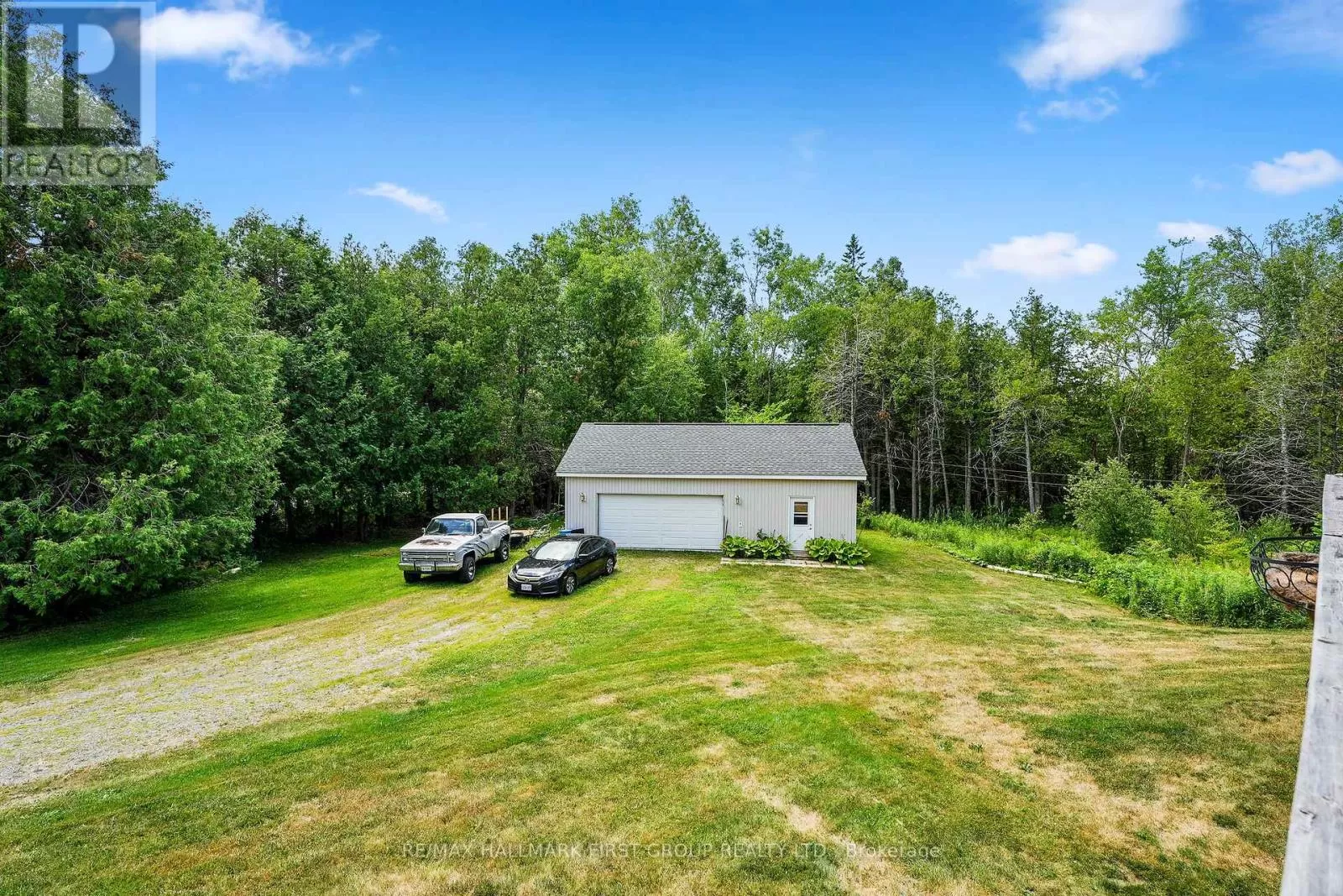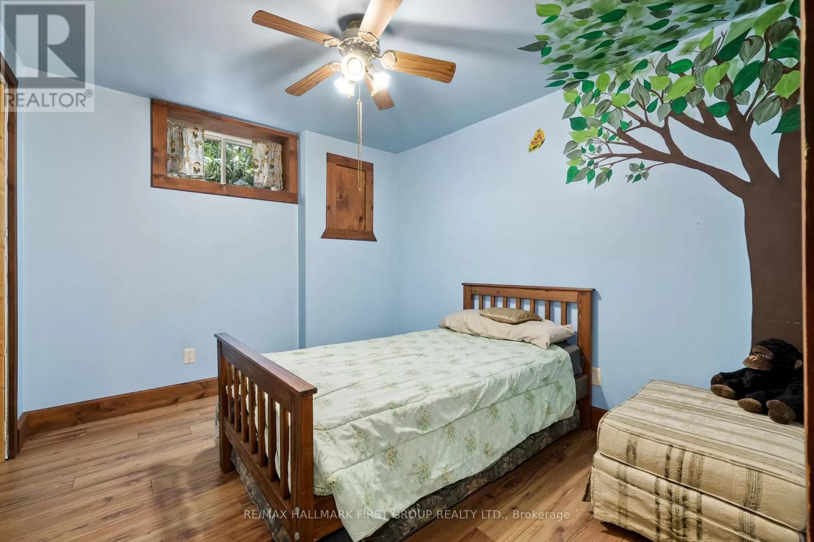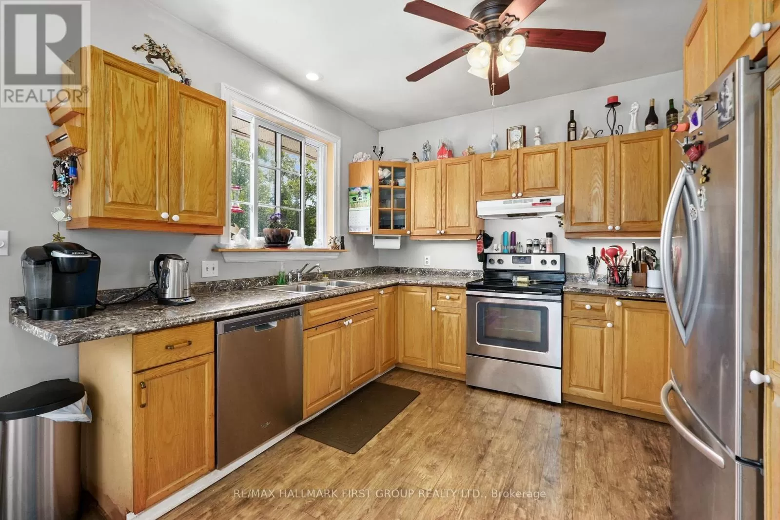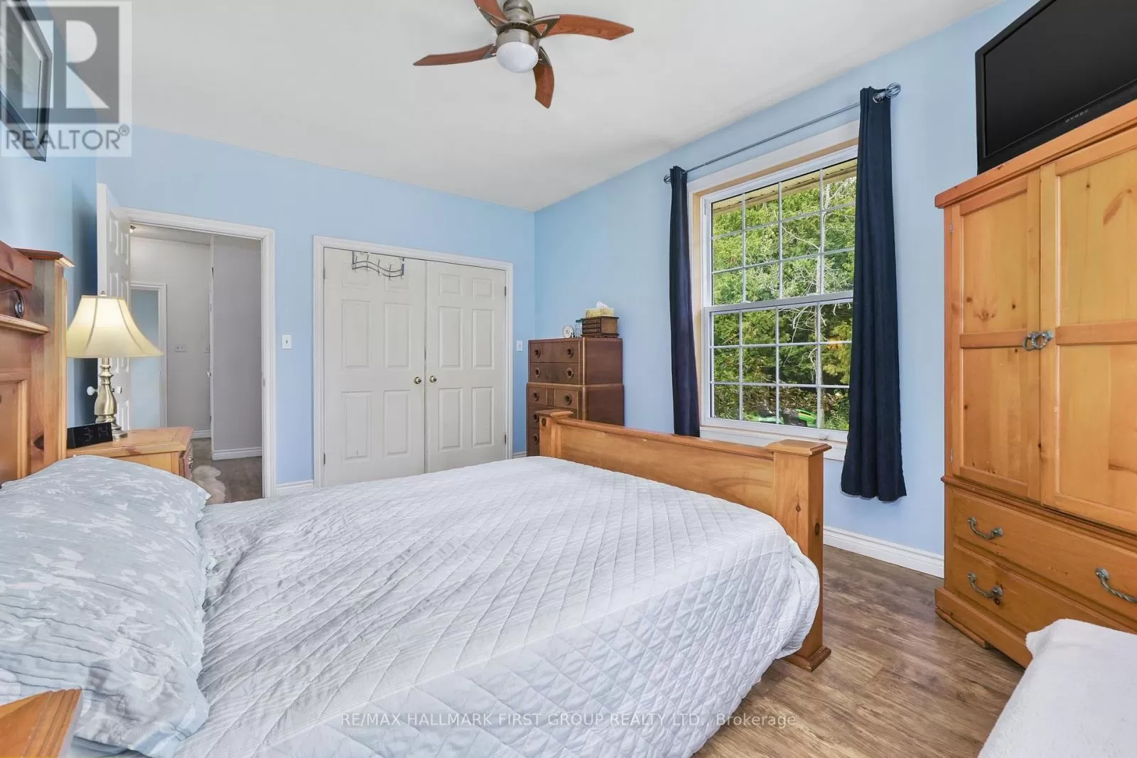 Cross Streets: 1st Line Rd & Packer Rd. ** Directions: CR45 heading North, Left onto Roseneath Landing Rd, Left onto 1st Line Rd. This charming bungalow sits on over an acre, just minutes from Rice Lake, and offers more than meets the eye. It features a large shop ideal for a home-based business, workshop, or car enthusiast, as well as a potential in-law suite with a separate entrance. Inside, the bright and airy main floor boasts a carpet-free layout, featuring large windows, an exposed brick accent wall in the living room, and an open-concept design that is ideal for everyday living and entertaining. The kitchen is equipped with stainless steel appliances, ample cabinetry, and a convenient walkout, perfect for alfresco dining on warm evenings. A generous primary bedroom, a full bath, and laundry complete the main level. The lower level expands your living space with a sprawling rec room warmed by a wood stove, featuring a walkout to a covered patio, a games area, a bedroom, an office, and a bathroom, offering comfort and flexibility for family or guests. Outside, enjoy the serenity of a wraparound deck, mature trees, a garden space, and ample room for outdoor enjoyment. A large detached shop and a separate shed to keep lawn tools organized and out of sight. Peaceful and private, yet still within reach, this is a place to spread out, settle in, and make your own. (id:27476)