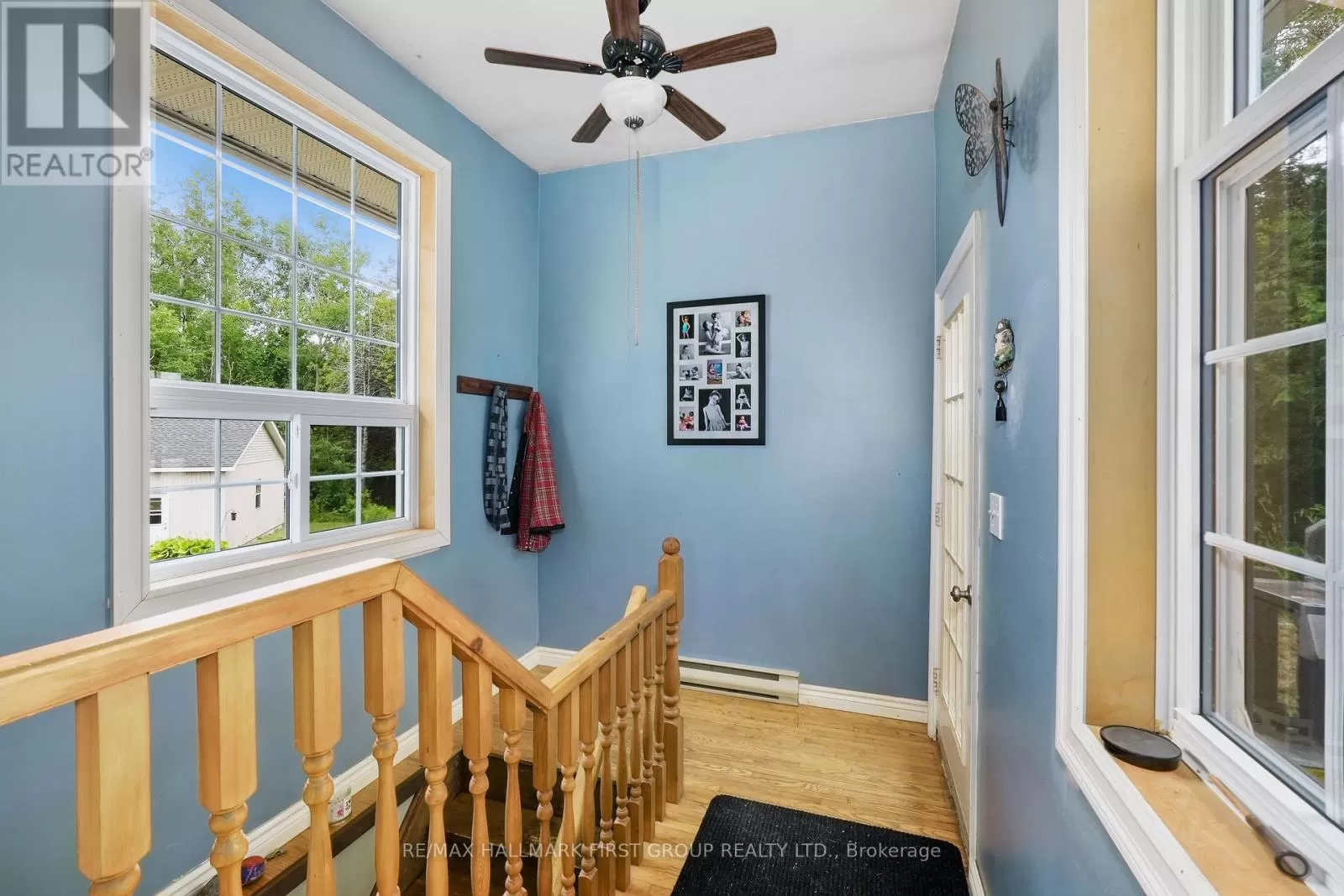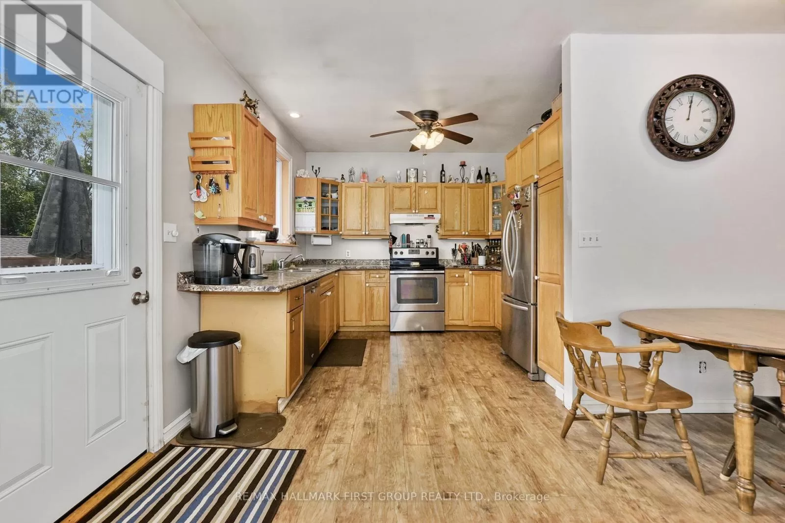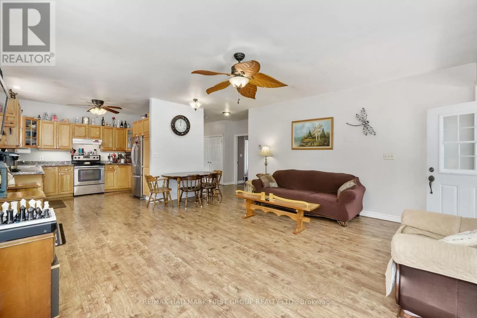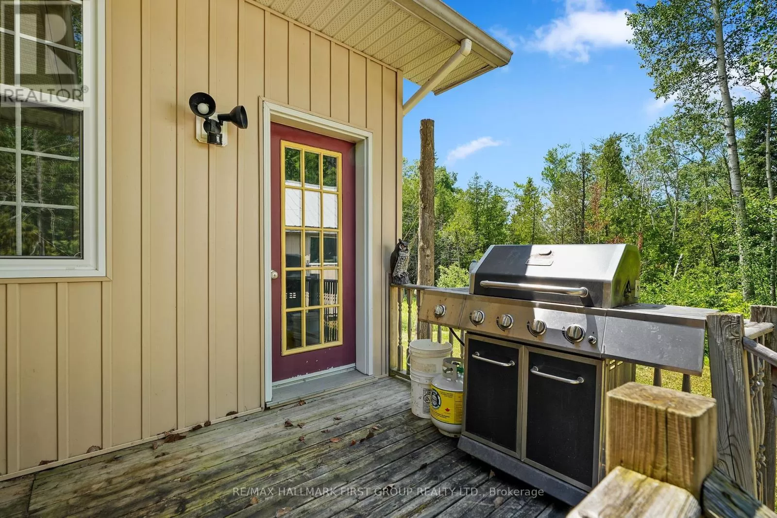 Cross Streets: 1st Line Rd & Packer Rd. ** Directions: CR45 heading North, Left onto Roseneath Landing Rd, Left onto 1st Line Rd. This charming bungalow sits on over an acre, just minutes from Rice Lake, and offers more than meets the eye. It features a large shop ideal for a home-based business, workshop, or car enthusiast, as well as a potential in-law suite with a separate entrance. Inside, the bright and airy main floor boasts a carpet-free layout, featuring large windows, an exposed brick accent wall in the living room, and an open-concept design that is ideal for everyday living and entertaining. The kitchen is equipped with stainless steel appliances, ample cabinetry, and a convenient walkout, perfect for alfresco dining on warm evenings. A generous primary bedroom, a full bath, and laundry complete the main level. The lower level expands your living space with a sprawling rec room warmed by a wood stove, featuring a walkout to a covered patio, a games area, a bedroom, an office, and a bathroom, offering comfort and flexibility for family or guests. Outside, enjoy the serenity of a wraparound deck, mature trees, a garden space, and ample room for outdoor enjoyment. A large detached shop and a separate shed to keep lawn tools organized and out of sight. Peaceful and private, yet still within reach, this is a place to spread out, settle in, and make your own. (id:27476)