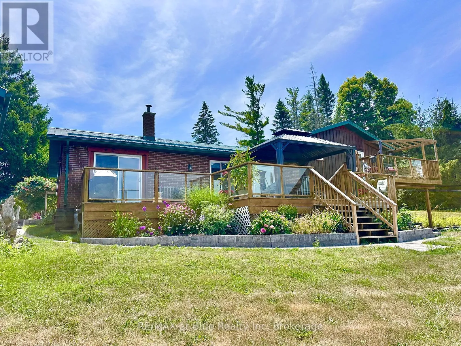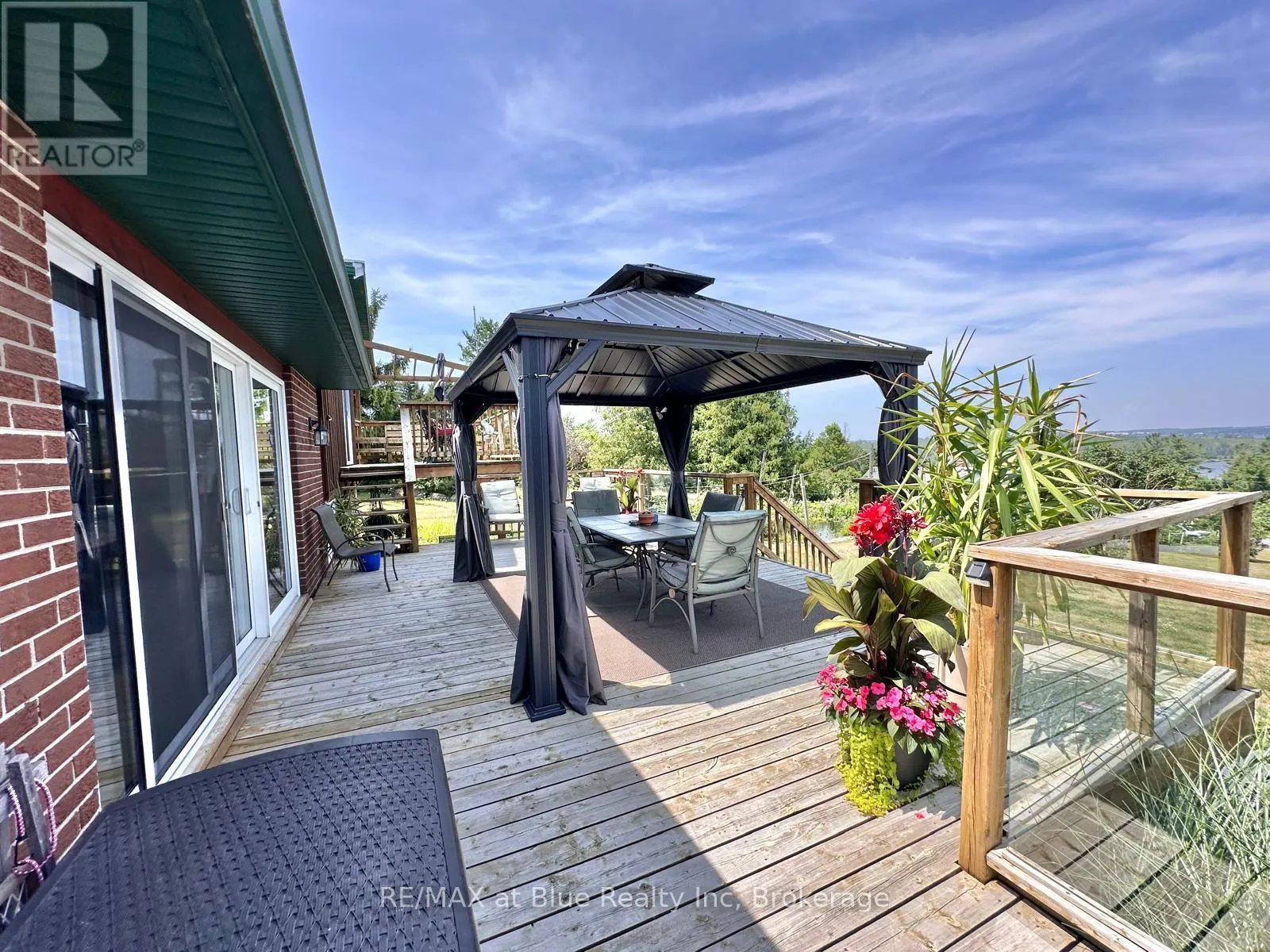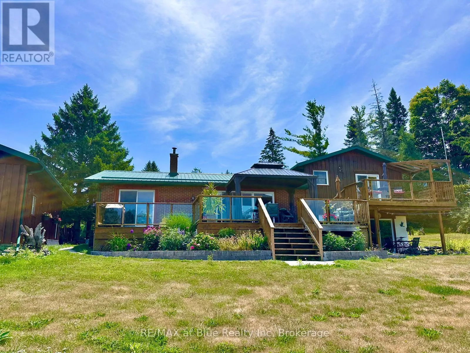 Cross Streets: Grandview and Sunset. ** Directions: 3rd Line Road to Grandview. Panoramic Lake Views, Deeded Waterfront, and Oversized Garage A Rare Find on Rice Lake. This charming large 2-bedroom, 1.5-bathroom home is nestled on a gently sloping 1-acre lot with incredible panoramic views of Rice Lake. Set up the hill to capture the scenery; the property includes fully owned lakefront access measuring 12 x 110, complete with private docking space and direct access to the Trent-Severn Waterway, ideal for boating, fishing, and enjoying the water all season long. This amazing property has 2 Koi fish ponds with over 100 fish and is also is great for pet owners, as it has been set up with an invisible fence system. Inside this great home the spacious eat-in kitchen is designed for the home chef, featuring ample prep space, stainless steel appliances, and room to entertain. The large living room is filled with natural light and warmed by a wood-burning fireplace, creating a cozy space for the colder months. The home features two well-sized bedrooms, including a primary suite with a 2-piece ensuite and a walkout to the upper deck, perfect for morning coffee with a lake view. Downstairs, the walkout rec room opens to the expansive yard, offering room to relax or gather with family and friends. You can even enjoy the scenery from the comfort of your bed, year-round. An oversized 32 x 32 detached garage offers loads of space for vehicles, a workshop, or adult toy storage. Two heating systems exist in the home with a heat pump-a/c unit for both air conditioning and heat that runs on electricity as well as a forced air propane furnace. Many great updates: a metal roof with a 40-year warranty installed 15 years ago, a new furnace (2023), newer heatpump-A/C unit (2018), and a hydro meter ready for a backup generator. Whether you're looking for a year-round home or a peaceful getaway, this property combines spectacular views, lakefront enjoyment, and everyday comfort in one beautiful package. (id:27476)