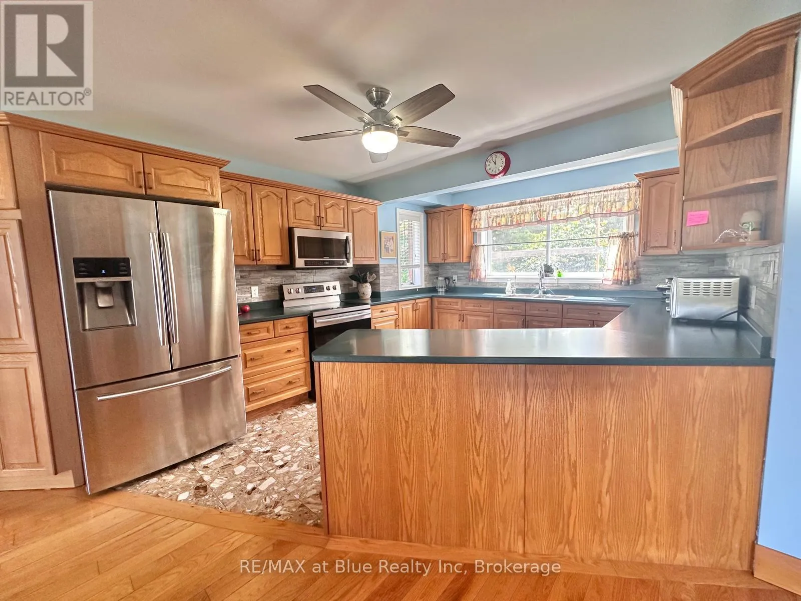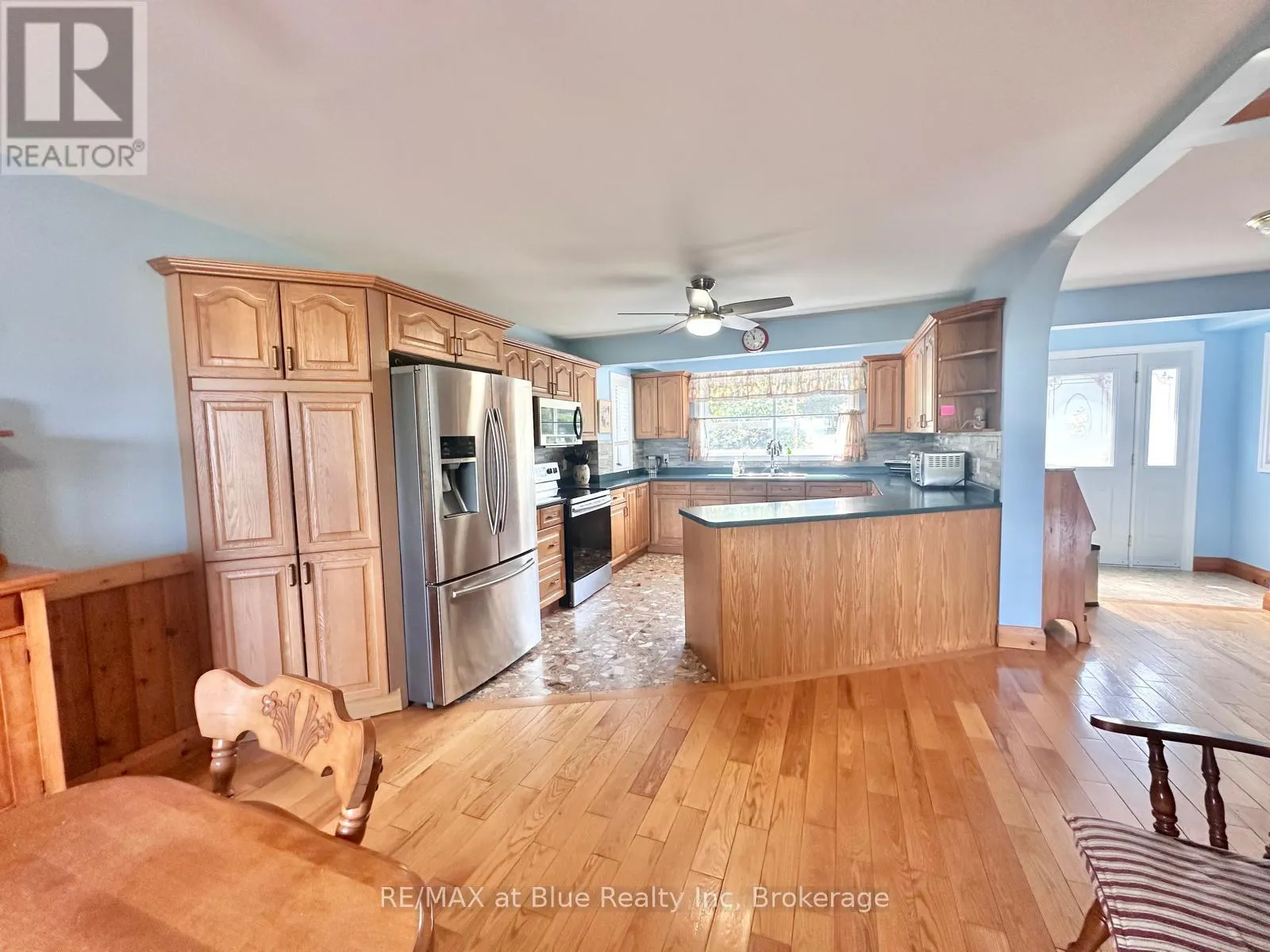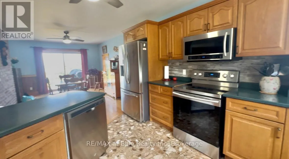 Cross Streets: Grandview and Sunset. ** Directions: 3rd Line Road to Grandview. Panoramic Lake Views, Deeded Waterfront, and Oversized Garage A Rare Find on Rice Lake. This charming large 2-bedroom, 1.5-bathroom home is nestled on a gently sloping 1-acre lot with incredible panoramic views of Rice Lake. Set up the hill to capture the scenery; the property includes fully owned lakefront access measuring 12 x 110, complete with private docking space and direct access to the Trent-Severn Waterway, ideal for boating, fishing, and enjoying the water all season long. This amazing property has 2 Koi fish ponds with over 100 fish and is also is great for pet owners, as it has been set up with an invisible fence system. Inside this great home the spacious eat-in kitchen is designed for the home chef, featuring ample prep space, stainless steel appliances, and room to entertain. The large living room is filled with natural light and warmed by a wood-burning fireplace, creating a cozy space for the colder months. The home features two well-sized bedrooms, including a primary suite with a 2-piece ensuite and a walkout to the upper deck, perfect for morning coffee with a lake view. Downstairs, the walkout rec room opens to the expansive yard, offering room to relax or gather with family and friends. You can even enjoy the scenery from the comfort of your bed, year-round. An oversized 32 x 32 detached garage offers loads of space for vehicles, a workshop, or adult toy storage. Two heating systems exist in the home with a heat pump-a/c unit for both air conditioning and heat that runs on electricity as well as a forced air propane furnace. Many great updates: a metal roof with a 40-year warranty installed 15 years ago, a new furnace (2023), newer heatpump-A/C unit (2018), and a hydro meter ready for a backup generator. Whether you're looking for a year-round home or a peaceful getaway, this property combines spectacular views, lakefront enjoyment, and everyday comfort in one beautiful package. (id:27476)