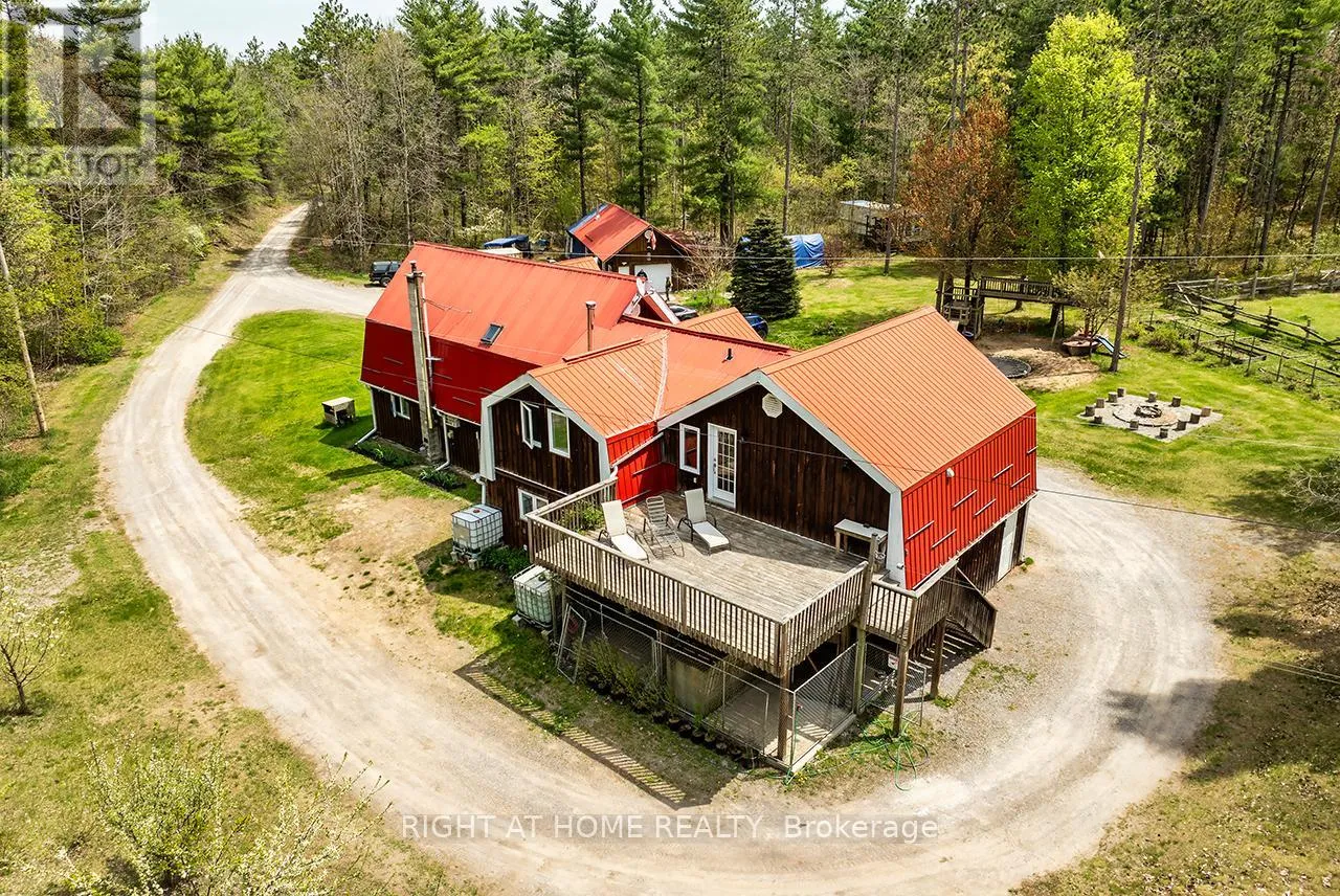 Cross Streets: Hwy 45 & County Rd 29. ** Directions: North. Hidden Country Retreat 21.25 Acres of Beauty and Privacy. Tucked away from the world and surrounded by nature's quiet embrace, this exceptional 21.25-acre property feels like your own private sanctuary. In winter, the landscape transforms into a breathtaking, peaceful, pristine, and picture-perfect. With two kitchens and separate entrances, the layout is ideal for extended family or multi-generational living. If a second living space isn't needed, the main floor can be easily reimagined to create a living room and a separate family room, home office, studio, or quiet retreat. There are countless possibilities here, whether you want to share the space, create more room to gather, or design a layout tailored to your lifestyle. This home invites you to make it your own. Two wood stoves add warmth and rustic character year-round. Recent updates include a new hot water tank, pressure tank, and well pump (2022). A dual-fuel gas/propane generator keeps the home powered when needed. The grounds offer endless possibilities, two cabins with wood stoves, a trailer with hydro and deck, two vegetable gardens. One with a greenhouse, the other with berry bushes and fruit trees. Outdoor living is very inviting, featuring a brand-new above-ground pool, a cozy fire pit, and a playground for children. For those with farming or hobby interests, the barn includes a tack room, water, and electricity, plus a paddock with livestock fencing. Three chicken coops (one previously for rabbits), a large outbuilding with two garage doors, one side with a wood-burning stove, offer ample storage or workshop space. Under the back deck, a contained dog kennel with multiple runs awaits. Whether your dream is homesteading or simply living surrounded by nature, this property delivers unmatched space, beauty, and potential. All it needs is your imagination! For safety, use of play structures/trampolines is not permitted. Road maintained year-round (Township of Alnwick/Haldimand). (id:27476)