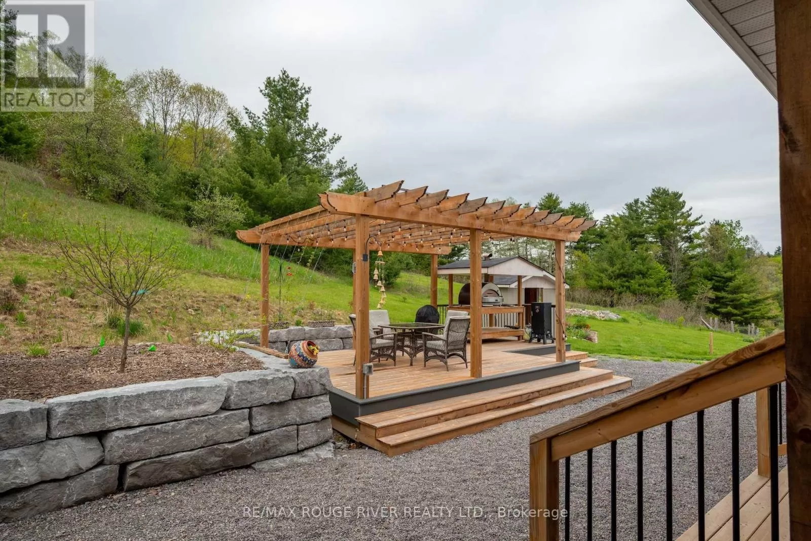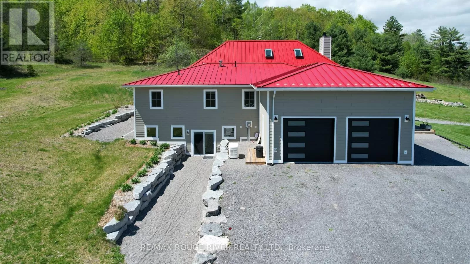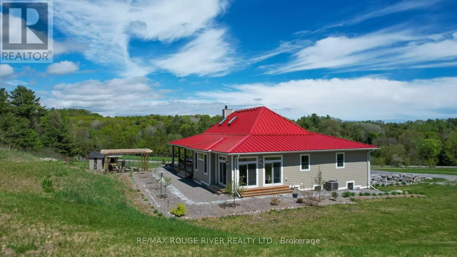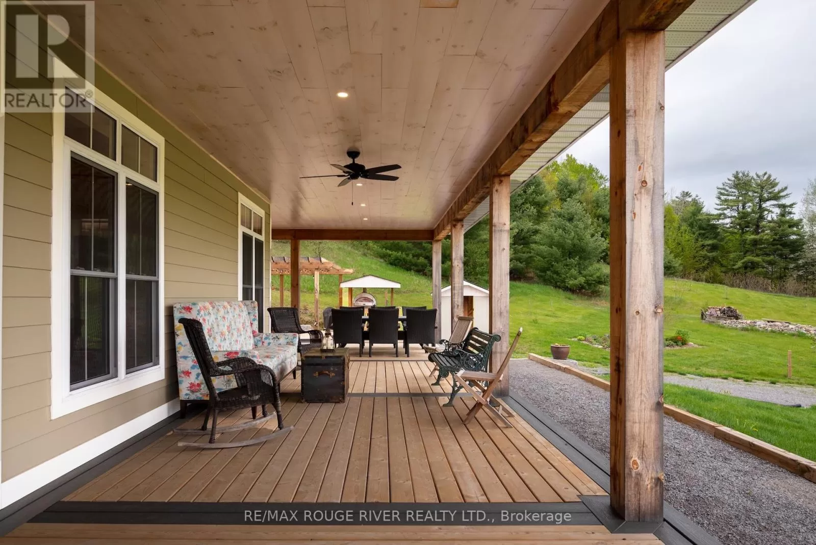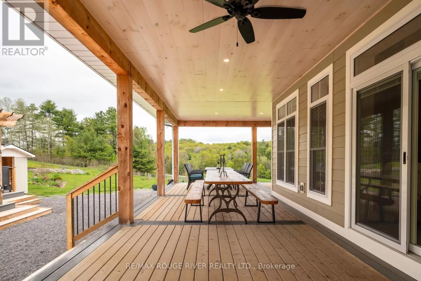 Cross Streets: Shelter Valley. ** Directions: North of Telephone Rd. Crafted with precision and completed in 2022, this stunning custom-built home offers refined living in a private, natural setting. Sited on 37 acres of rolling countryside with panoramic views, walking trails, and thoughtfully designed outdoor spaces, this property is a rare retreat just minutes from town. Step inside to a breathtaking great room with 21' vaulted ceilings, anchored by historic beams, and a striking STUV airtight fireplace. The chefs kitchen is a true showpiece, featuring leathered granite countertops, cherry cabinetry, and a premium Monogram range and hood ideal for both everyday living and entertaining. The main floor includes a luxurious primary suite with a spa-inspired ensuite and custom dressing room. Two additional bedrooms each feature their own 4-piece ensuite baths, providing comfort and privacy for family or guests. The beautifully finished lower level with a walkout expands your living space with two more bedrooms (or home offices), additional living space, and ample storage. Outside, enjoy a full wrap-around covered porch perfect for alfresco dining, a gazebo, and open-air lounging areas all designed to capture the stunning views across your private acreage. A true blend of luxury, tranquility, and craftsmanship (id:27476)