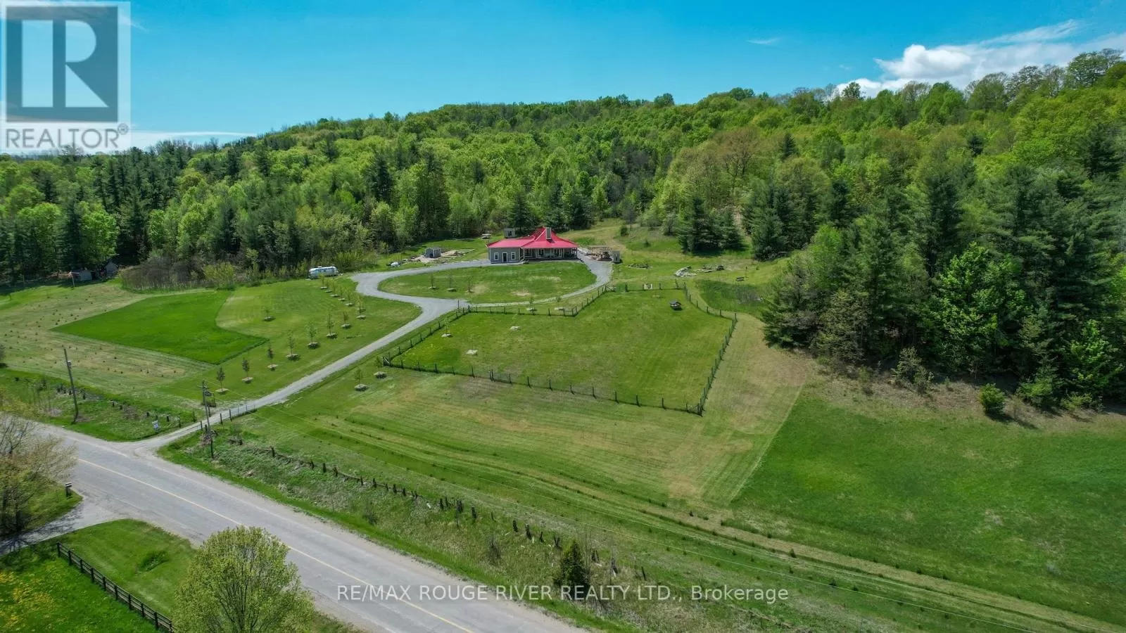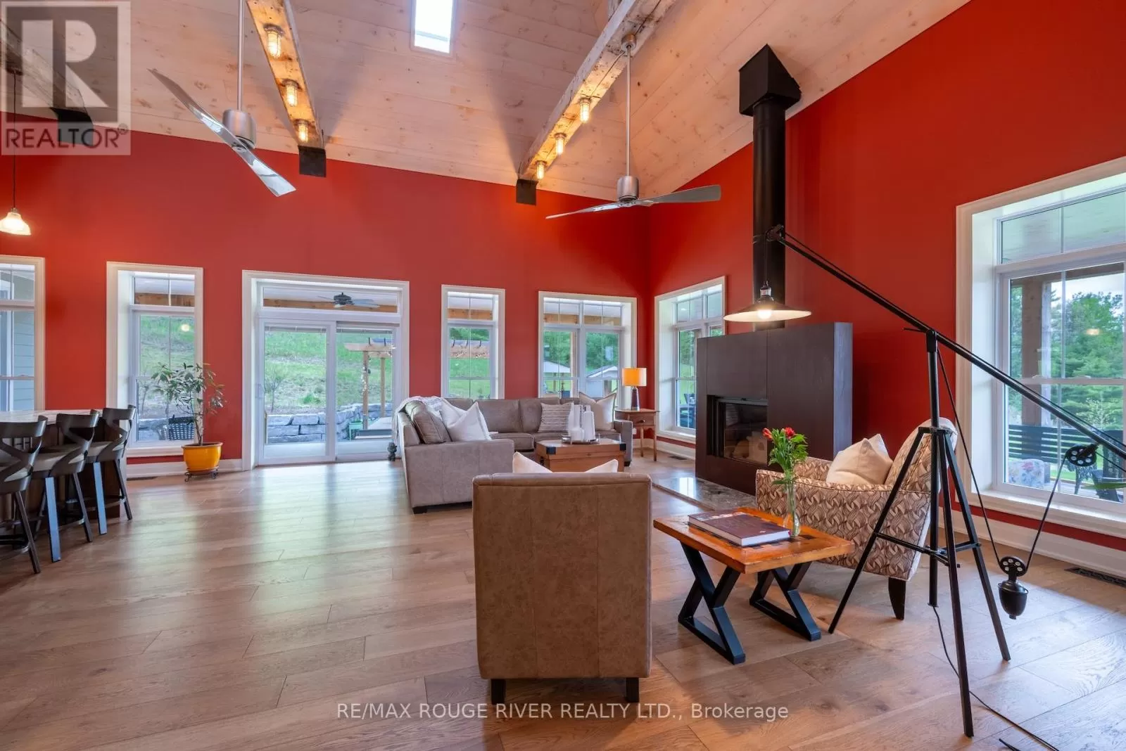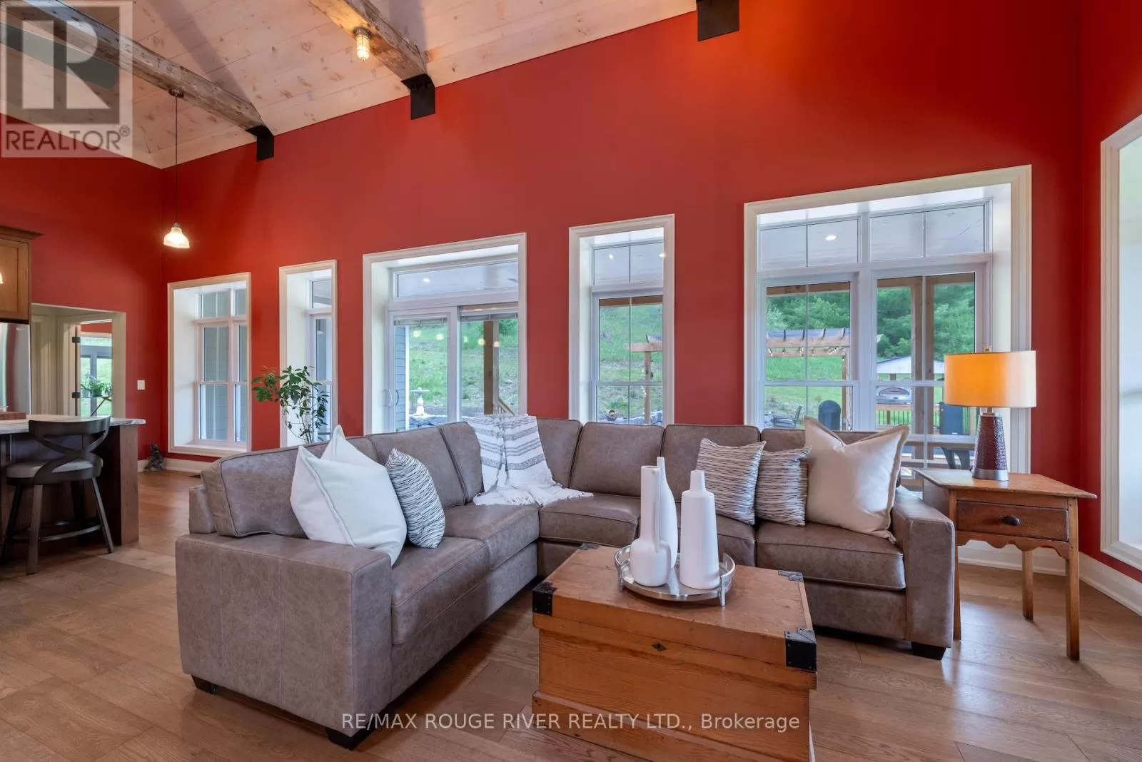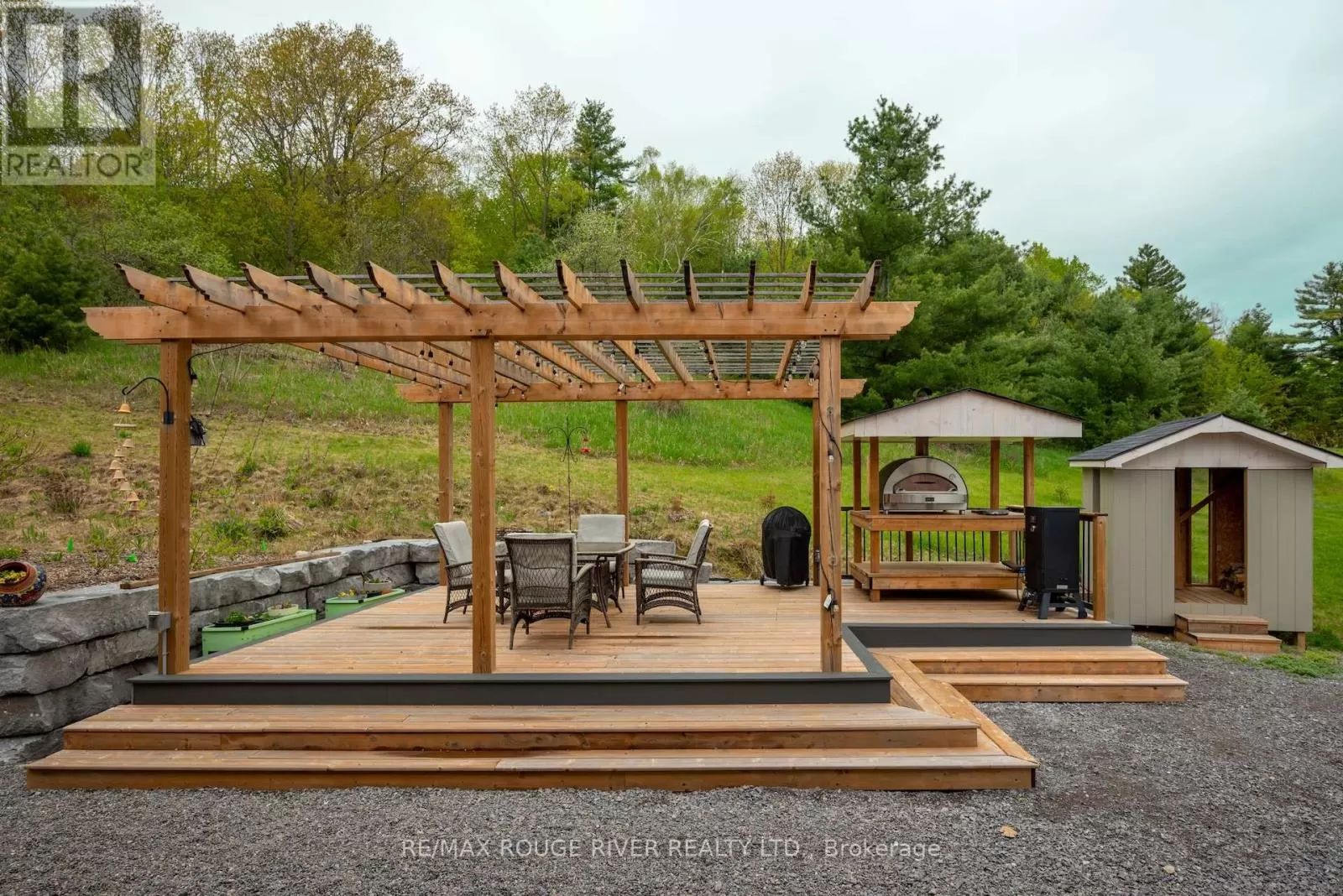 Cross Streets: Shelter Valley. ** Directions: North of Telephone Rd. Crafted with precision and completed in 2022, this stunning custom-built home offers refined living in a private, natural setting. Sited on 37 acres of rolling countryside with panoramic views, walking trails, and thoughtfully designed outdoor spaces, this property is a rare retreat just minutes from town. Step inside to a breathtaking great room with 21' vaulted ceilings, anchored by historic beams, and a striking STUV airtight fireplace. The chefs kitchen is a true showpiece, featuring leathered granite countertops, cherry cabinetry, and a premium Monogram range and hood ideal for both everyday living and entertaining. The main floor includes a luxurious primary suite with a spa-inspired ensuite and custom dressing room. Two additional bedrooms each feature their own 4-piece ensuite baths, providing comfort and privacy for family or guests. The beautifully finished lower level with a walkout expands your living space with two more bedrooms (or home offices), additional living space, and ample storage. Outside, enjoy a full wrap-around covered porch perfect for alfresco dining, a gazebo, and open-air lounging areas all designed to capture the stunning views across your private acreage. A true blend of luxury, tranquility, and craftsmanship (id:27476)