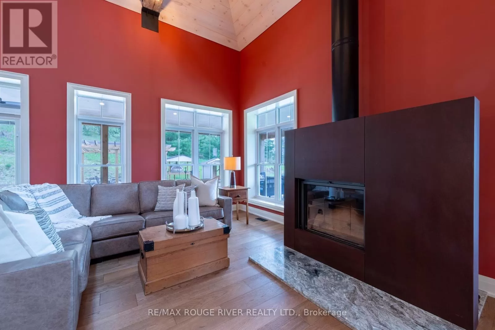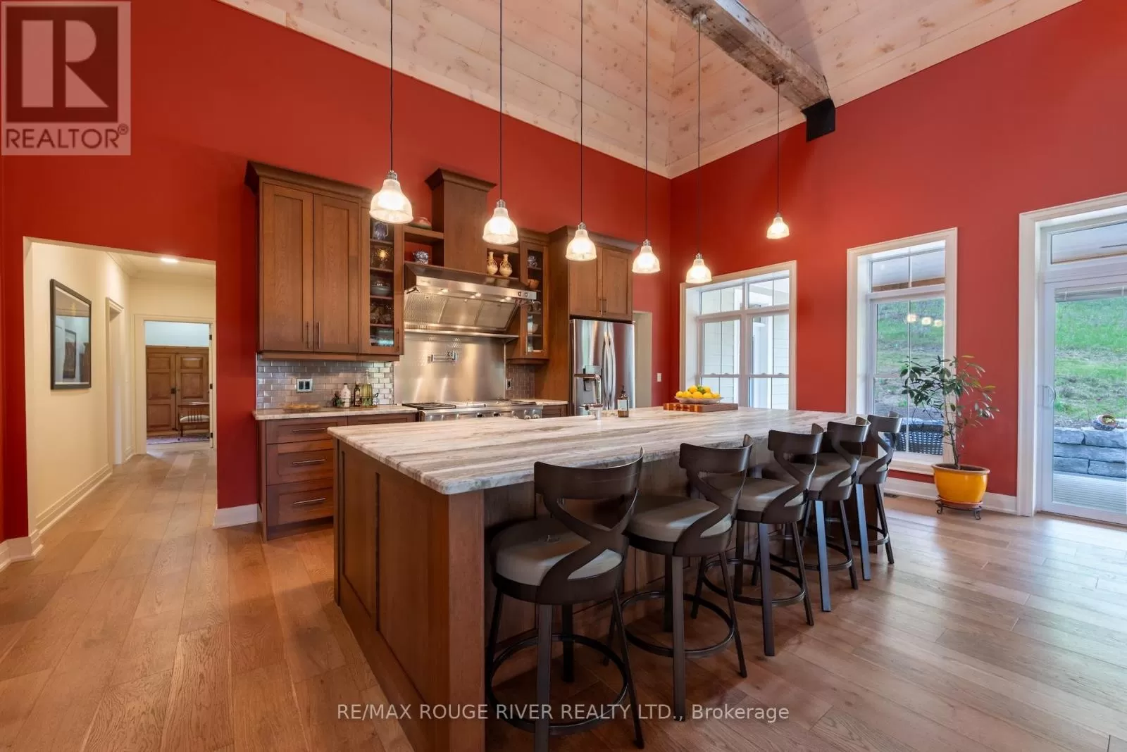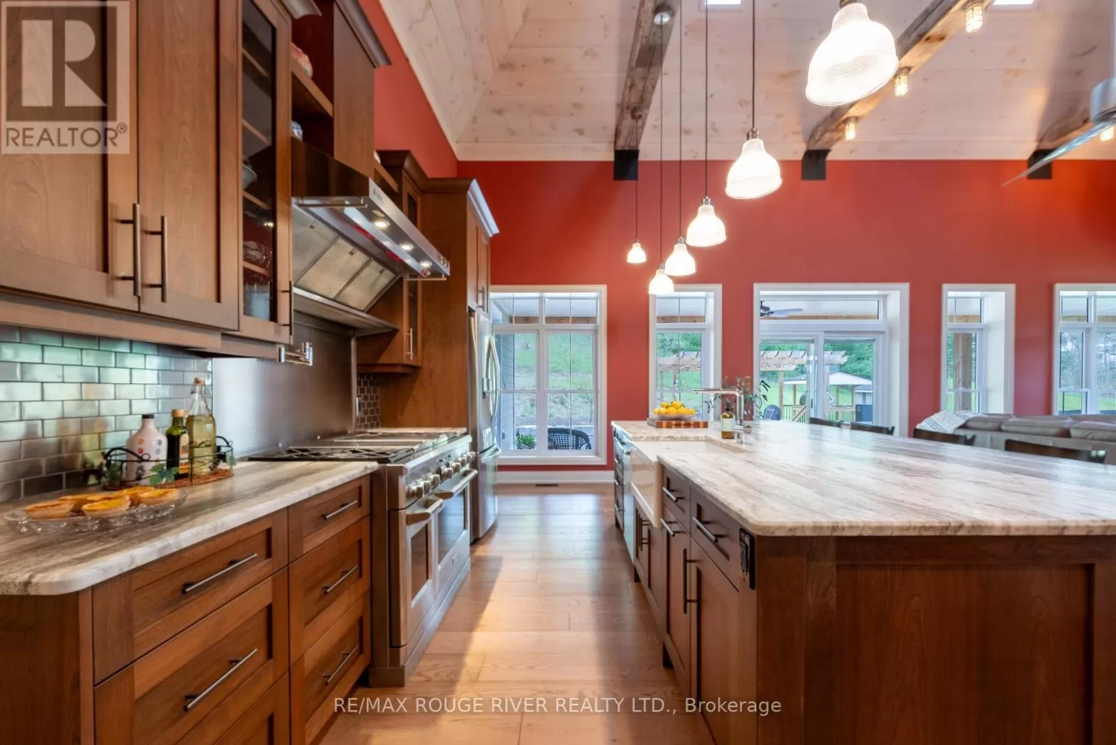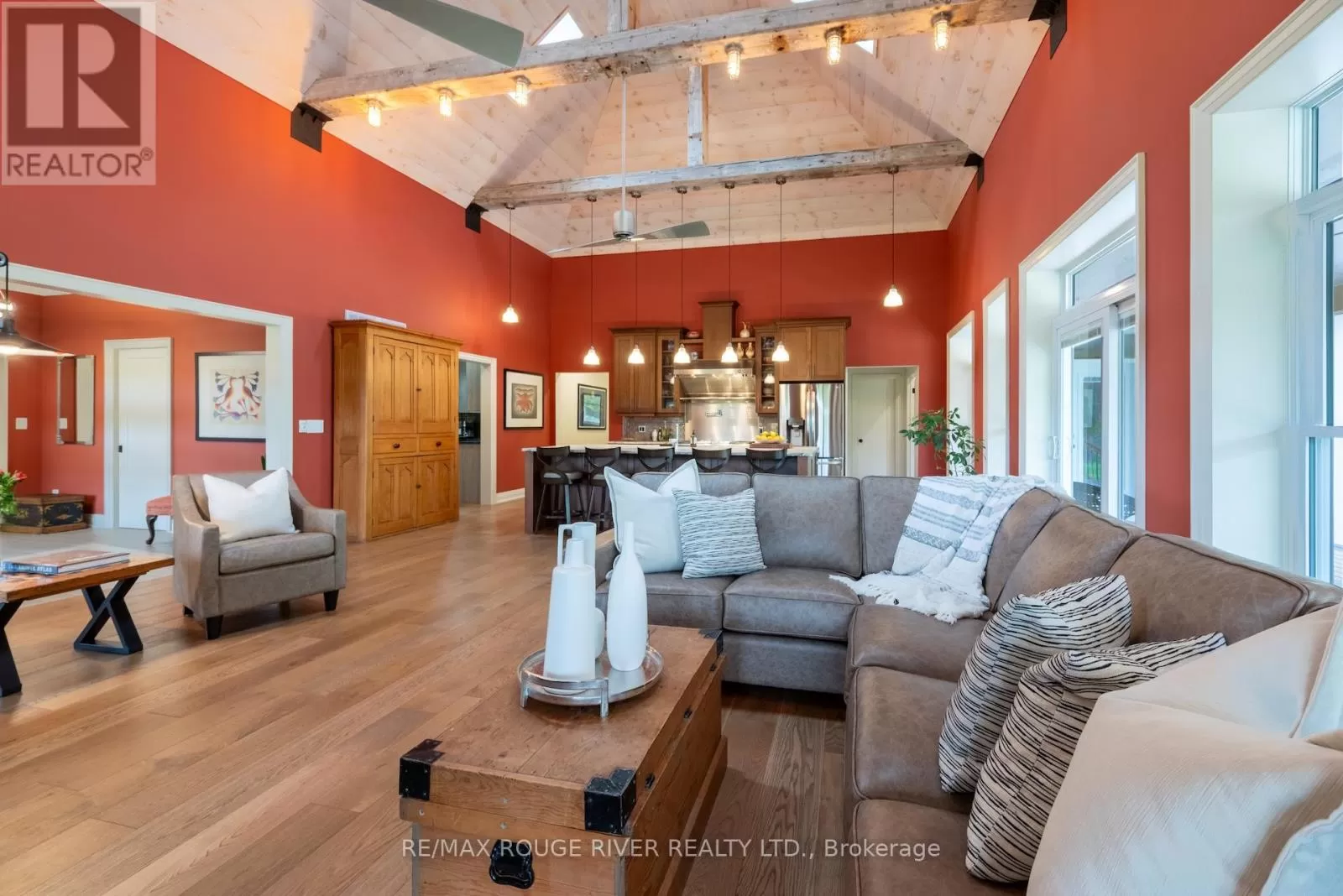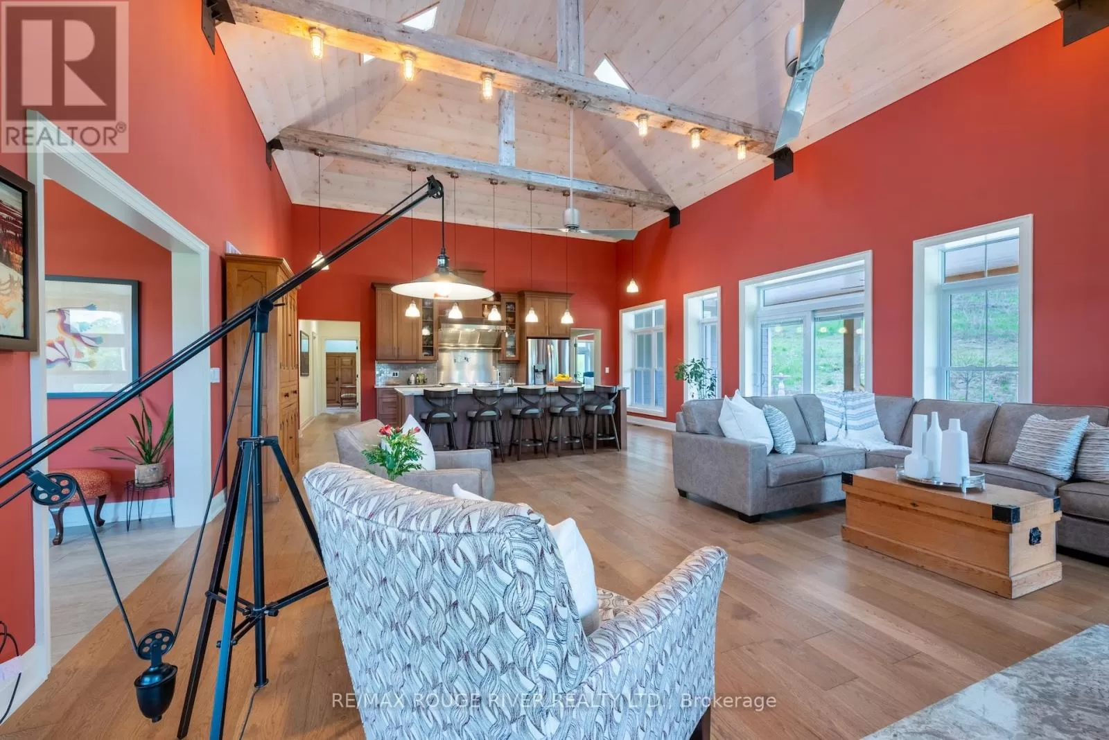 Cross Streets: Shelter Valley. ** Directions: North of Telephone Rd. Crafted with precision and completed in 2022, this stunning custom-built home offers refined living in a private, natural setting. Sited on 37 acres of rolling countryside with panoramic views, walking trails, and thoughtfully designed outdoor spaces, this property is a rare retreat just minutes from town. Step inside to a breathtaking great room with 21' vaulted ceilings, anchored by historic beams, and a striking STUV airtight fireplace. The chefs kitchen is a true showpiece, featuring leathered granite countertops, cherry cabinetry, and a premium Monogram range and hood ideal for both everyday living and entertaining. The main floor includes a luxurious primary suite with a spa-inspired ensuite and custom dressing room. Two additional bedrooms each feature their own 4-piece ensuite baths, providing comfort and privacy for family or guests. The beautifully finished lower level with a walkout expands your living space with two more bedrooms (or home offices), additional living space, and ample storage. Outside, enjoy a full wrap-around covered porch perfect for alfresco dining, a gazebo, and open-air lounging areas all designed to capture the stunning views across your private acreage. A true blend of luxury, tranquility, and craftsmanship (id:27476)