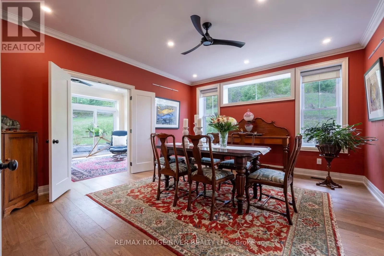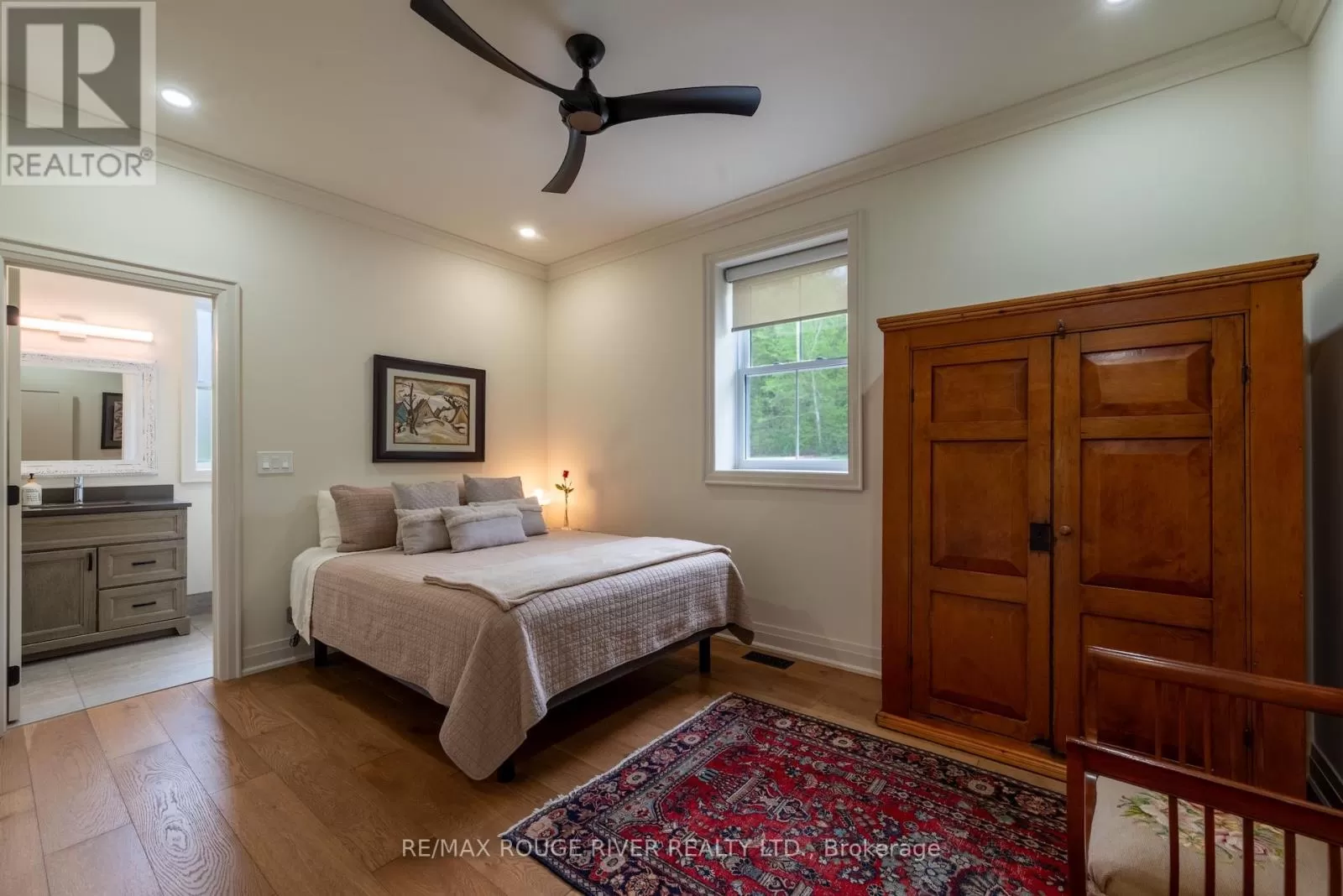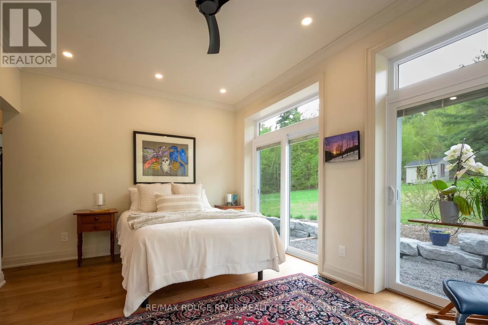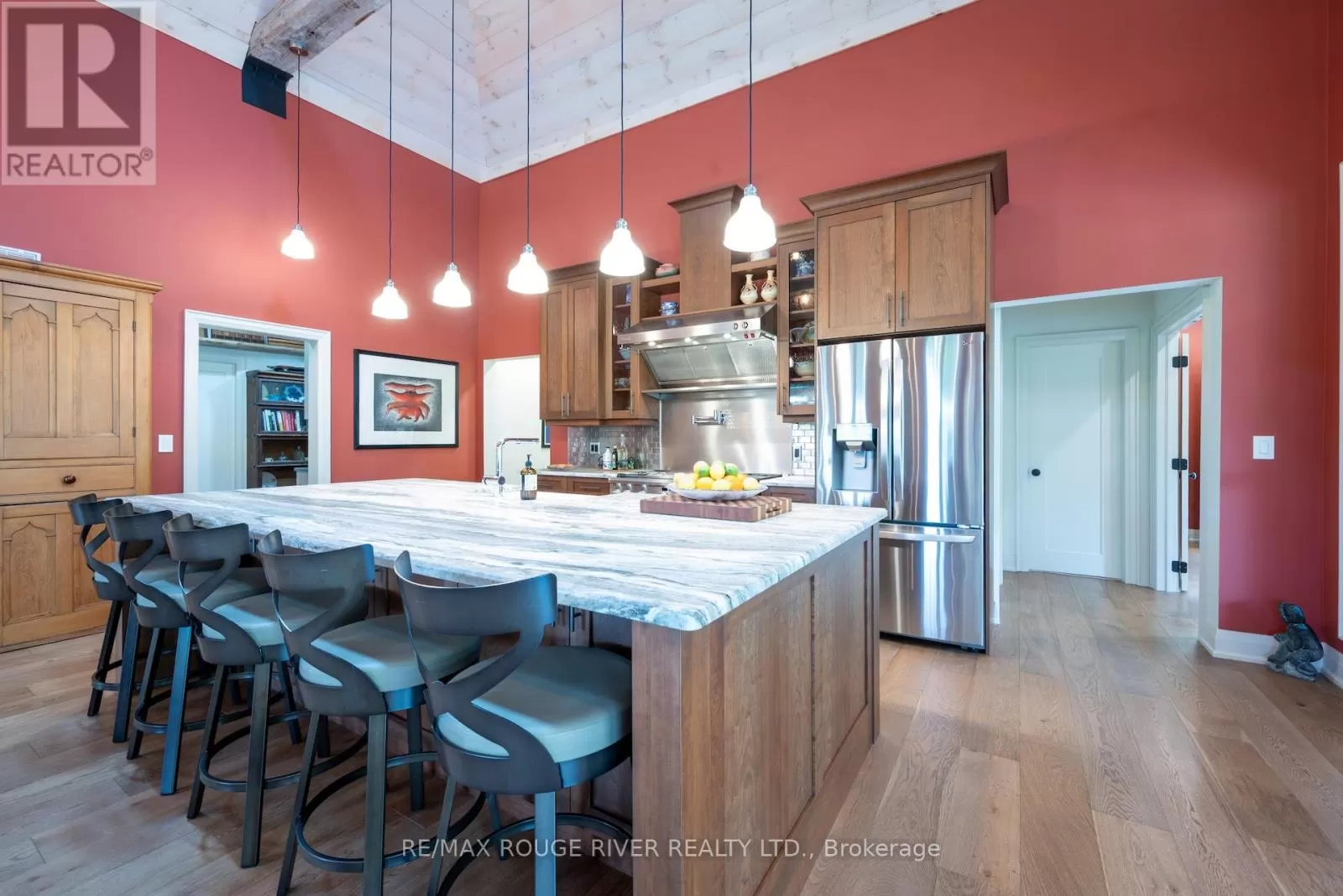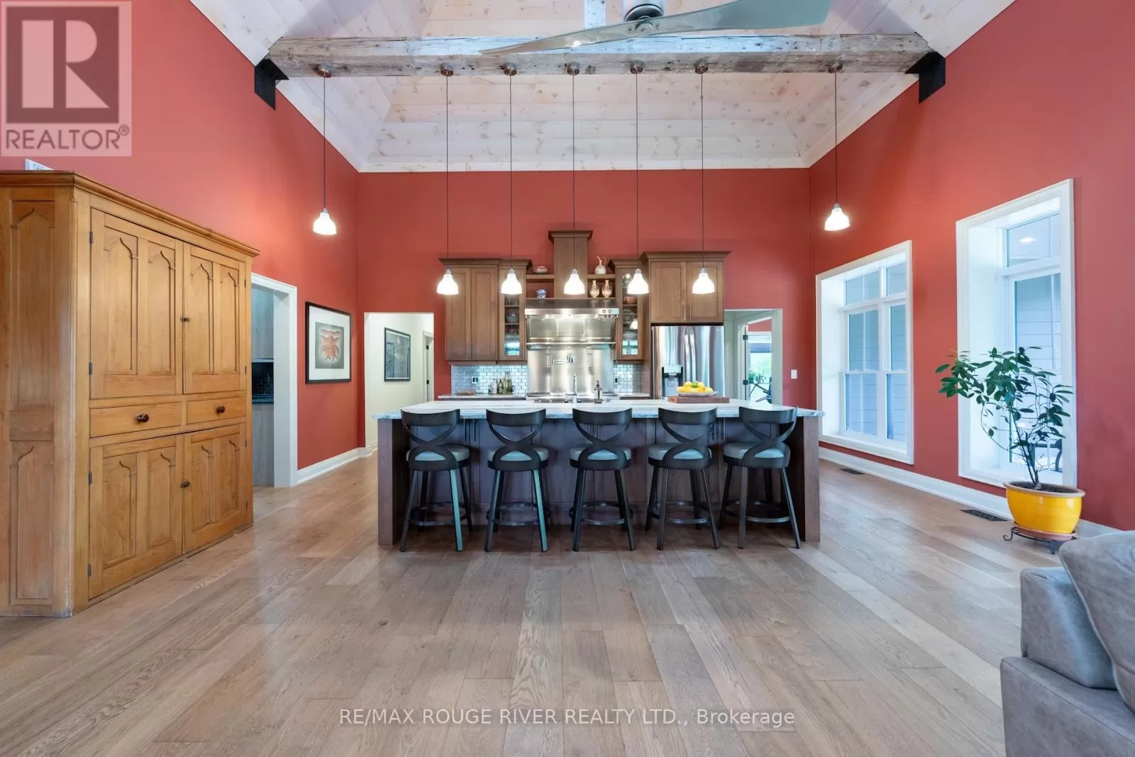 Cross Streets: Shelter Valley. ** Directions: North of Telephone Rd. Crafted with precision and completed in 2022, this stunning custom-built home offers refined living in a private, natural setting. Sited on 37 acres of rolling countryside with panoramic views, walking trails, and thoughtfully designed outdoor spaces, this property is a rare retreat just minutes from town. Step inside to a breathtaking great room with 21' vaulted ceilings, anchored by historic beams, and a striking STUV airtight fireplace. The chefs kitchen is a true showpiece, featuring leathered granite countertops, cherry cabinetry, and a premium Monogram range and hood ideal for both everyday living and entertaining. The main floor includes a luxurious primary suite with a spa-inspired ensuite and custom dressing room. Two additional bedrooms each feature their own 4-piece ensuite baths, providing comfort and privacy for family or guests. The beautifully finished lower level with a walkout expands your living space with two more bedrooms (or home offices), additional living space, and ample storage. Outside, enjoy a full wrap-around covered porch perfect for alfresco dining, a gazebo, and open-air lounging areas all designed to capture the stunning views across your private acreage. A true blend of luxury, tranquility, and craftsmanship (id:27476)