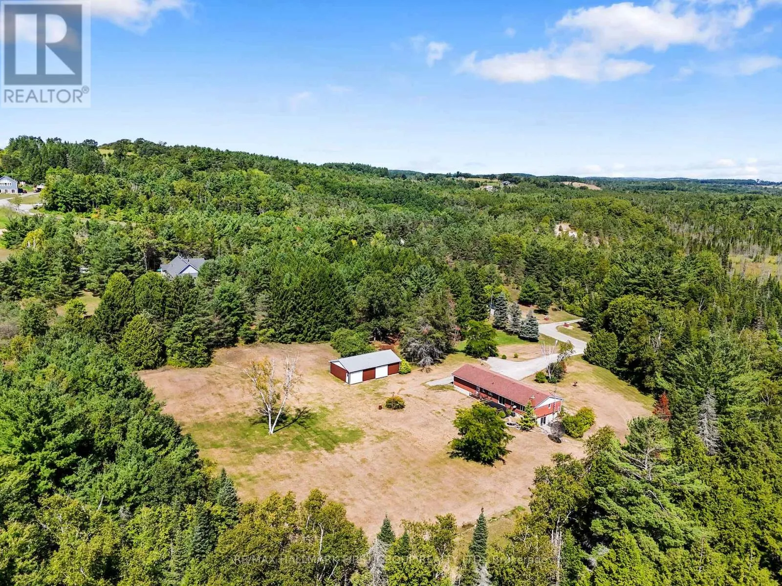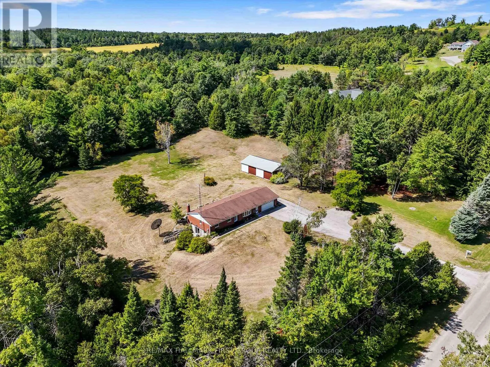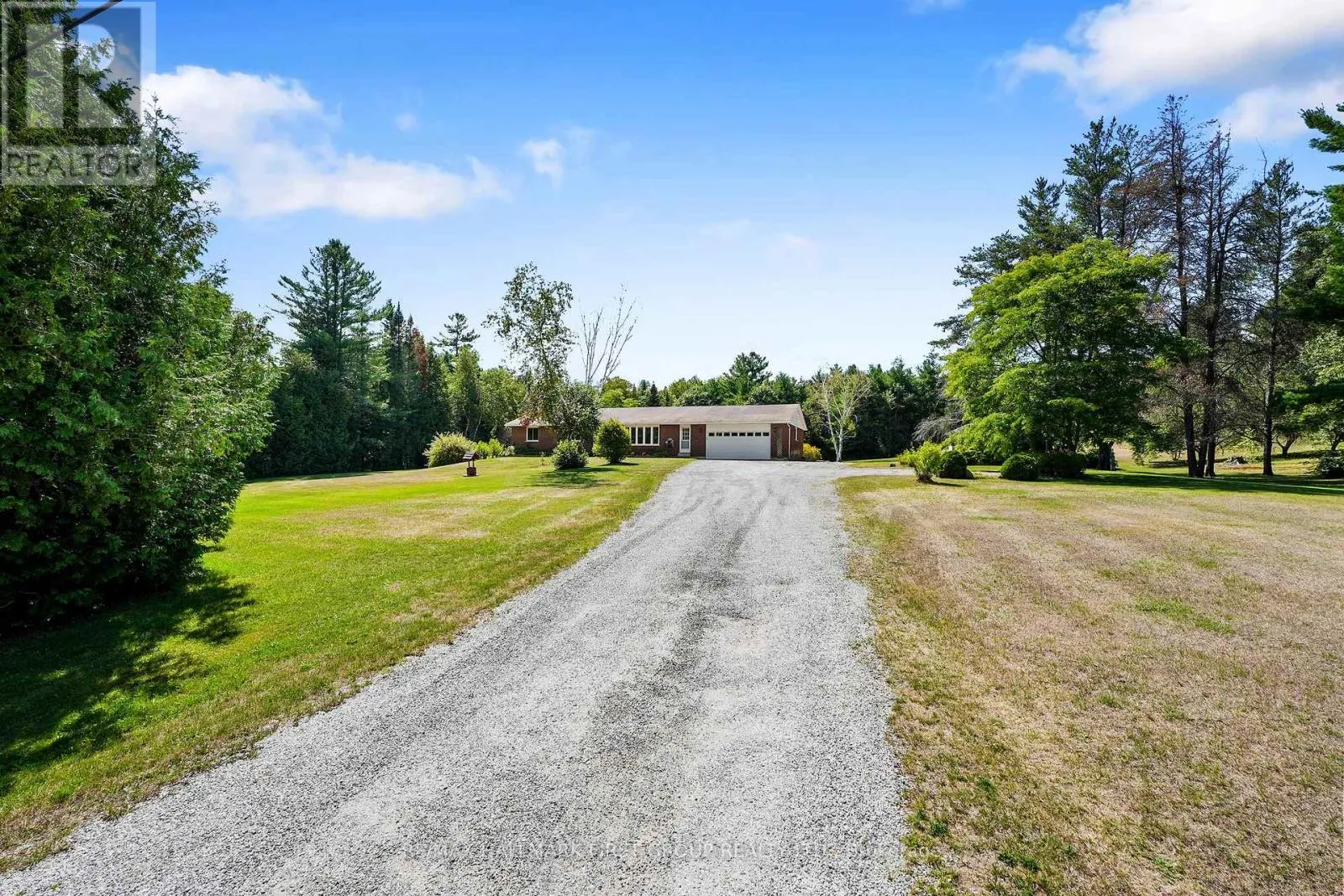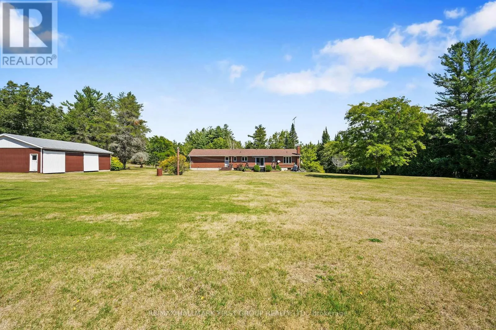 Cross Streets: Woodland and County Rd 45. ** Directions: North on County Rd 45, East on Woodland Road. Situated on 4.63 acres on a quiet, dead-end street, this character-filled bungalow offers an attached garage, a detached workshop, and a walkout basement with potential for in-law accommodations. The bright front living room showcases natural wood trim and a wall of bow windows that flood the space with sunlight. An open kitchen and dining area provide the perfect setting for gatherings, with a walkout to the back deck that seamlessly extends the living space outdoors. The kitchen features a peninsula prep counter, warm wood cabinetry, and a large window framing views of the backyard. The primary suite boasts a generous window that highlights the incredible vistas, along with an en-suite and walk-in closet. Two additional bedrooms, a full bathroom, and a guest bath complete the main level. The lower level offers endless versatility with a sprawling recreation room, stone-clad fireplace, walkout, and a kitchenette that could easily be expanded into a full kitchen and dining area, and a large bedroom. Outside, acres of open space surround a spacious elevated deck, bordered by mature perennial shrubs. A 1,359 sq. ft. workshop provides an exceptional space for car enthusiasts, hobbyists, or those seeking a home-based business opportunity. Just off Hwy 45 and located close to Rice Lake, this property offers privacy, natural beauty, and the relaxed pace of country living. The ideal retreat for those eager to make a home their own. (id:27476)