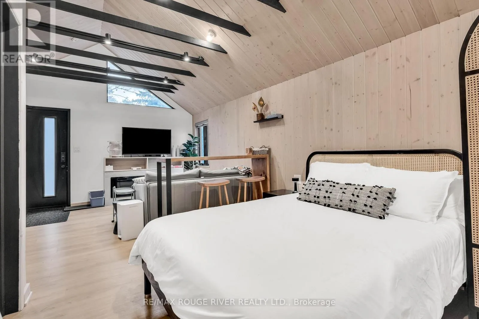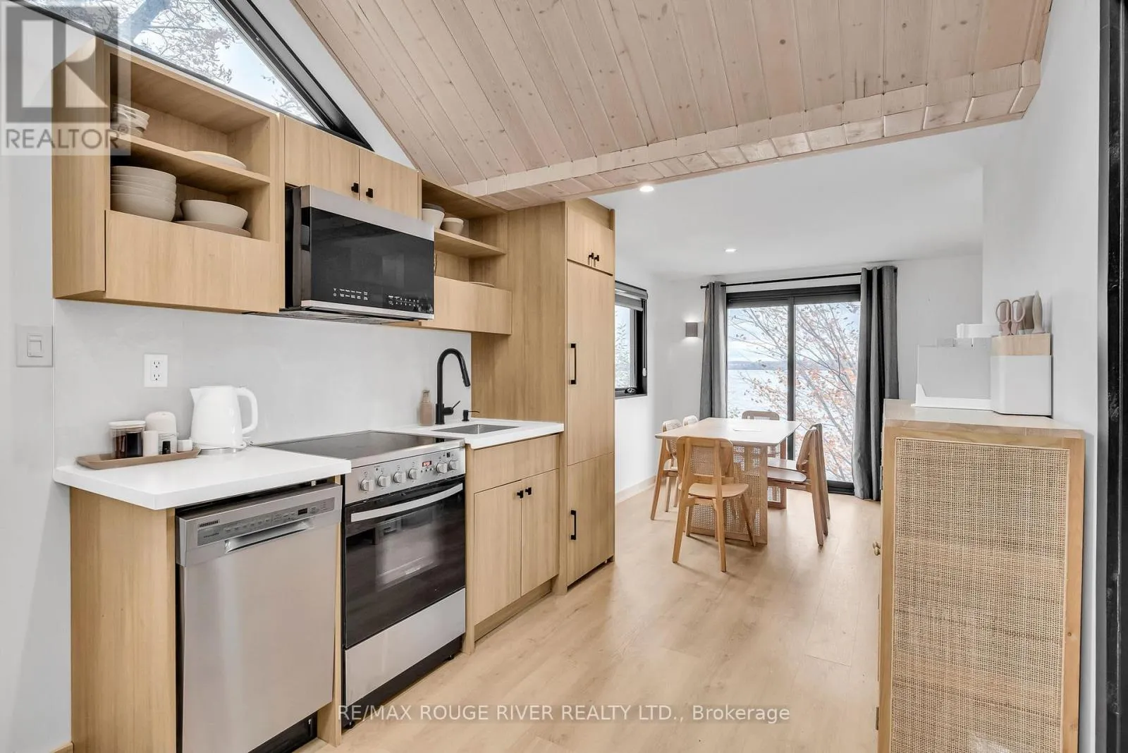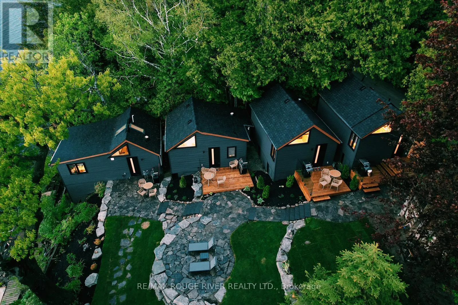 Cross Streets: Off of HWY 45. ** Directions: Merrill Rd tot he end, turn left to #12. Discover a rare opportunity to own a boutique waterfront resort featuring six Nordic-inspired cabins, each fully restored and newly renovated with sleek interiors and state-of-the-art kitchens. Set along a pristine stretch of Rice Lake shoreline, this property offers a guest experience unmatched in the region. Backed by a million-dollar-plus renovation and restoration, the resort requires no further capital expenditures. Upgraded infrastructure includes 400-amp service, a Porsche EV charger, modern septic, and water filtration ensuring efficiency and long-term peace of mind. Designed for all-season enjoyment, the grounds feature a hot tub, sauna, yoga deck, kayaks, paddleboards, an expansive dock, and a lakeside firepit creating a complete wellness and lifestyle circuit. Commercial zoning, a proven short-term rental history, and an established online marketing program make this a compelling turnkey investment, while included furnishings and equipment allow for immediate operation. Alternatively, it presents the perfect canvas for a private family retreat. Just 90 minutes from Toronto, this lakeside sanctuary blends luxury, wellness, and revenue potential in one extraordinary package. (id:27476)
