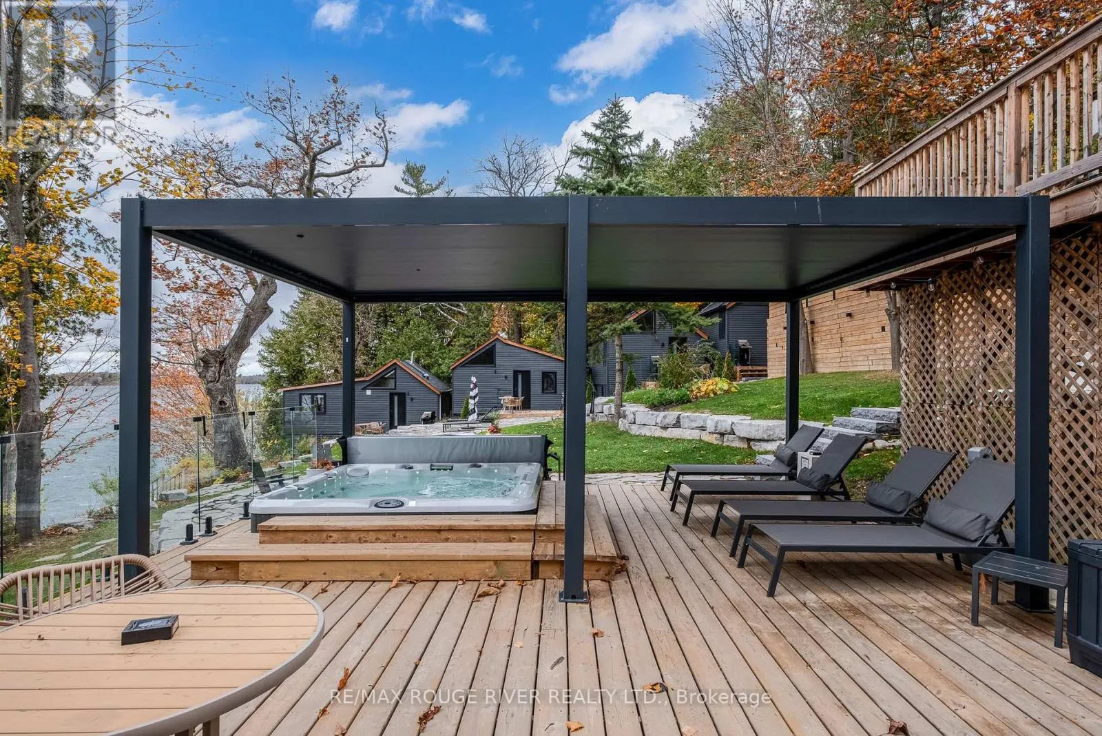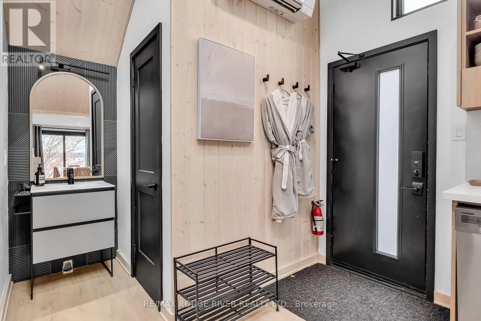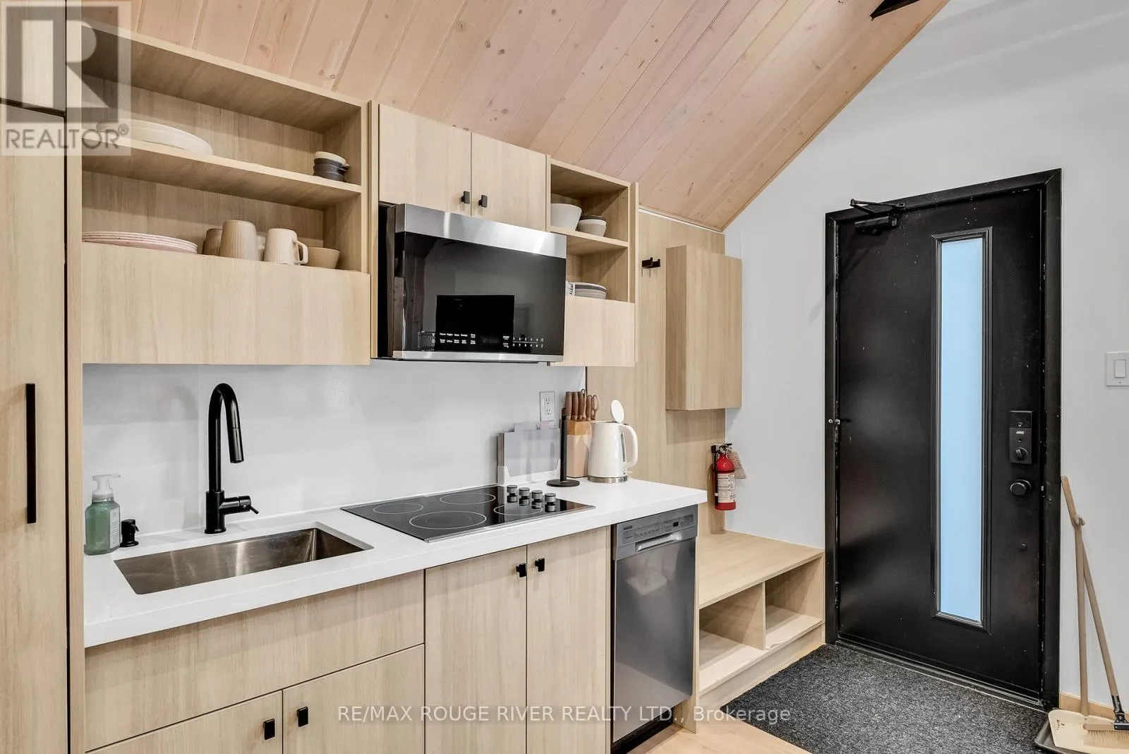 Cross Streets: Off of HWY 45. ** Directions: Merrill Rd tot he end, turn left to #12. Discover a rare opportunity to own a boutique waterfront resort featuring six Nordic-inspired cabins, each fully restored and newly renovated with sleek interiors and state-of-the-art kitchens. Set along a pristine stretch of Rice Lake shoreline, this property offers a guest experience unmatched in the region. Backed by a million-dollar-plus renovation and restoration, the resort requires no further capital expenditures. Upgraded infrastructure includes 400-amp service, a Porsche EV charger, modern septic, and water filtration ensuring efficiency and long-term peace of mind. Designed for all-season enjoyment, the grounds feature a hot tub, sauna, yoga deck, kayaks, paddleboards, an expansive dock, and a lakeside firepit creating a complete wellness and lifestyle circuit. Commercial zoning, a proven short-term rental history, and an established online marketing program make this a compelling turnkey investment, while included furnishings and equipment allow for immediate operation. Alternatively, it presents the perfect canvas for a private family retreat. Just 90 minutes from Toronto, this lakeside sanctuary blends luxury, wellness, and revenue potential in one extraordinary package. (id:27476)