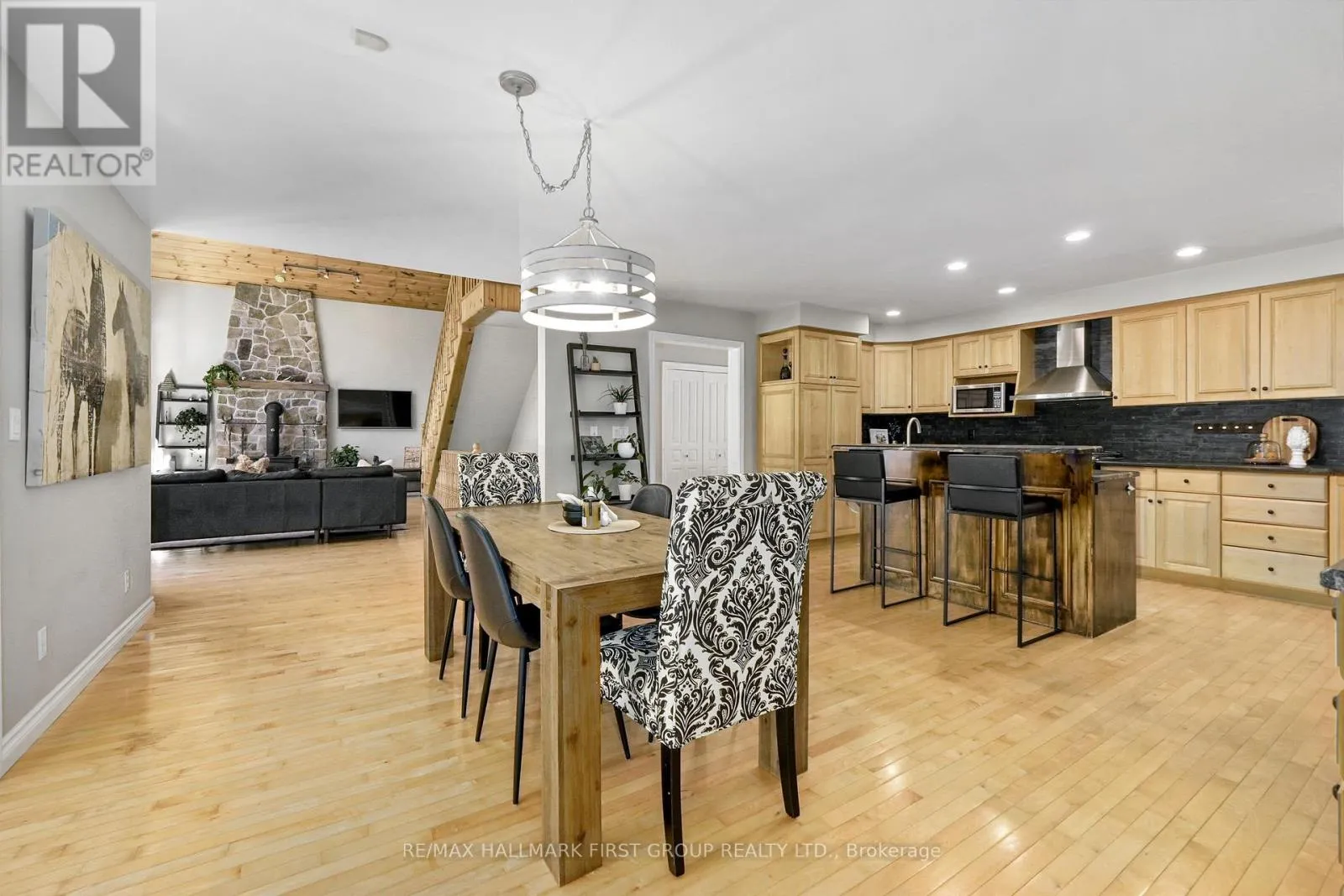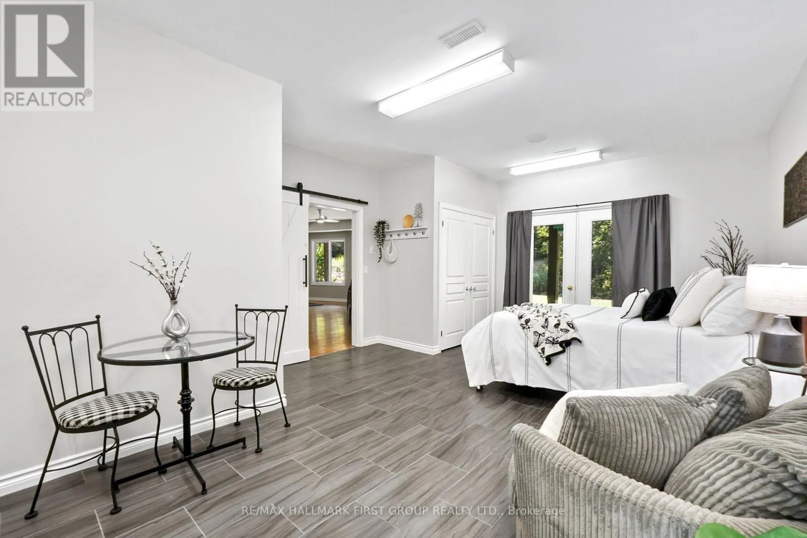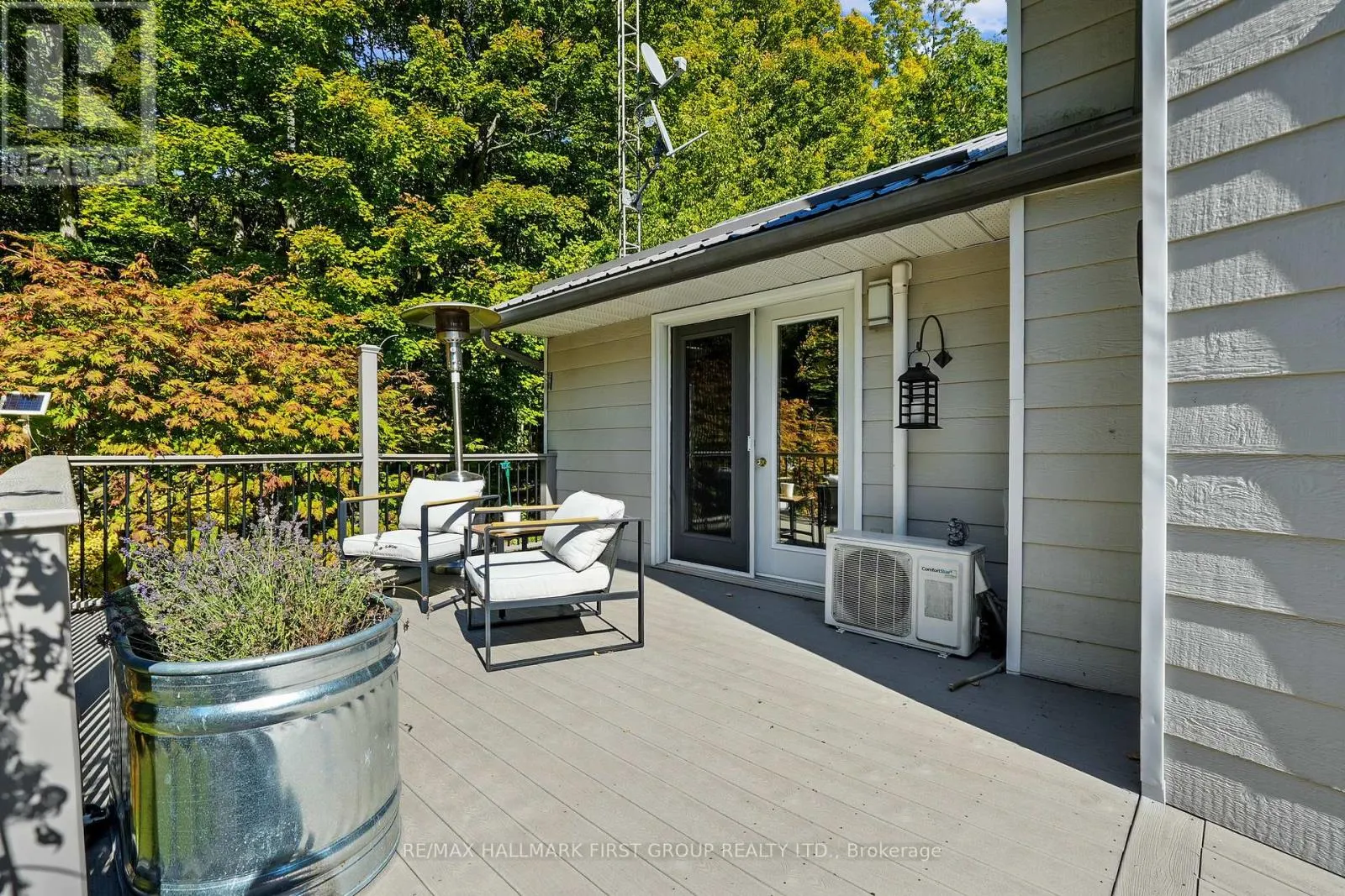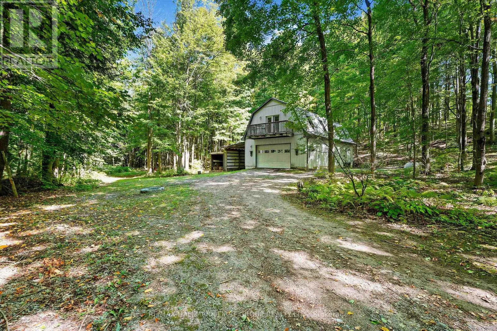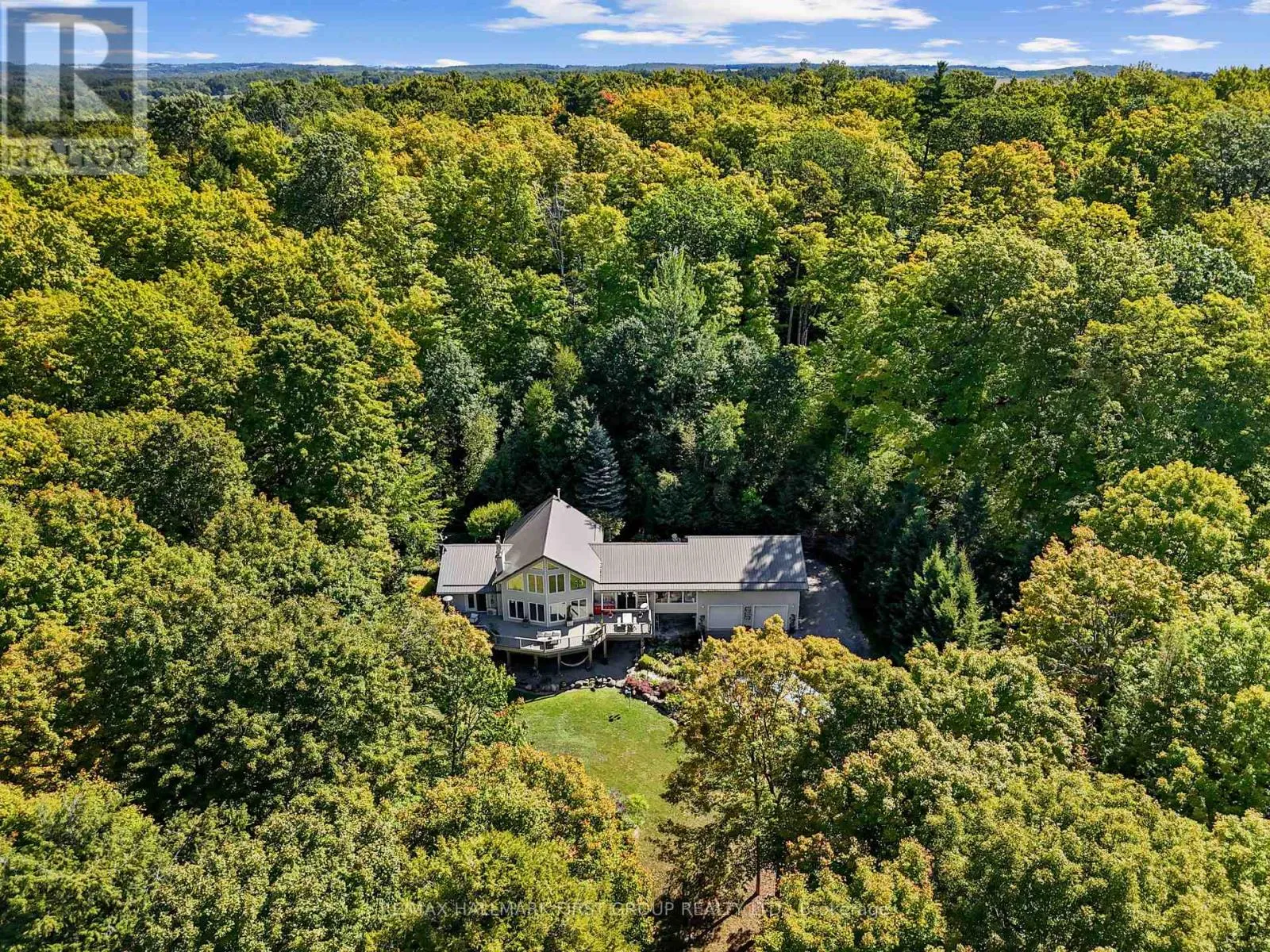 Cross Streets: Boeve Lane & Broomfield Rd. ** Directions: Hwy 401 E, exit Grafton, Head North on Lyle St (CR23), Right onto Pipeline Rd, Left onto Broomfield Rd, Right onto Boeve Ln, Property Situated on the Left. Nestled on 99 private acres just north of Grafton, this meticulously maintained forest retreat offers unparalleled privacy, natural beauty, and versatile living with a separate in-law suite. The Viceroy-style home is designed to capture the beauty of its surroundings, with floor-to-ceiling windows that flood the great room with natural light while offering breathtaking views. A cozy fireplace and wood-clad cathedral ceiling create an atmosphere of warmth and comfort. The open-concept kitchen and dining area seamlessly extend outdoors through convenient walkouts, blending indoor and outdoor living. The kitchen features a central island with raised breakfast bar, stainless steel appliances with matching hood vent, and a dedicated coffee bar. Just off the kitchen, a sunroom provides the perfect spot to enjoy quiet mornings in any weather. The main floor hosts a spacious primary suite with walkout access and private ensuite, along with a second bedroom, full bathroom, and main floor laundry. Upstairs, an airy loft is outfitted with built-in desks and daybeds, ideal for work or guests. The fully finished lower level offers versatile living and entertaining space, including a bright recreation room with stove-style fireplace, a large bedroom with ensuite and patio doors, a den/office, and a full theatre room designed for family movie nights or gatherings with friends. Step outside to enjoy multiple outdoor retreats: a spacious second-level deck for lounging or al fresco dining, a covered lower-level patio, and a fenced yard area designed for four-legged family members, complete with deck, fire pit, and lush landscaping for added privacy. The home includes an attached two-bay garage and an impressive 3,072 sq. ft. workshop featuring a finished loft in-law suite with full bathroom and private deck. Beyond the home, the property reveals a pond with observation deck and dock, forested trails, clearings, and countless spaces to explore and enjoy. (id:27476)