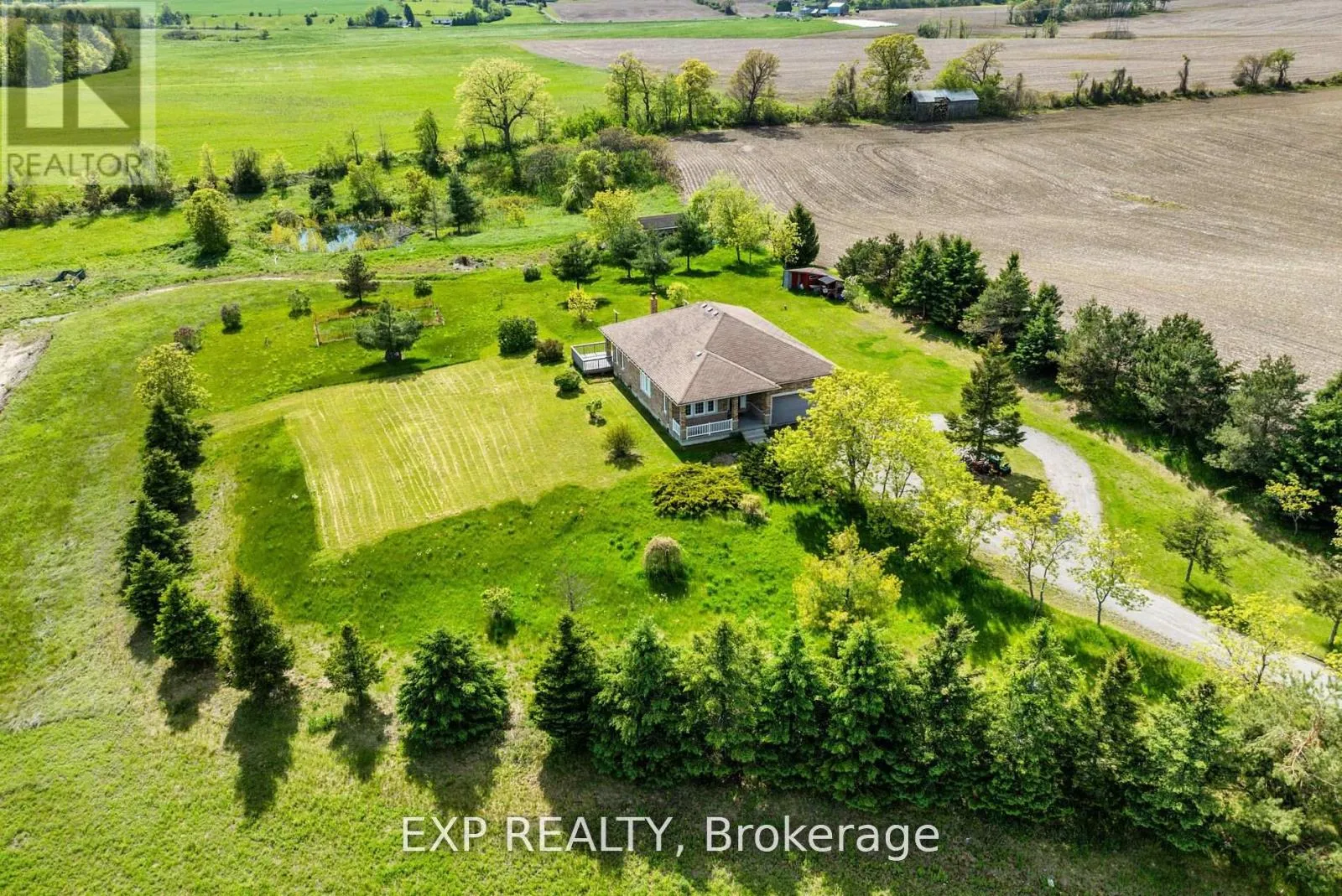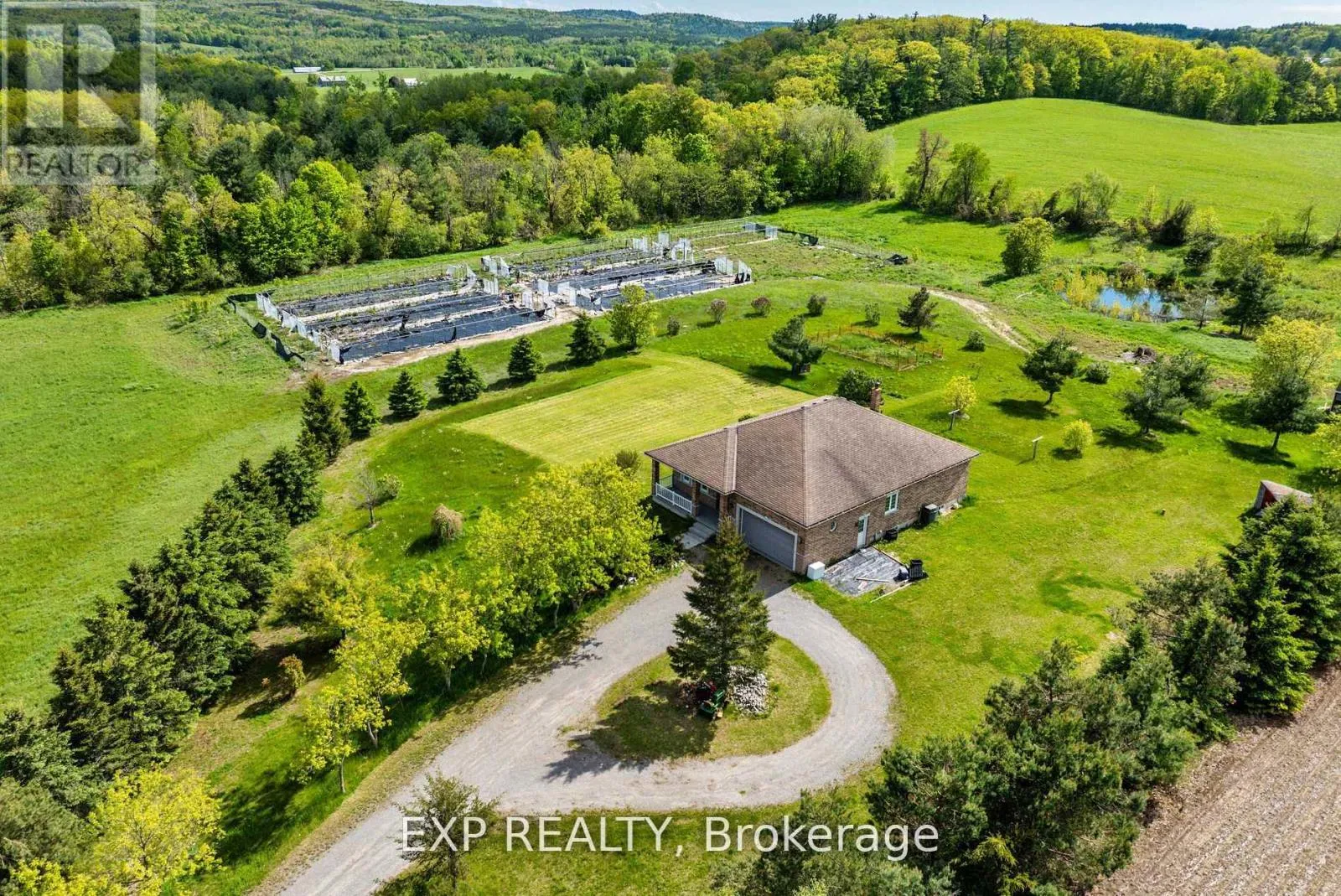 N. Country Road 29 & E. Hwy 45 Discover the charm of 296 Montgomery Road in Roseneath, Ontario, a stunning all-brick, detached bungalow perched on a hill, offering breathtaking views of clear rolling hills. Nestled on over 14 acres of private land, this newer-built home is set far back from the main road, ensuring tranquility and seclusion. The main floor boasts 9' ceilings and gleaming hardwood floors throughout. Enjoy the spacious double garage with high ceilings and a large single garage door. The property features a serene pond at the rear, perfect for relaxation. The partially finished basement, filled with natural light from numerous windows, awaits your personal touch. Just a short drive to Rice Lake, this property is an ideal retreat with endless possibilities. Experience country living at its finest!Extras: 9' ceilings & hardwood flooring throughout main floor. 14+ acres land. Double garage with good height and large single door with direct entrance to home. Wood burning stove in family room. Approx. 1,800 sqft. (not including basement). (id:27476)