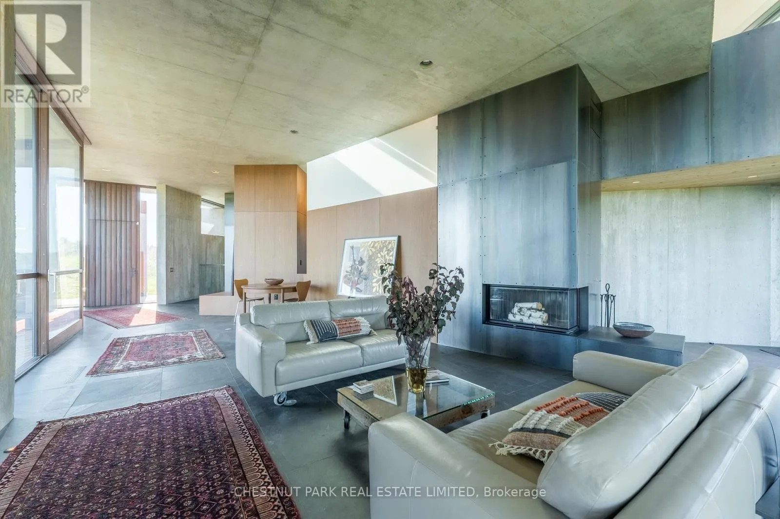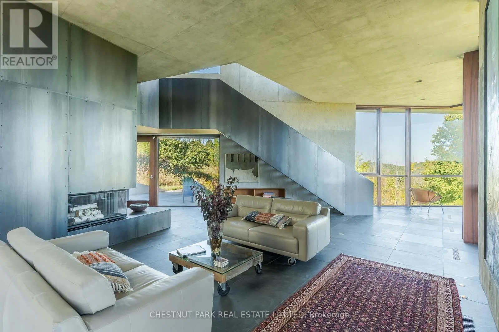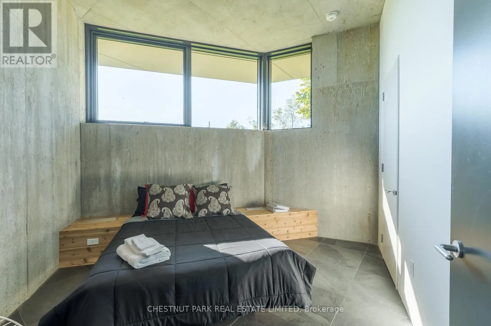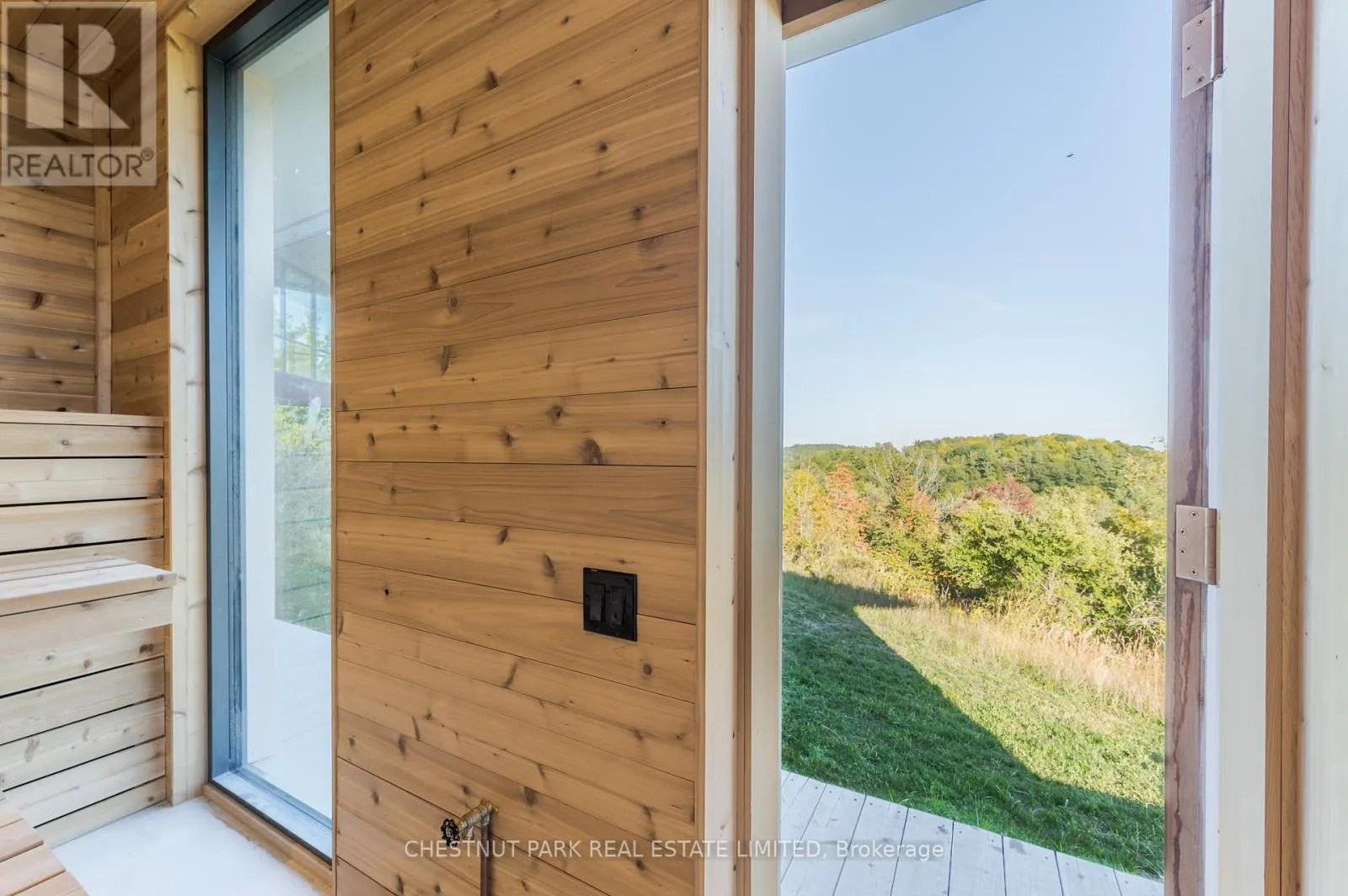 Cross Streets: Massey Rd. & Clouston Rd. ** Directions: N. from Massey Rd at St. Anne's Spa, N on Clouston to Helen's Lane. The Brillinger House. Architecture and nature harmonize in a magical setting with this stunning 2024 build, designed by Adam Thom. The structure brings the hills, forest, field and light into this contemporary home. The landscape is intended to stay as natural as possible, the terrain just mildly tamed. One is welcomed through a unique entrance, with shelter and open sky. No disappointment upon entering. The open concept living area invites you in, a magnificent expanse of doors, windows reaching from the floor to the soaring ceiling mirror natures earth to sky magic. Slate floors, wood textured concrete and warm teak walls all work in balance with the vistas. This main level is graced with The Great Room and fireplace, a subtle minimalist bar kitchen, massive deck, two bedrooms, and a sublime bathroom with a walk-in shower & separate 2nd 2 pc. One can also ascend a staircase to a sunlit quiet reading or meditating area that leads to a deck with 360 views of the countryside. Use the elevator or the grand open staircase to the ground level where a den/office space, with doors open to the glorious countryside. A grand master bedroom with a walkout stands as another opportunity to let nature in. Separate from the water closet, an open shower area leads to an open deck, outdoor shower and sauna. A 2nd potential kitchen, laundry are next to the room holding the state of the art heating and cooling system. Two homes sit on this, private, secluded 63 acres property, 5 min north of St. Anne's Spa in Grafton. The 2nd home, also included, Petit Brillinger, perfect as a guest home or rental, while a totally different design concept, offer 3 bedrooms, 2 baths and a warm open concept living, dining, kitchen. Offering the same private views and surroundings, each unseen by the other. Paths circle the property and take you to a natural spring fed pond, perfect for swimming, skating and picnics or a summer cocktails. This is your perfect retreat. (id:27476)