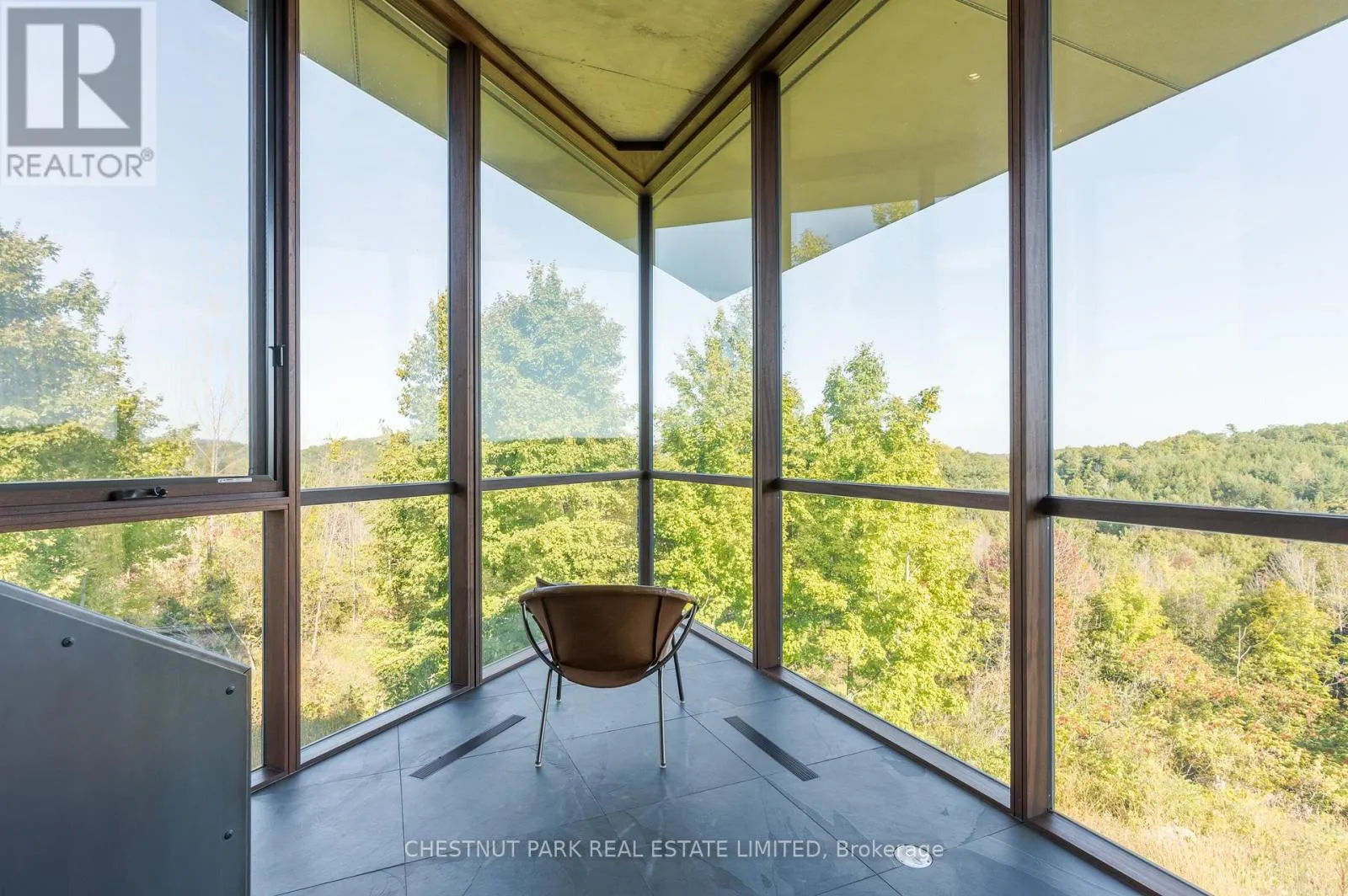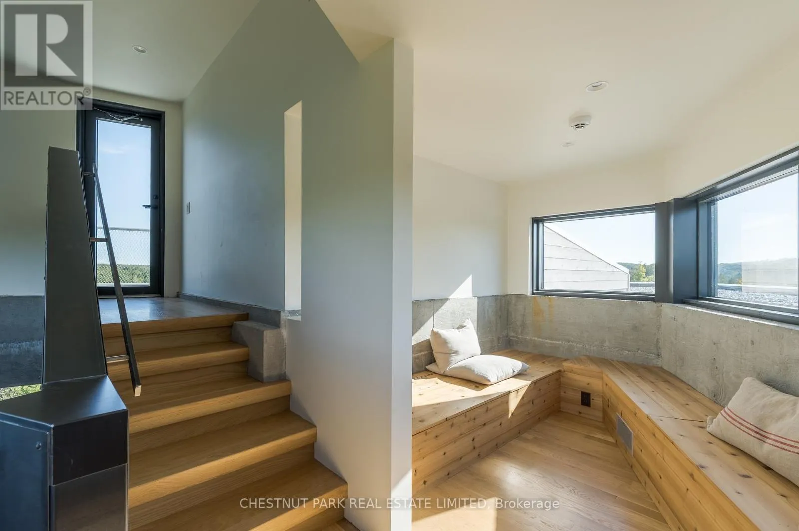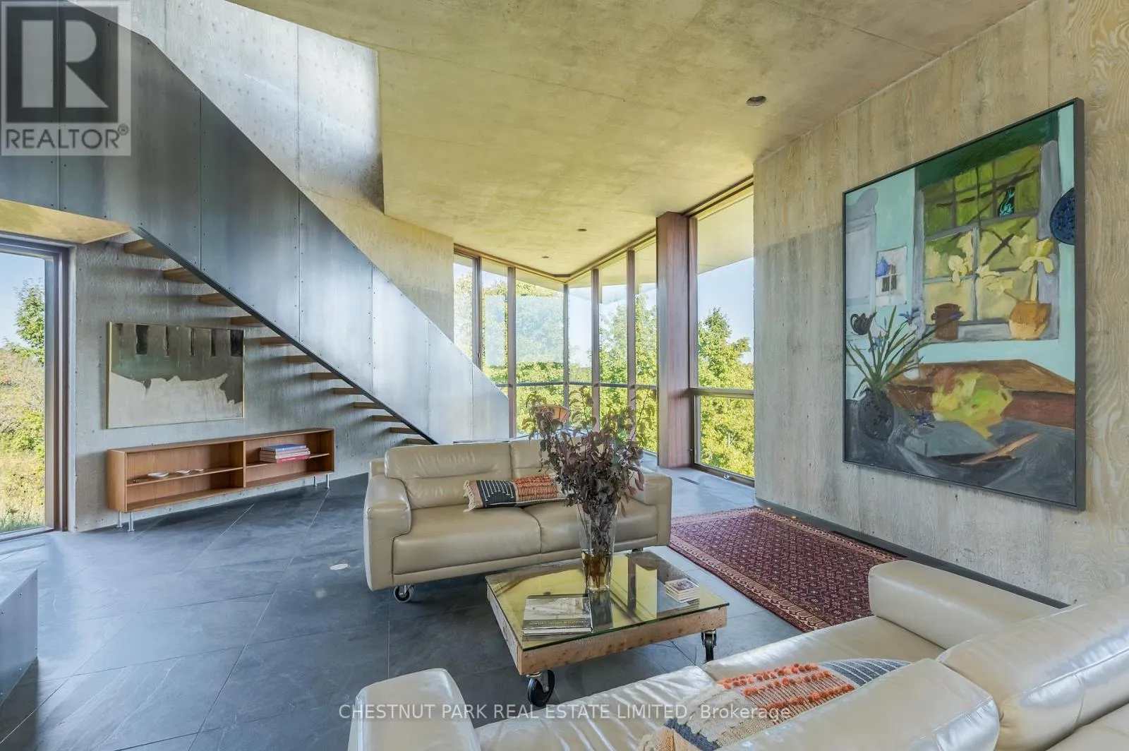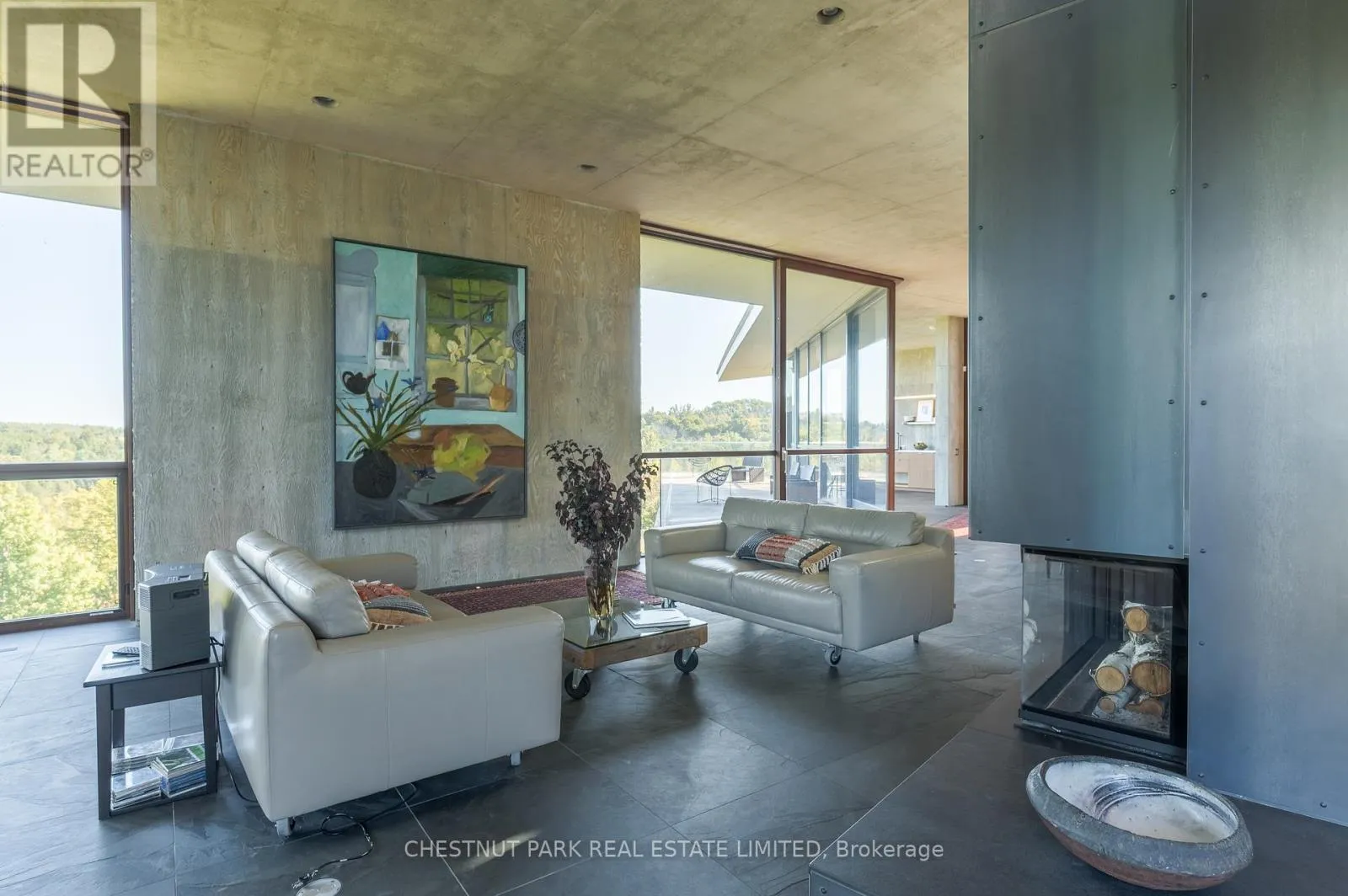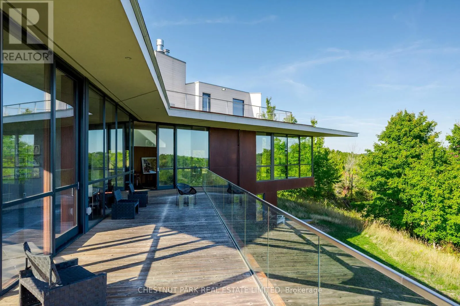 Cross Streets: Massey Rd. & Clouston Rd. ** Directions: N. from Massey Rd at St. Anne's Spa, N on Clouston to Helen's Lane. The Brillinger House. Architecture and nature harmonize in a magical setting with this stunning 2024 build, designed by Adam Thom. The structure brings the hills, forest, field and light into this contemporary home. The landscape is intended to stay as natural as possible, the terrain just mildly tamed. One is welcomed through a unique entrance, with shelter and open sky. No disappointment upon entering. The open concept living area invites you in, a magnificent expanse of doors, windows reaching from the floor to the soaring ceiling mirror natures earth to sky magic. Slate floors, wood textured concrete and warm teak walls all work in balance with the vistas. This main level is graced with The Great Room and fireplace, a subtle minimalist bar kitchen, massive deck, two bedrooms, and a sublime bathroom with a walk-in shower & separate 2nd 2 pc. One can also ascend a staircase to a sunlit quiet reading or meditating area that leads to a deck with 360 views of the countryside. Use the elevator or the grand open staircase to the ground level where a den/office space, with doors open to the glorious countryside. A grand master bedroom with a walkout stands as another opportunity to let nature in. Separate from the water closet, an open shower area leads to an open deck, outdoor shower and sauna. A 2nd potential kitchen, laundry are next to the room holding the state of the art heating and cooling system. Two homes sit on this, private, secluded 63 acres property, 5 min north of St. Anne's Spa in Grafton. The 2nd home, also included, Petit Brillinger, perfect as a guest home or rental, while a totally different design concept, offer 3 bedrooms, 2 baths and a warm open concept living, dining, kitchen. Offering the same private views and surroundings, each unseen by the other. Paths circle the property and take you to a natural spring fed pond, perfect for swimming, skating and picnics or a summer cocktails. This is your perfect retreat. (id:27476)