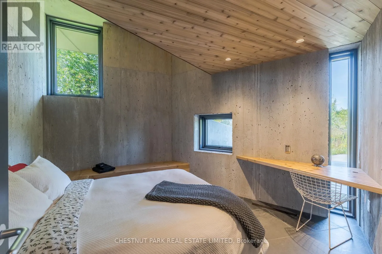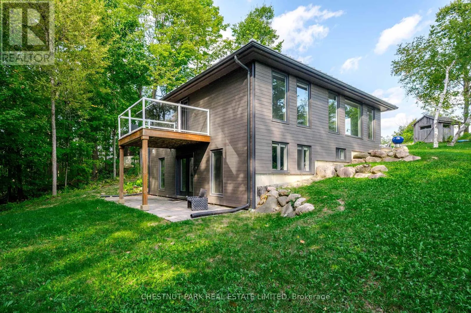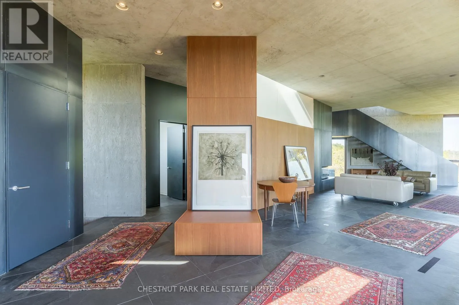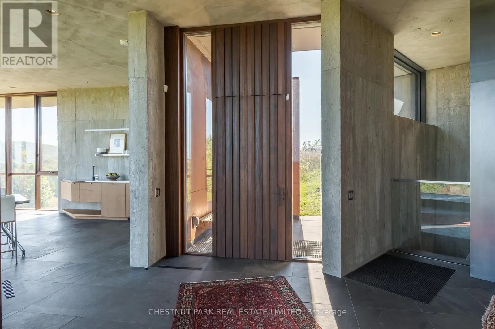 Cross Streets: Massey Rd. & Clouston Rd. ** Directions: N. from Massey Rd at St. Anne's Spa, N on Clouston to Helen's Lane. The Brillinger House. Architecture and nature harmonize in a magical setting with this stunning 2024 build, designed by Adam Thom. The structure brings the hills, forest, field and light into this contemporary home. The landscape is intended to stay as natural as possible, the terrain just mildly tamed. One is welcomed through a unique entrance, with shelter and open sky. No disappointment upon entering. The open concept living area invites you in, a magnificent expanse of doors, windows reaching from the floor to the soaring ceiling mirror natures earth to sky magic. Slate floors, wood textured concrete and warm teak walls all work in balance with the vistas. This main level is graced with The Great Room and fireplace, a subtle minimalist bar kitchen, massive deck, two bedrooms, and a sublime bathroom with a walk-in shower & separate 2nd 2 pc. One can also ascend a staircase to a sunlit quiet reading or meditating area that leads to a deck with 360 views of the countryside. Use the elevator or the grand open staircase to the ground level where a den/office space, with doors open to the glorious countryside. A grand master bedroom with a walkout stands as another opportunity to let nature in. Separate from the water closet, an open shower area leads to an open deck, outdoor shower and sauna. A 2nd potential kitchen, laundry are next to the room holding the state of the art heating and cooling system. Two homes sit on this, private, secluded 63 acres property, 5 min north of St. Anne's Spa in Grafton. The 2nd home, also included, Petit Brillinger, perfect as a guest home or rental, while a totally different design concept, offer 3 bedrooms, 2 baths and a warm open concept living, dining, kitchen. Offering the same private views and surroundings, each unseen by the other. Paths circle the property and take you to a natural spring fed pond, perfect for swimming, skating and picnics or a summer cocktails. This is your perfect retreat. (id:27476)