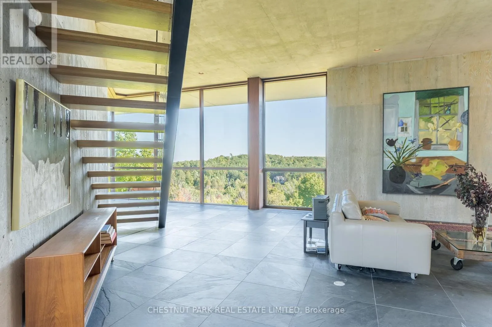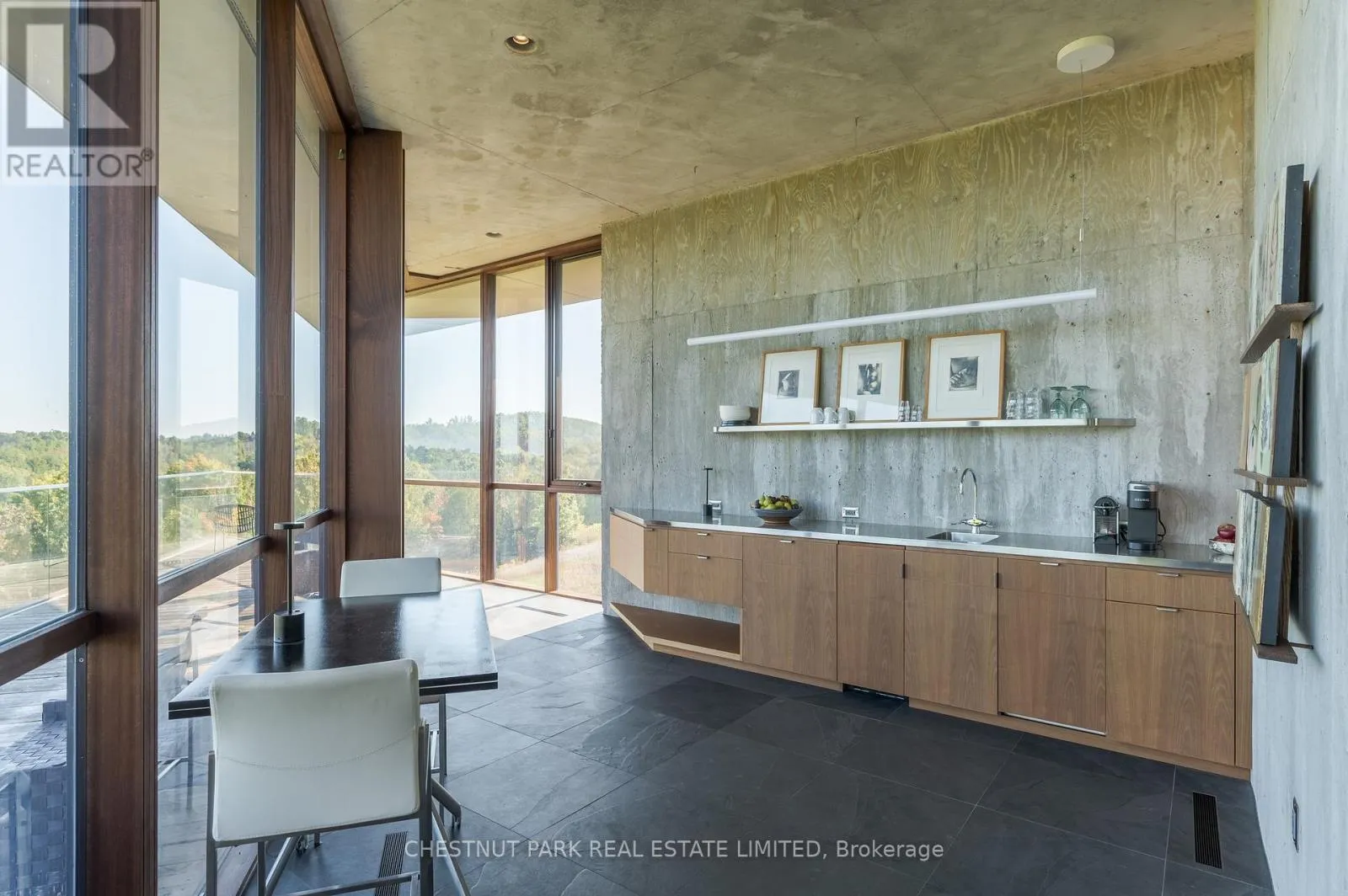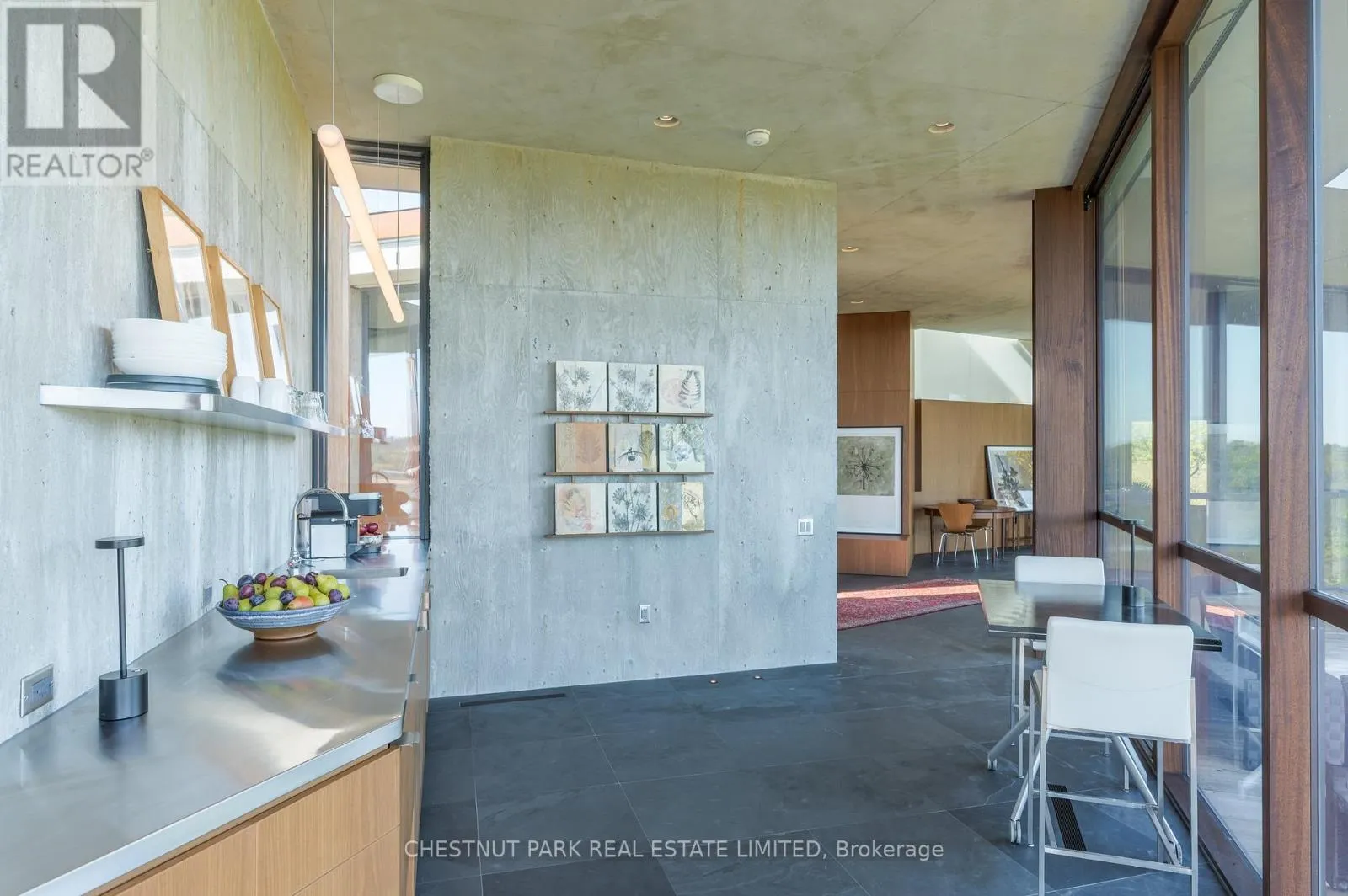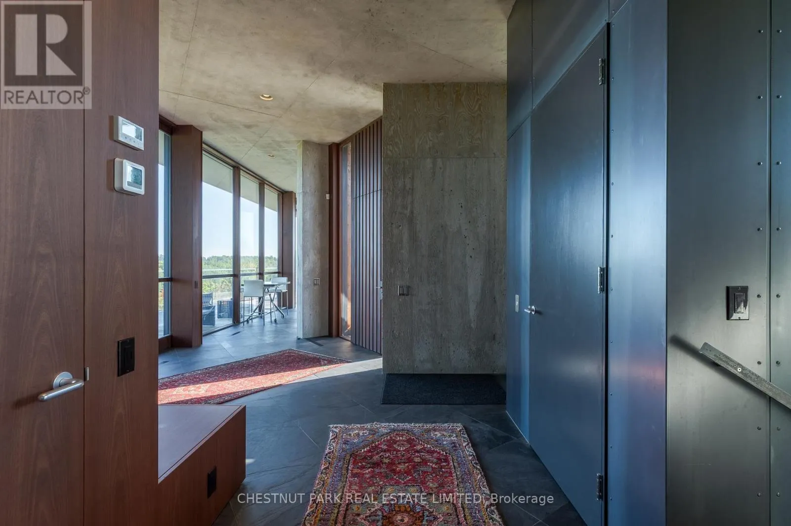 Cross Streets: Massey Rd. & Clouston Rd. ** Directions: N. from Massey Rd at St. Anne's Spa, N on Clouston to Helen's Lane. The Brillinger House. Architecture and nature harmonize in a magical setting with this stunning 2024 build, designed by Adam Thom. The structure brings the hills, forest, field and light into this contemporary home. The landscape is intended to stay as natural as possible, the terrain just mildly tamed. One is welcomed through a unique entrance, with shelter and open sky. No disappointment upon entering. The open concept living area invites you in, a magnificent expanse of doors, windows reaching from the floor to the soaring ceiling mirror natures earth to sky magic. Slate floors, wood textured concrete and warm teak walls all work in balance with the vistas. This main level is graced with The Great Room and fireplace, a subtle minimalist bar kitchen, massive deck, two bedrooms, and a sublime bathroom with a walk-in shower & separate 2nd 2 pc. One can also ascend a staircase to a sunlit quiet reading or meditating area that leads to a deck with 360 views of the countryside. Use the elevator or the grand open staircase to the ground level where a den/office space, with doors open to the glorious countryside. A grand master bedroom with a walkout stands as another opportunity to let nature in. Separate from the water closet, an open shower area leads to an open deck, outdoor shower and sauna. A 2nd potential kitchen, laundry are next to the room holding the state of the art heating and cooling system. Two homes sit on this, private, secluded 63 acres property, 5 min north of St. Anne's Spa in Grafton. The 2nd home, also included, Petit Brillinger, perfect as a guest home or rental, while a totally different design concept, offer 3 bedrooms, 2 baths and a warm open concept living, dining, kitchen. Offering the same private views and surroundings, each unseen by the other. Paths circle the property and take you to a natural spring fed pond, perfect for swimming, skating and picnics or a summer cocktails. This is your perfect retreat. (id:27476)