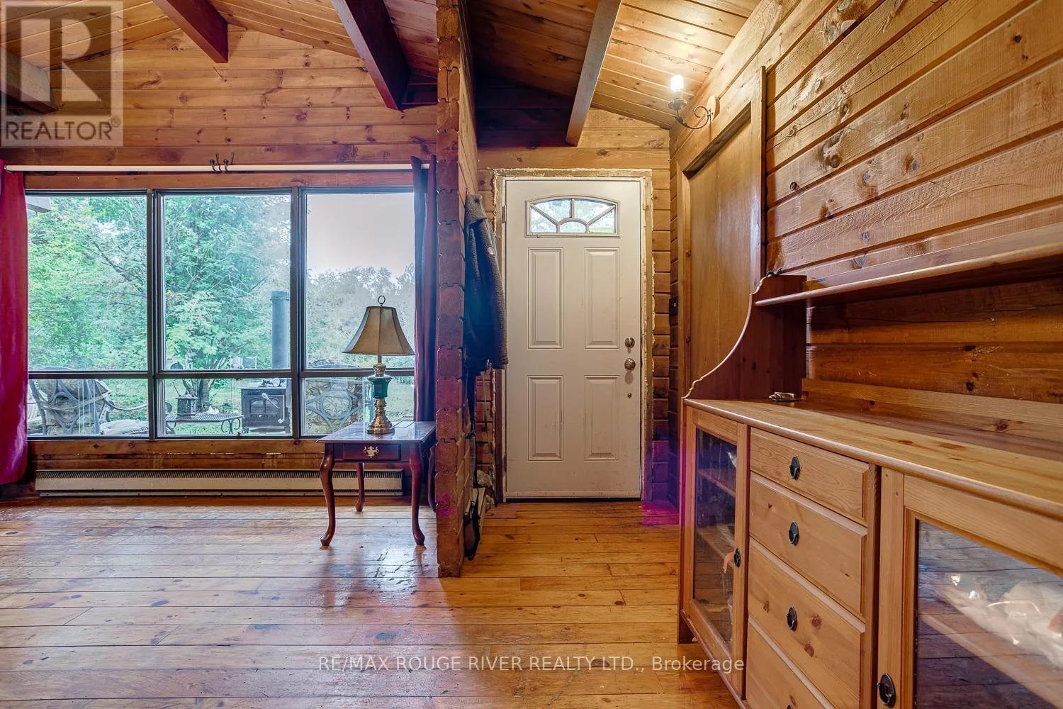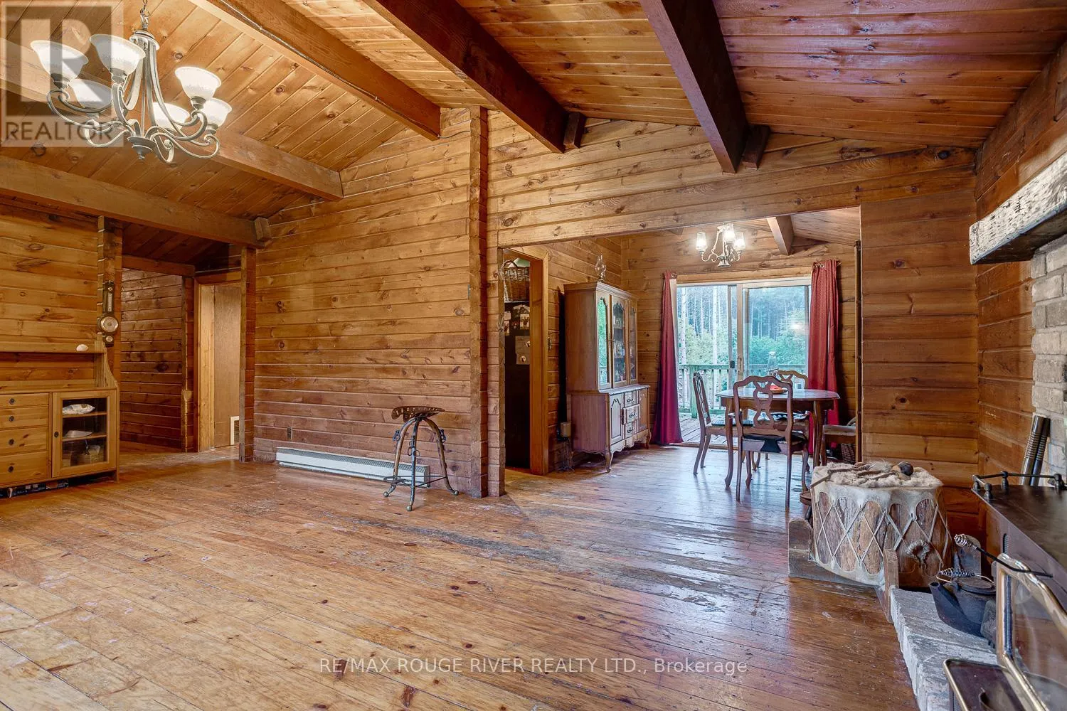 Cross Streets: Eddystone Rd & Casteels Rd. ** Directions: 401 to Cty Rd 23 N to Eddystone Rd. Nestled on 16 private acres with a meandering stream and mature woods, this charming Pan-Abode style log home offers the perfect blend of rustic comfort and self-sufficient living. Ideal for anyone seeking an affordable home with privacy, the property is well-suited for fishing, organic gardening, and foraging right outside your door. Multiple outbuildings provide ample space for storage, workshops, or livestock, and the land is currently set up as a hobby farm with fenced areas and trails, making it an excellent fit for homesteaders or those dreaming of a simpler lifestyle. Whether you're looking for a weekend retreat or a full-time residence, this property offers endless opportunities to enjoy nature, recreation, and sustainable living and is located just north of Grafton with easy access to the 401. (id:27476)
