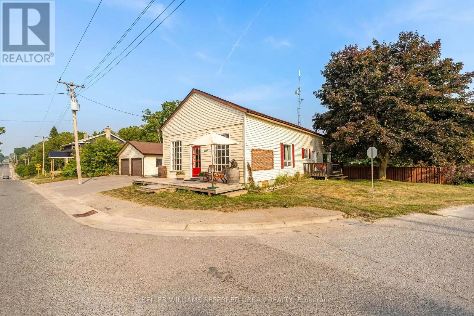 Front St & Lakeport Rd Discover the possibilities with this unique property that is just steps to the water in the heart of Lakeport! Once home to the Lakeport General Store, this versatile 3-bedroom, 1-bathroom property offers endless options for you to live and/or operate a business, create a studio, office, or shop all while enjoying the comfort of living on-site. The main floor includes the former storefront- that could be used for a business or or simply enjoy it as part of your living space- with original hardwood floors and a cozy wood stove, a spacious kitchen with pantry & breakfast bar, open living-room with walk-out to a large (12x30 ft ) backyard patio, dining-room (separate room), 2 bedrooms, and a 4-piece bath. Upstairs features a family room and private, skylit primary bedroom retreat and 600 sq ft of extra unused, semi renovated space. Outside, enjoy a fully fenced yard with pond (comes with fish and has a pump), bunkie with its own private deck backing onto the ravine, and detached 2-car garage -with electricity, great for car enthusiasts and ideal for storage or a workshop. The sun-filled deck overlooks an expansive yard with mature trees and parking for 7+ vehicles. Bonus perk - free internet with from Airnet Wireless until 2027. With its flexible zoning, prime location, and one-of-a-kind character, this property is perfect for entrepreneurs, hobbyists, or anyone seeking a aquite lifestyle in a waterfront community! (id:27476)
