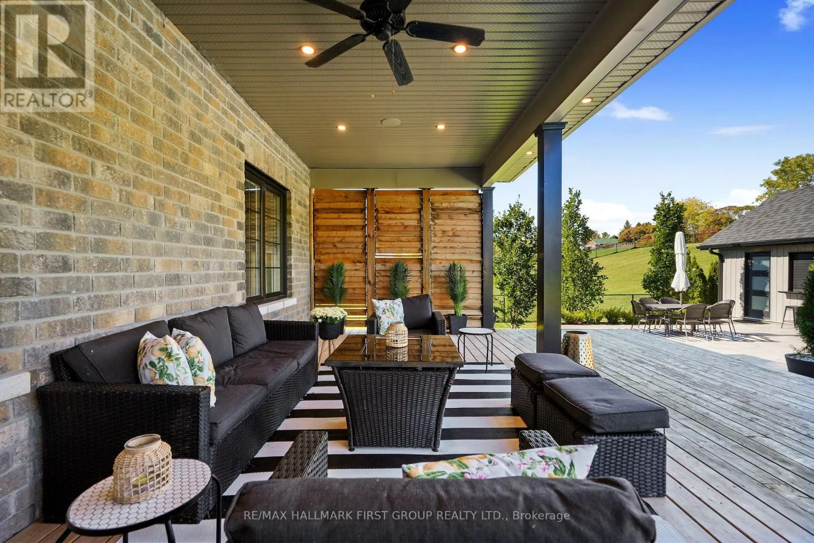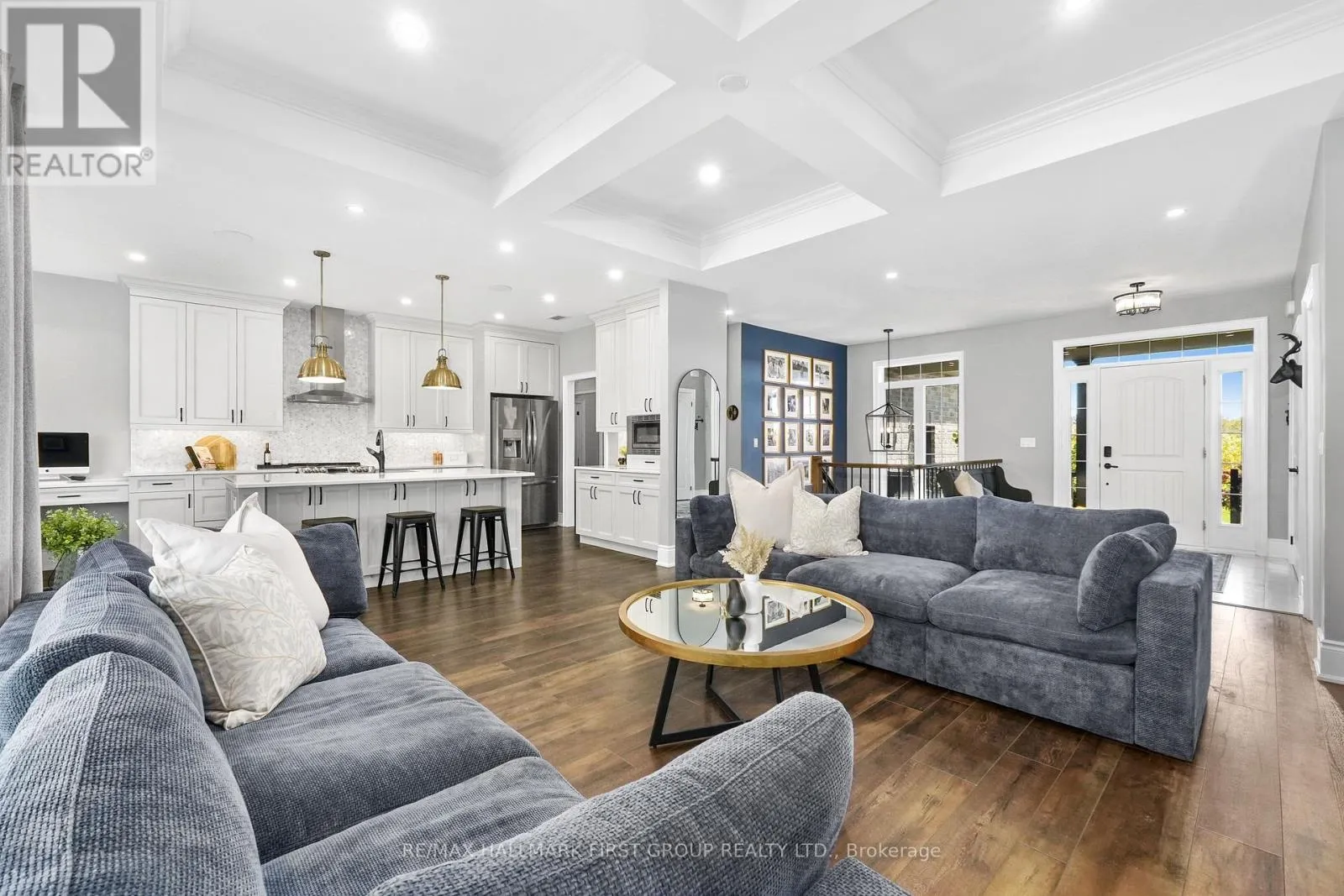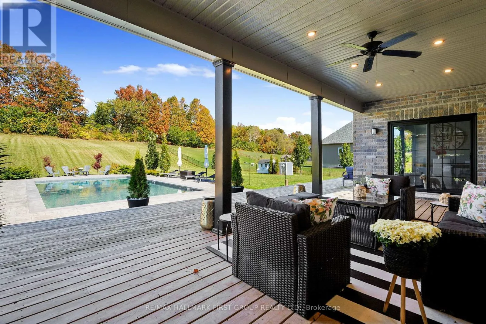 Cross Streets: Glens of Antrim Way & Brimley Rd S. ** Directions: CR2 heading East, Right onto Brimley Rd S, Left onto Glens of Antrim Way. Crafted as the builder's show home, this stunning property blends elegance and design across 1.28 acres. Designed for entertaining, this home features in-ceiling speakers in the kitchen, living room, and outdoor area, and is wired for sound in the poolside bar, the perfect setting for gatherings both large and small. A covered front porch leads into an open entry where craftsmanship and attention to detail are immediately evident. Throughout the home, 8" baseboards, high ceilings, and upgraded window and door casements enhance the sense of space and sophistication. The living room impresses with its recessed waffle ceiling, crown moulding, custom built-ins with integrated lighting, and a beautifully detailed fireplace mantel. The open-concept kitchen offers ceiling-height cabinetry, under-cabinet lighting, stainless steel appliances, and large island with breakfast bar. The adjoining dining area features a recessed ceiling, ample room for large gatherings, and a walkout to the backyard. The primary suite offers a tranquil retreat with a tray ceiling, crown moulding, private walkout, walk-in closet, and a luxurious ensuite featuring heated floors, dual vanity with quartz counters, freestanding tub, and glass-enclosed shower. Two additional bright bedrooms and a full bathroom are situated on the opposite side of the home for added privacy. Completing the main level is a powder room, convenient laundry, and access to the double car garage with 13' ceilings. The lower level expands the living space with a generous rec and media area, built-ins, a games area, guest bedroom, and full bathroom. Step outside to your backyard oasis featuring a fenced yard, sprawling covered deck with added privacy, landscaped patio, inviting inground pool, lounging areas, and stylish pool house with bar and changing area. Ideally located just moments from amenities with easy access to Hwy 401, this property offers modern design, thoughtful details, and resort-inspired living all in one. (id:27476)