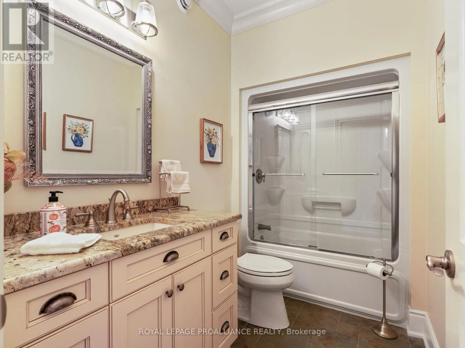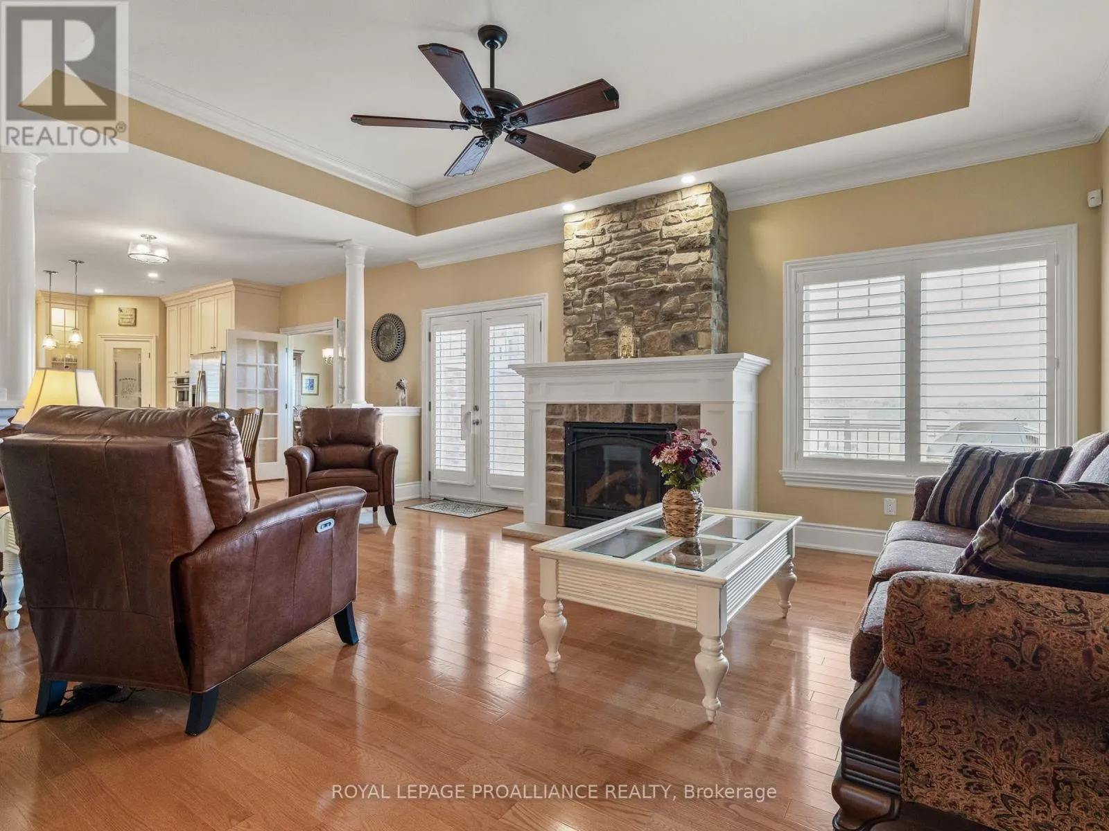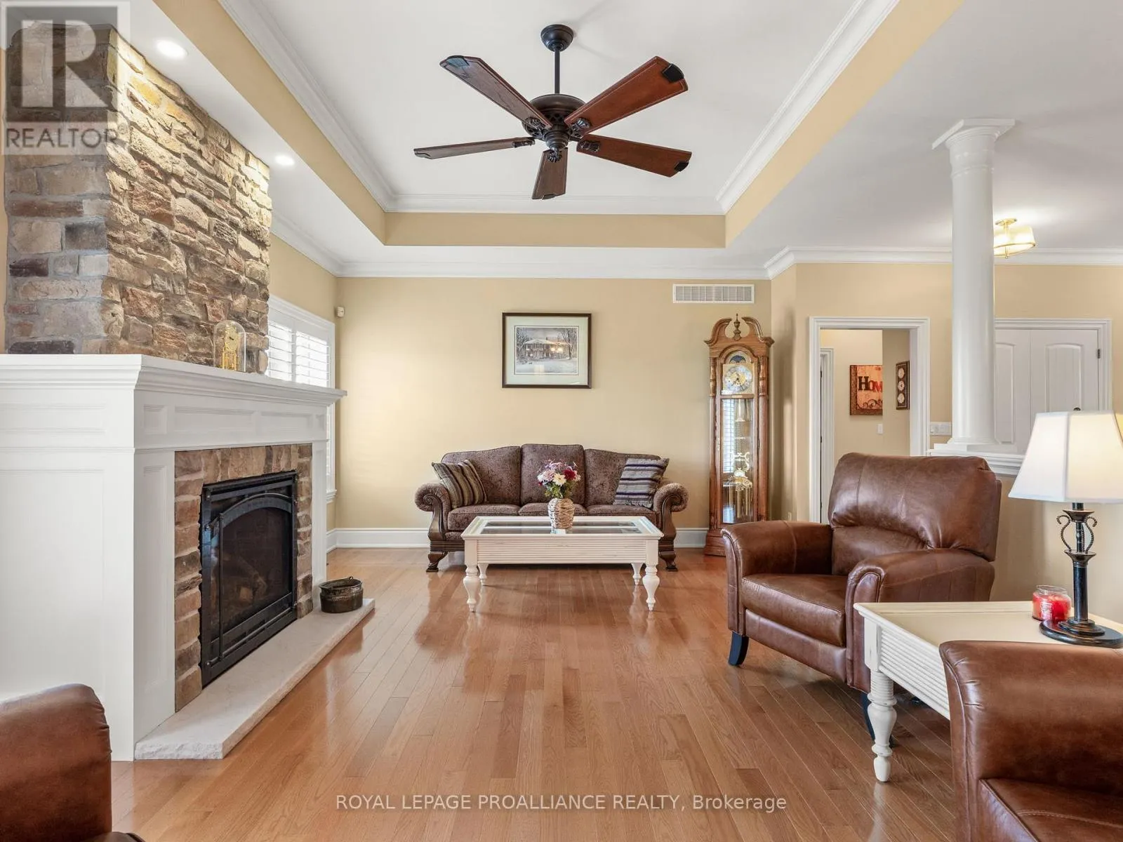Cross Streets: Highway 2 & Brimley Rd S. ** Directions: Take Highway 2, turn South onto Brimley Road South. Welcome to the prestigious Glens of Antrim, one of Grafton's most sought-after estate communities. Just minutes east of Cobourg, this impressive bungalow sits on nearly an acre and combines timeless design with thoughtful upgrades throughout. Step inside to discover bright, open-concept living with 10-foot ceilings, gleaming hardwood floors, and California shutters. The heart of the home is the gourmet kitchen, complete with granite counters, a walk-in pantry, stainless steel appliances, and custom details that make cooking and entertaining a pleasure. The adjoining living area features a beautiful stone fireplace and large windows that frame peaceful views of the property. The spacious primary suite offers a walk-in closet and a spa-like ensuite with heated floors and a soaking tub. A second bedroom and full bath provide comfortable space for family or guests. The lower level offers endless potential with a newly finished third bedroom, a roughed-in bath, and oversized windows that fill the space with natural light. Car enthusiasts and hobbyists will appreciate the three-car garage with interior access, along with a bonus fourth garage door that opens to the backyard, perfect for garden tools, ATVs, or outdoor living. This home is more than a place to live. It is a lifestyle and a rare opportunity in a truly remarkable neighbourhood. High Speed Bell Fibe Internet. Basement in-law suite potential; separate entrance through the garage. Basement bathroom roughed-in. (id:27476)