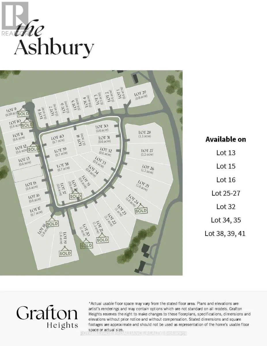 Ridgeline Dr and Vista View Drive Introducing The Ashbury, a well-designed bungalow offering approximately 1,677 sqft of thoughtfully planned main floor living, plus an unfinished 1,560 sqft basement ready for future use. With 3 bedrooms, 2.5 bathrooms, and a 2-car garage, this home delivers comfort, function, and flexibility in a streamlined, easy-to-live-in design. The Ashbury features an open-concept kitchen, dining, and living area that creates a natural gathering space for everyday living and entertaining. The kitchen offers excellent workflow and storage, while the living area opens to a covered rear deck, extending the living space outdoors. The primary bedroom is privately positioned and includes its own ensuite and walk-in closet, while two additional bedrooms are well sized and thoughtfully separated. Practical touches such as main-floor laundry, a powder room, direct garage access, and a welcoming covered front porch enhance day-to-day living. The unfinished basement provides excellent potential for additional living space, recreation, or guest accommodations as needs evolve. The Ashbury is located within Grafton Heights, a carefully planned hillside community offering peaceful neighbourhood streets and scenic views across Grafton's countryside and toward Lake Ontario. Homes are serviced by municipal water, natural gas, fibre optic internet, private septic systems, and sit on pool-sized lots, a rare combination for new construction. Just minutes to Cobourg and Highway 401, and within 45 minutes of the GTA, Grafton Heights offers the ideal balance of rural charm and urban accessibility. Enjoy close proximity to the village of Grafton, Wicklow Beach and public boat launch, excellent public and Catholic elementary schools, and the trails of the Northumberland Forest for year-round outdoor enjoyment. (id:27476)