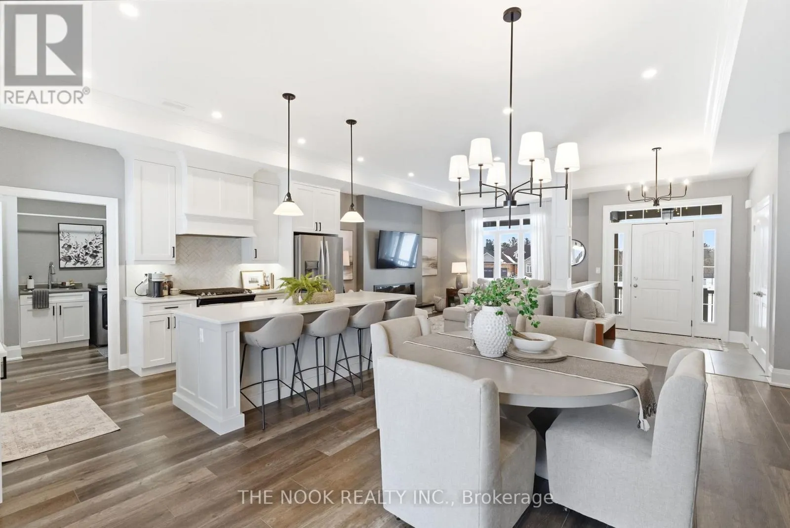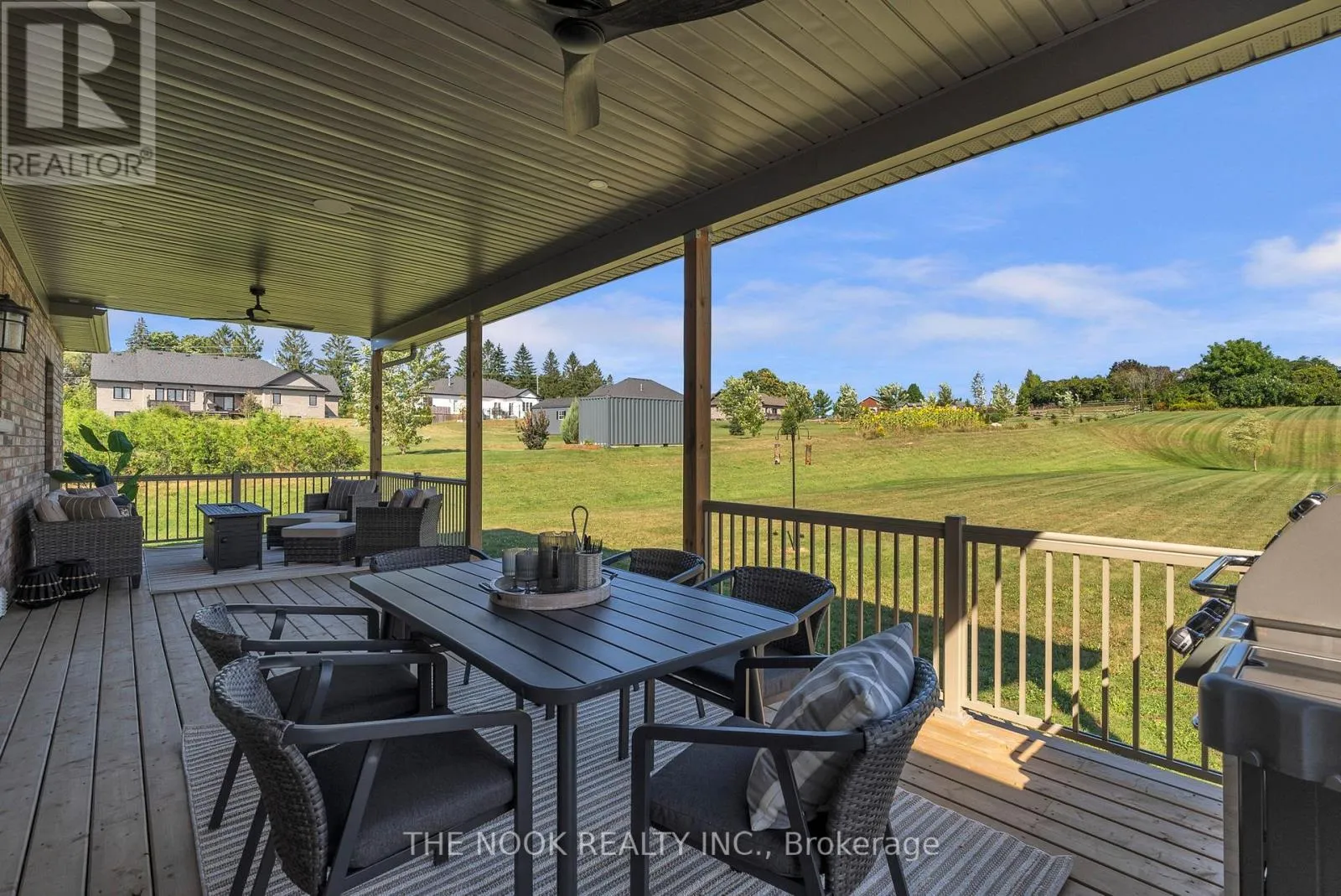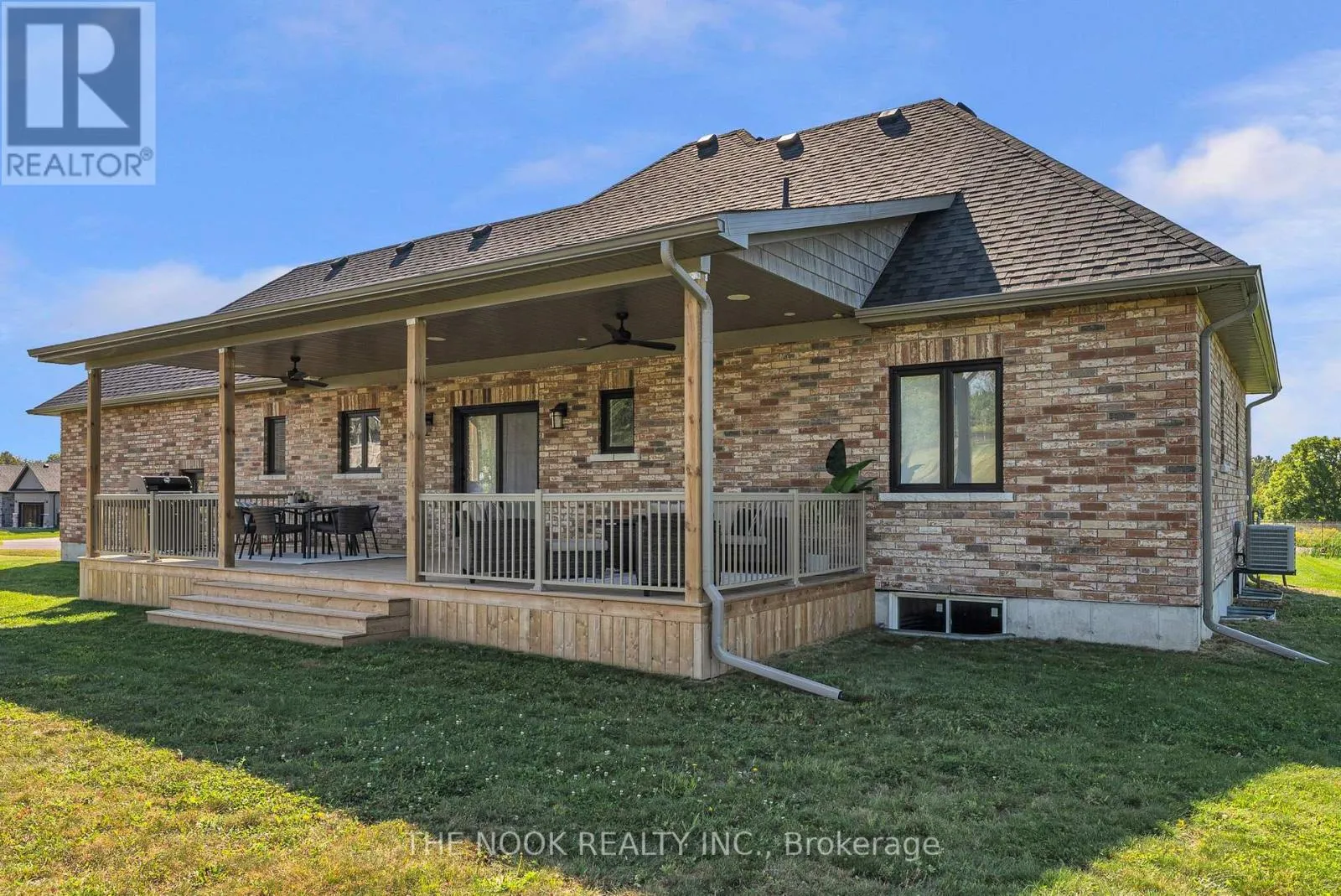 Hwy 2 & Lyle St N Set In A Quiet, Sought-After Estate Community In Grafton Built By Stalwood Homes And Just Minutes To Hwy 401, This Custom Brick And Stone Bungalow Sits On 1.72 Acres And Delivers The Perfect Blend Of Scenic Country Setting And Everyday Convenience With Municipal Water And Affordable Natural Gas Heating. Bold Black Accents And A 655 Sq Ft Oversized Garage Create Striking, Polished Curb Appeal. Inside, 10 Ft Ceilings Run Through The Main Living Space, Enhancing The Open, Light Filled Layout Across The Kitchen, Dining And Living Room. A Custom Built-In Electric Fireplace Wall Adds Strong Architectural Presence And A Sleek, Modern Focal Point. The Kitchen Is Fully Custom With High End Cabinetry, Quartz Counters, Premium Appliances And A 9 Ft Island Designed For Hosting And Everyday Living. Just Off The Kitchen, A Beautifully Planned Mudroom With Pantry, Laundry, Built-In Storage And Bench Seating Connects The Garage And Backyard, Creating A Functional Yet Stylish Hub Of The Home. The Primary Bedroom Features A Walk-In Closet And A Beautifully Designed Ensuite With Double Sinks, Glass Shower, Heated Floors And A Heated Towel Bar. A 4 Pc Bath Serves The Additional 2 Bedrooms On This Level. The Finished Basement Continues The Same Design-Forward Feel With A Spacious Family Room, Fireplace, Dedicated Kids Zone With Built-In Rock Climbing Wall, A Generous 4th Bedroom With Large Windows And A Brand New 4 Pc Bath. The Backyard Showcases A Covered Porch Built Into The Roofline, Creating A Seamless Indoor And Outdoor Living Experience. Built-In Bluetooth Speakers At The Rear Elevate Everyday Living And Entertaining. This Is A Thoughtfully Designed Estate Home With A Modern Yet Timeless Edge, Offering Space, Privacy And Quick Access To The GTA From A Peaceful, Well Connected Setting In The Heart Of Grafton. (id:27476)