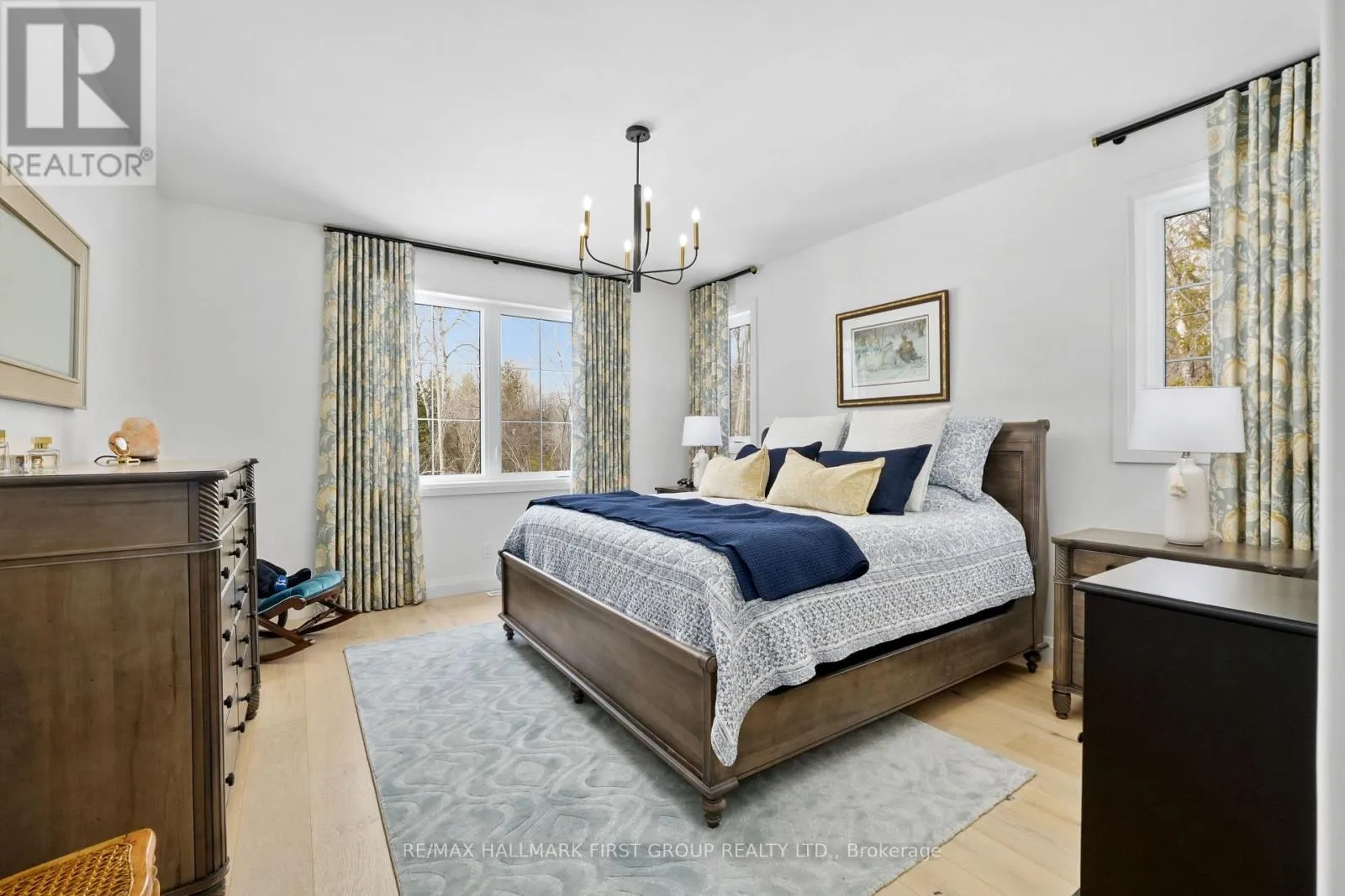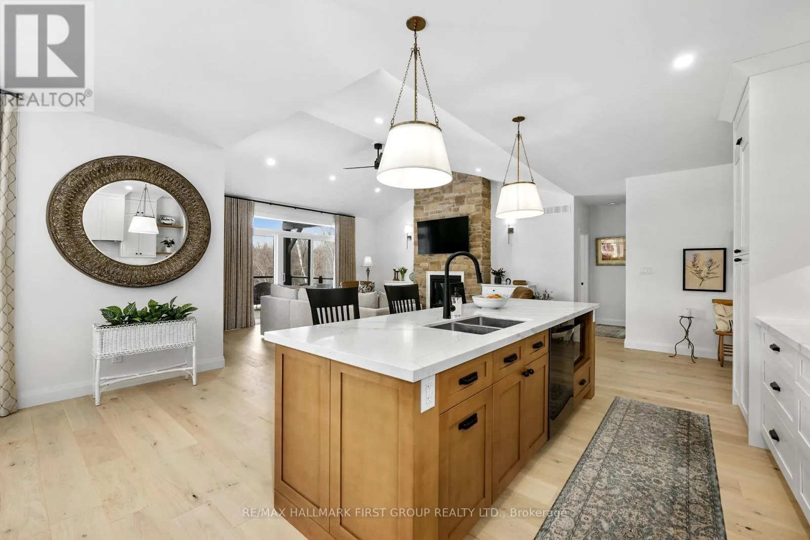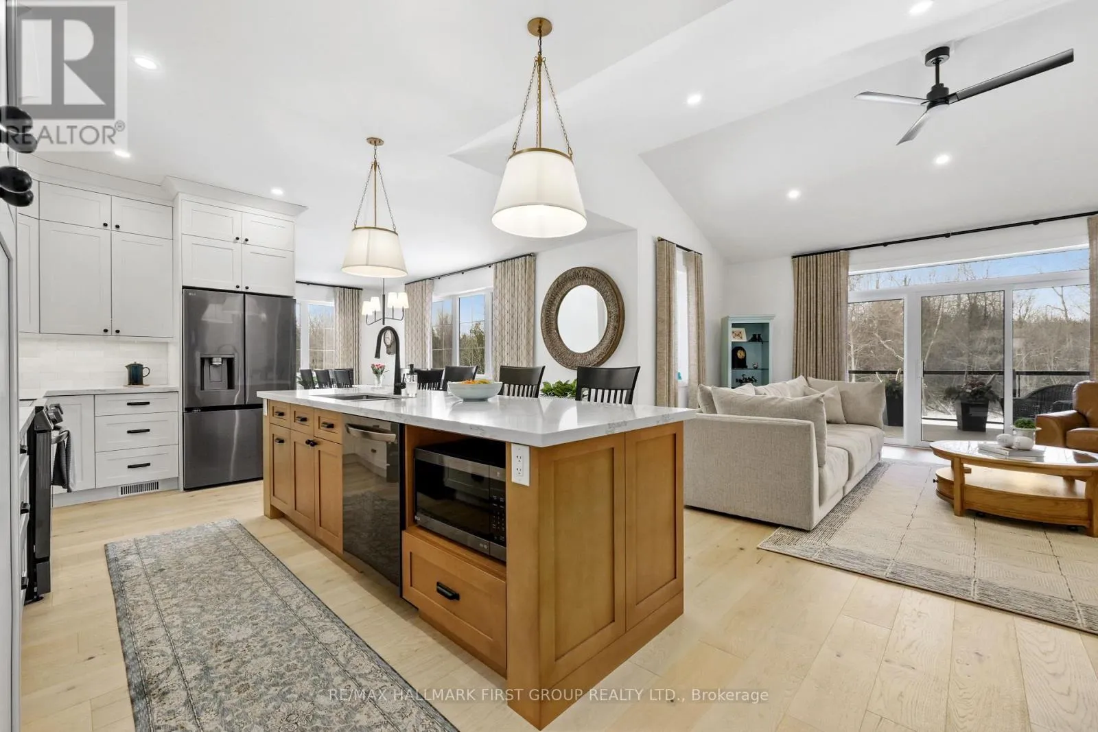 Cross Streets: Ridgeline Dr & Vista View Dr. ** Directions: Hwy 401 E, Exit Lyle St heading South, Turn Right onto Vista View Dr, Left onto Ridgeline Dr. Newly constructed luxury residence set within the sought-after hamlet of Grafton, showcasing elevated finishes throughout a generous private lot. Refined main-level living spans 2,052 square feet, complemented by an impressive 824-square-foot garage providing parking for three vehicles. A dramatic two-storey entry features striking contemporary lighting, creating a memorable first impression. The open principal living space offers an inviting area with a stone-clad fireplace feature wall, a soaring cathedral ceiling, and a walkout that extends everyday living outdoors. The dining area is framed by expansive windows, providing ample room for entertaining. The kitchen delivers modern elegance with ceiling height cabinetry finished with crown moulding detail, an oversized island with breakfast bar, statement pendant lighting, coordinated appliances, open shelving, plus sleek, timeless backsplash surfaces with refined countertops. The primary bedroom offers a serene retreat with a spa-inspired ensuite featuring a double vanity, glass shower enclosure, separate soaker tub, private water closet, and spacious walk-in closet. Two additional well-appointed bedrooms, a full bathroom, and convenient main-floor laundry complete the level. The fully finished lower level expands the living experience with a large recreation room ideal for games or relaxation, a dedicated office, two bright bedrooms, a stylish bathroom with glass shower enclosure, plus abundant storage. Outdoor living is elevated by a carefree Trex deck with glass railing that captures uninterrupted views across mature trees plus open greenspace, creating an ideal country setting paired with upscale comfort. Proximity to everyday amenities, minutes from the world-renowned Ste. Anne's Spa, plus quick access to Highway 401, completes this exceptional offering. (id:27476)