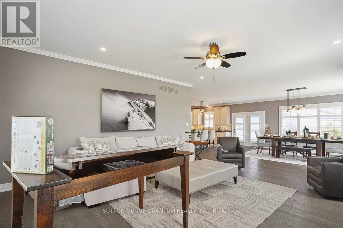 Cross Streets: 434555 4th Line. ** Directions: 20th Sideroad and 4th Line. Your New Country Home is a Spectacular Open Concept Bungalow On Over 3 Professionally Landscaped Acres. Executive Chef Kitchen that Includes A 48" Dual Fuel Wolf Range w/matching Wolf Pro Range Hood. A 36" Sub-Zero Fridge, Integrated Kitchen Aid Dishwasher. The Solid Maple Kitchen Cabinetry Is Finished With A Cambria Quartz Counter Top. The Oversize Dining Room Space Has A Walk-Out To Sun Deck/Bbq Area. Open Concept To The Living Room Where The Center Piece Is A Stone Surround Wood Mantle Gas Fireplace. Large Windows Come Complete With 4 1/2' Wide Eclipse Shutters Throughout The Entire Home. Primary Ensuite Has Heated Tile Floors, Heated Towel Bar & A Large Walk-In Closet. Plus, A Walkout To Sun Deck. The Main Floor Has 3.25" Ash Hardwood Throughout. The Finished Basement Has Radiant In- Floor Heating Throughout. A Lrg 4th Bedroom (In-Law Space) & Large Office. The Exercise Room Has Quick Fit Interlocking Rubber Gym Tile And Has walkout to ground level. (id:27476)