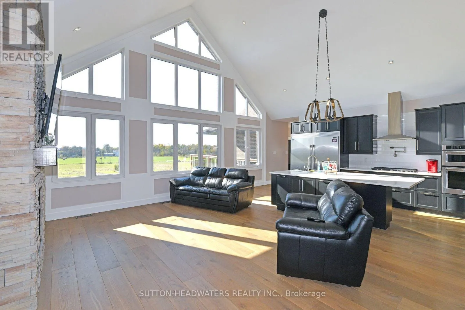 Cross Streets: 6th Line/10 Sdrd. ** Directions: 10th sdrd, north on 6th line. Experience Modern Elegance in the CountryDiscover carefree country living in this stunning 3+1 bedroom walk-out bungalow, set on just under 2.5 acres with sweeping views of fields and nature. The open-concept design features a chefs dream kitchen with commercial-grade appliances, a butlers pantry with second stove, and a spacious great room with vaulted ceiling, stone fireplace, and walkout to the west-facing deck. Hardwood floors flow throughout the main level, where youll find 3 generous bedrooms including a private primary suite with 5-pc ensuite. A well-planned laundry adds convenience for busy households. The massive walk-out basement offers endless possibilitiescreate an in-law suite, rental space, or dream recreation area. A perfect blend of comfort, functionality, and stylethis is country living at its finest! (id:27476)