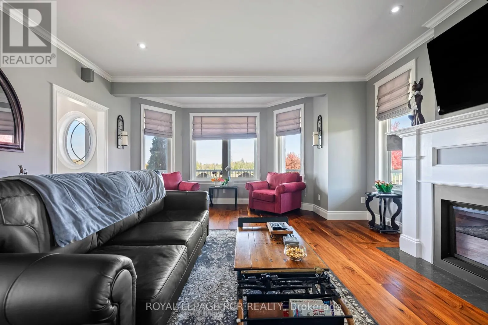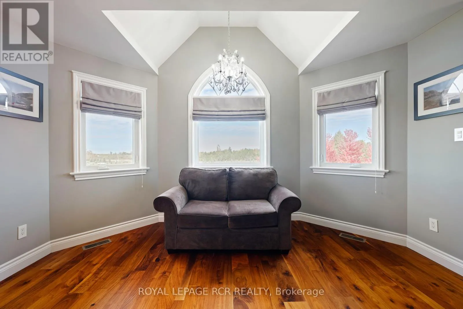 Cross Streets: County Rd 11 + 10 S.R. ** Directions: Dufferin Rd 109 - North on Cty Rd 11. Escape to the country without compromising on luxury or convenience. Set on 21.82 acres in Amaranth, this custom-built two-story residence (2011-12) blends timeless craftsmanship with modern comfort. Featuring approx. 2,200 sq ft of finished living space, this 3-bed, 4-bath home showcases wide-plank walnut flooring, designer lighting, and stunning chef's kitchen with granite counters, silver travertine tile from Turkey, and premium Electrolux Icon appliances. Primary suite includes a large walk-in closet, custom vanity ensuite and custom Mennonite built bedroom suite which is included! Second bedroom also has its own ensuite, and finishing off the upper level is another good sized third bedroom as well the convenient upper level laundry area. An extraordinary detached 60' x 32' heated and air-conditioned garage with upper-level entertainment suite, two full baths, and wet bar offers endless potential for multi-family living, hobbies, or home business. The main floor of the garage includes 3 front bays, a side bay and heated workshop area. The second floor of garage features a fully finished entertainment suite the wet bar, 3pc bath and storage room. The property includes a paved drive, solar and wind power to the garage, full-home generator, 400-amp service, and secure electric gate entry. Approx 7.5 acres are fenced, with 14.4 acers of protected CLTIP wetland. A rare opportunity to enjoy private, versatile, country living - just minutes from town. (id:27476)